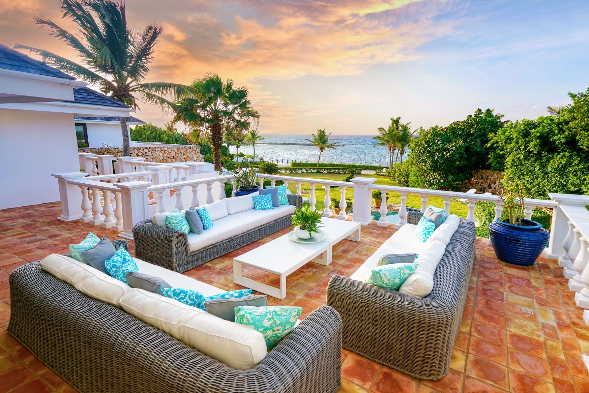 An exquisite villa set amidst tropical gardens and manicured lawns with extraordinary views of the warm, blue Caribbean Sea
