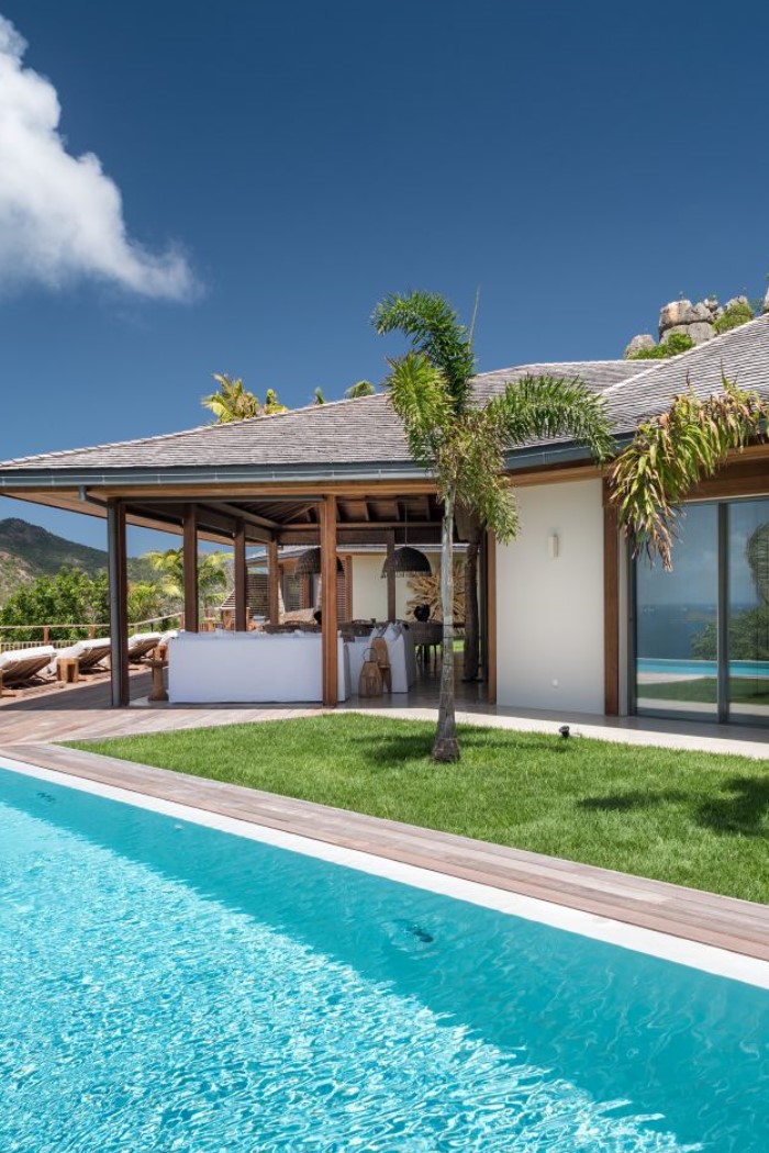 Villa Ixfalia, a modern holiday rental in St Barths whose luxurious facilities have a strong African influence, has unforgettable views of the St Jean Bay and its glistening waters.