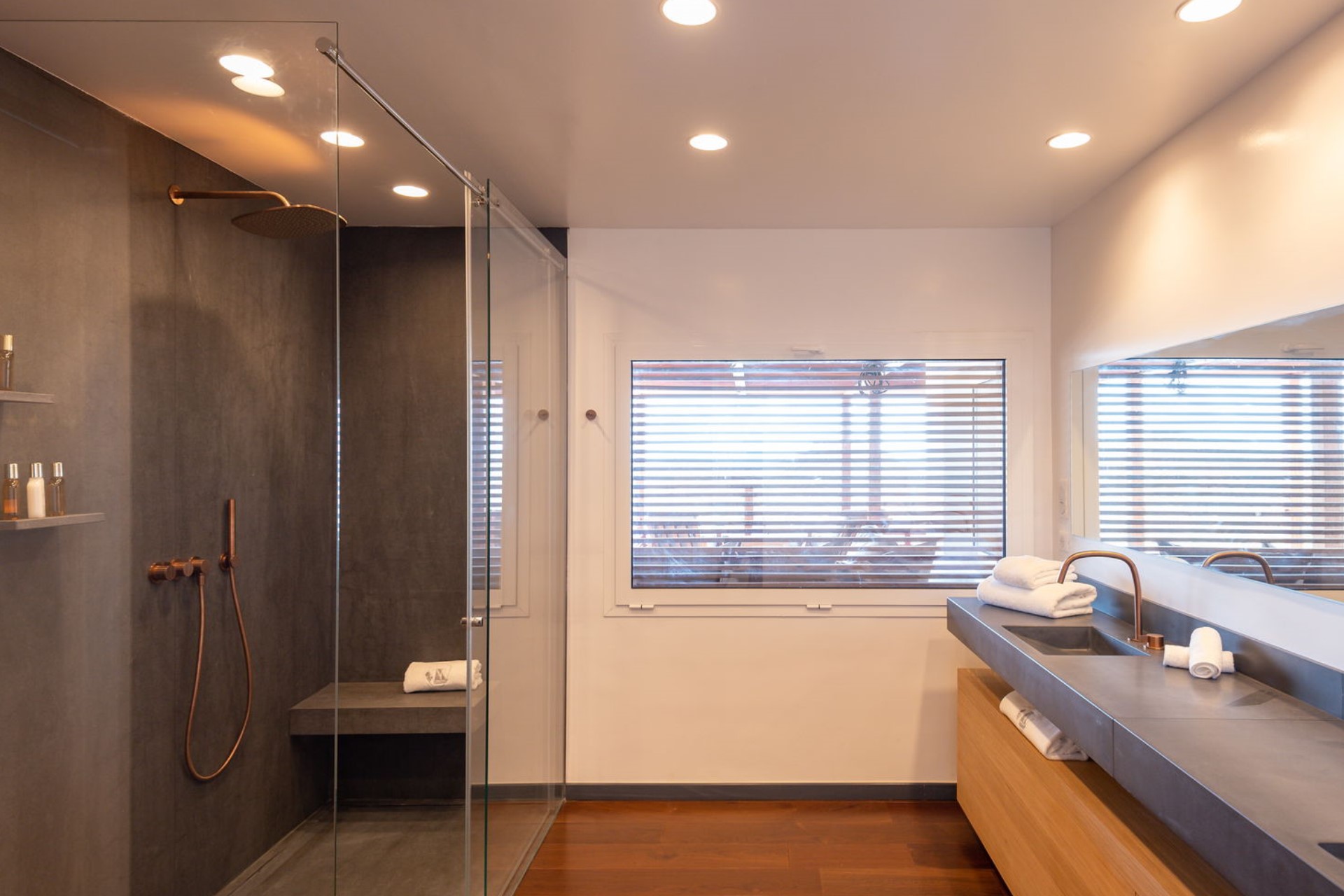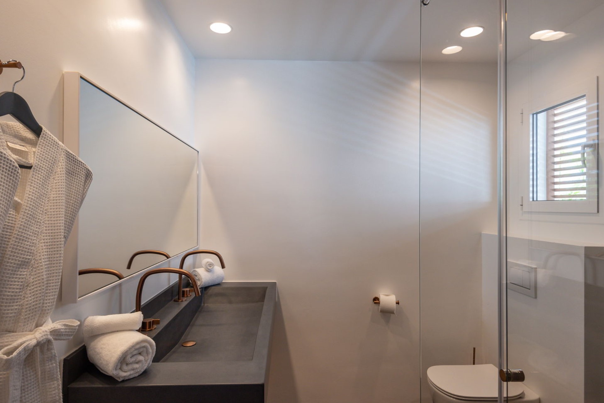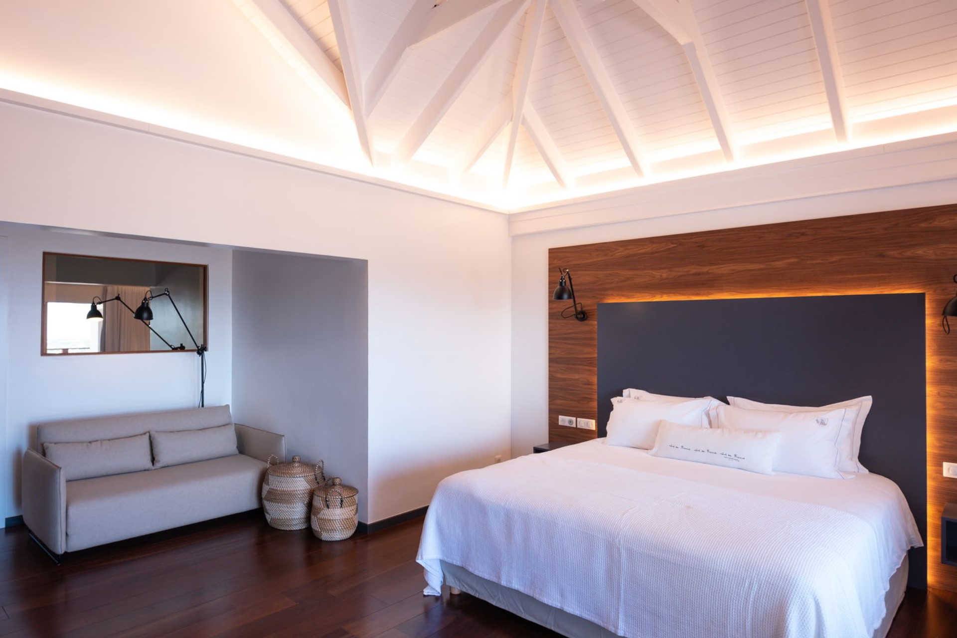 Each of the six air-conditioned bedrooms is thoughtfully designed to offer privacy and comfort, featuring king-size beds or twin beds that can be converted into king-size, en-suite bathrooms, and modern amenities. The bedrooms on the main level offer beautiful ocean and garden views, while the suites on the lower level open onto the pool and terrace. This layout ensures a harmonious balance between shared and private spaces, catering to the needs of all guests.