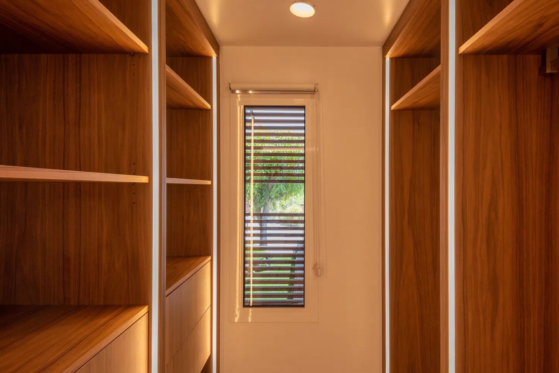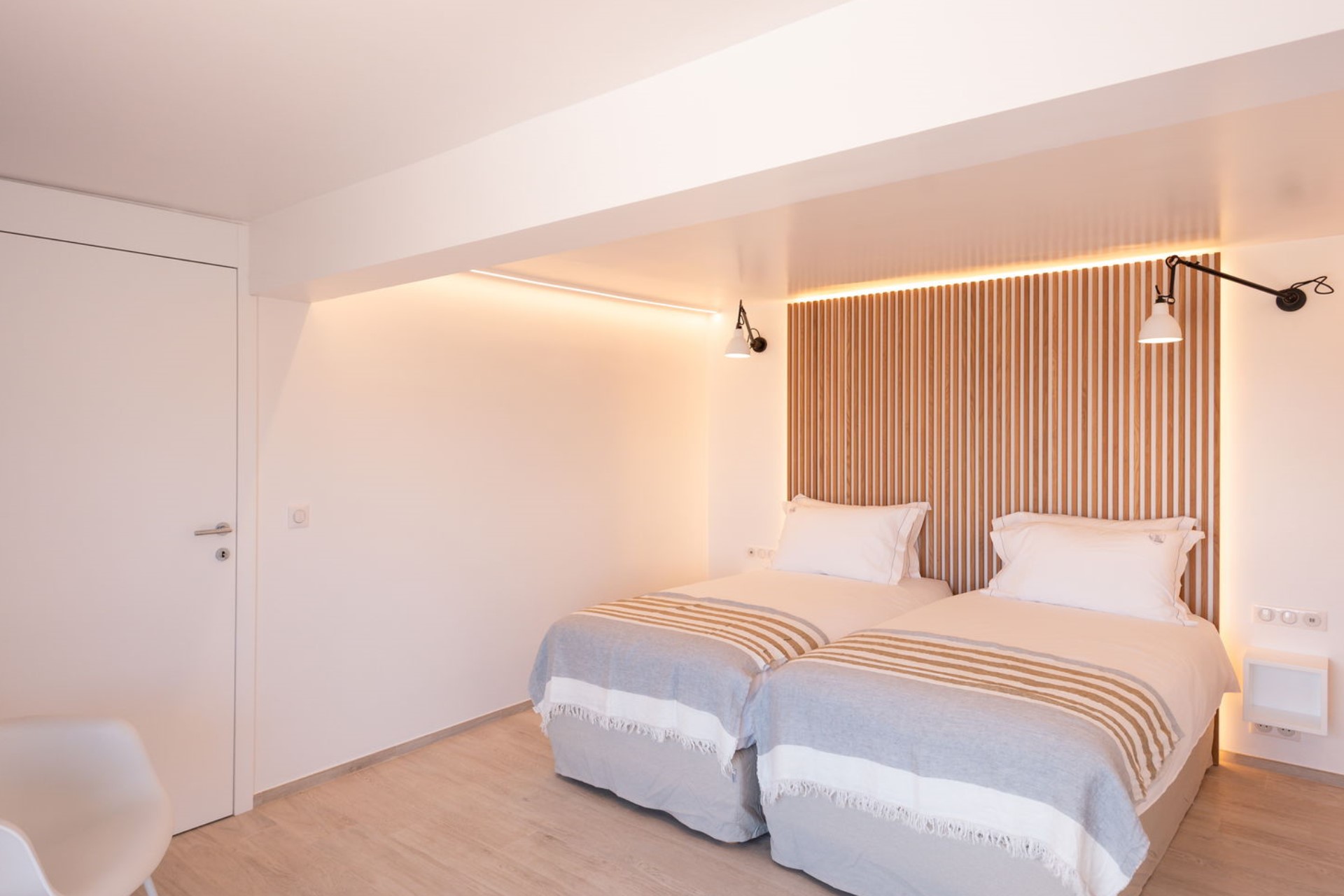 Bedroom 4 – twin beds (conbverted to king-size on request), walk-in wardrobe, en-suite bathroom with dual vanity & shower, terrace access, ocean views