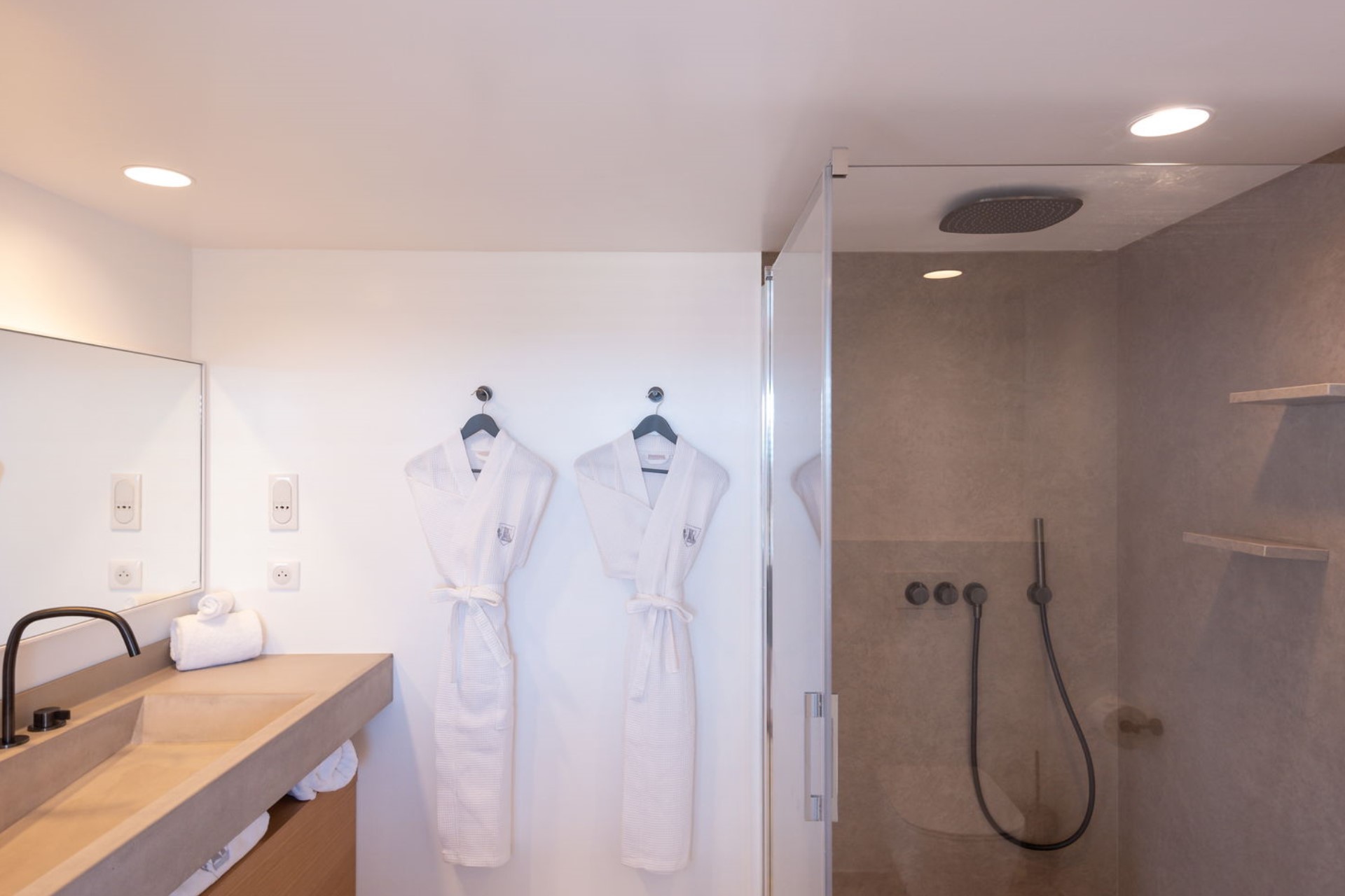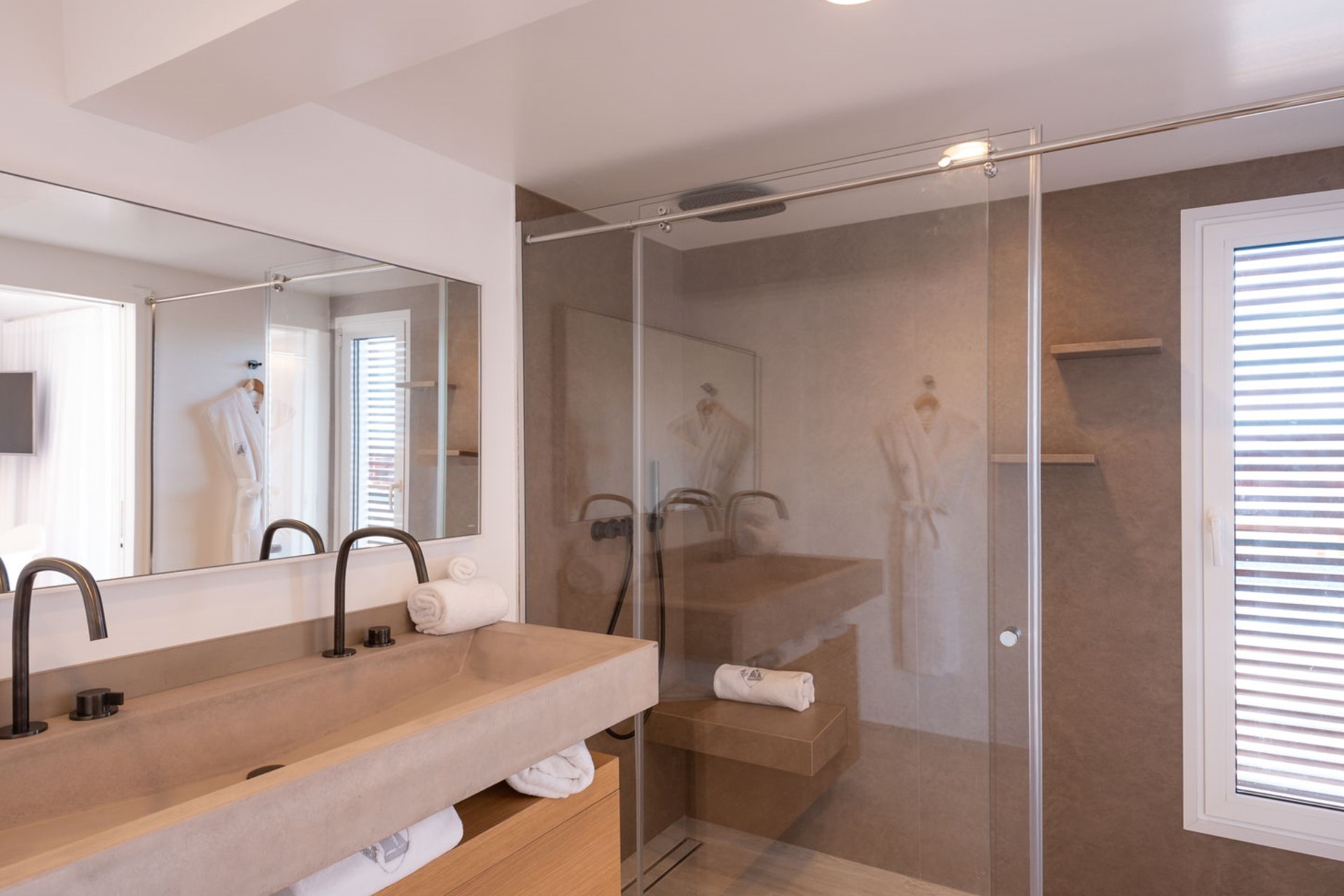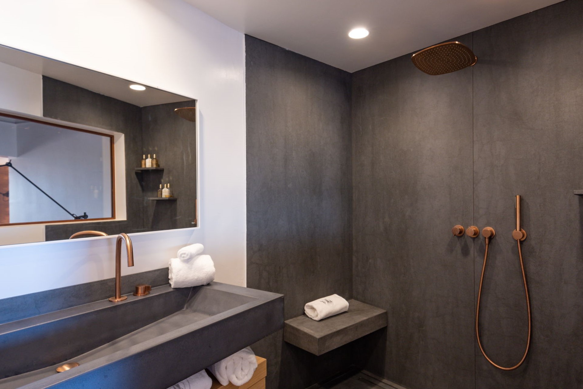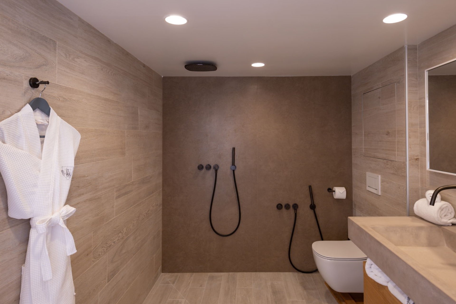 Bedroom 5 – king-size bed, en-suite wet room with dual vanity & shower, terrace, ocean views