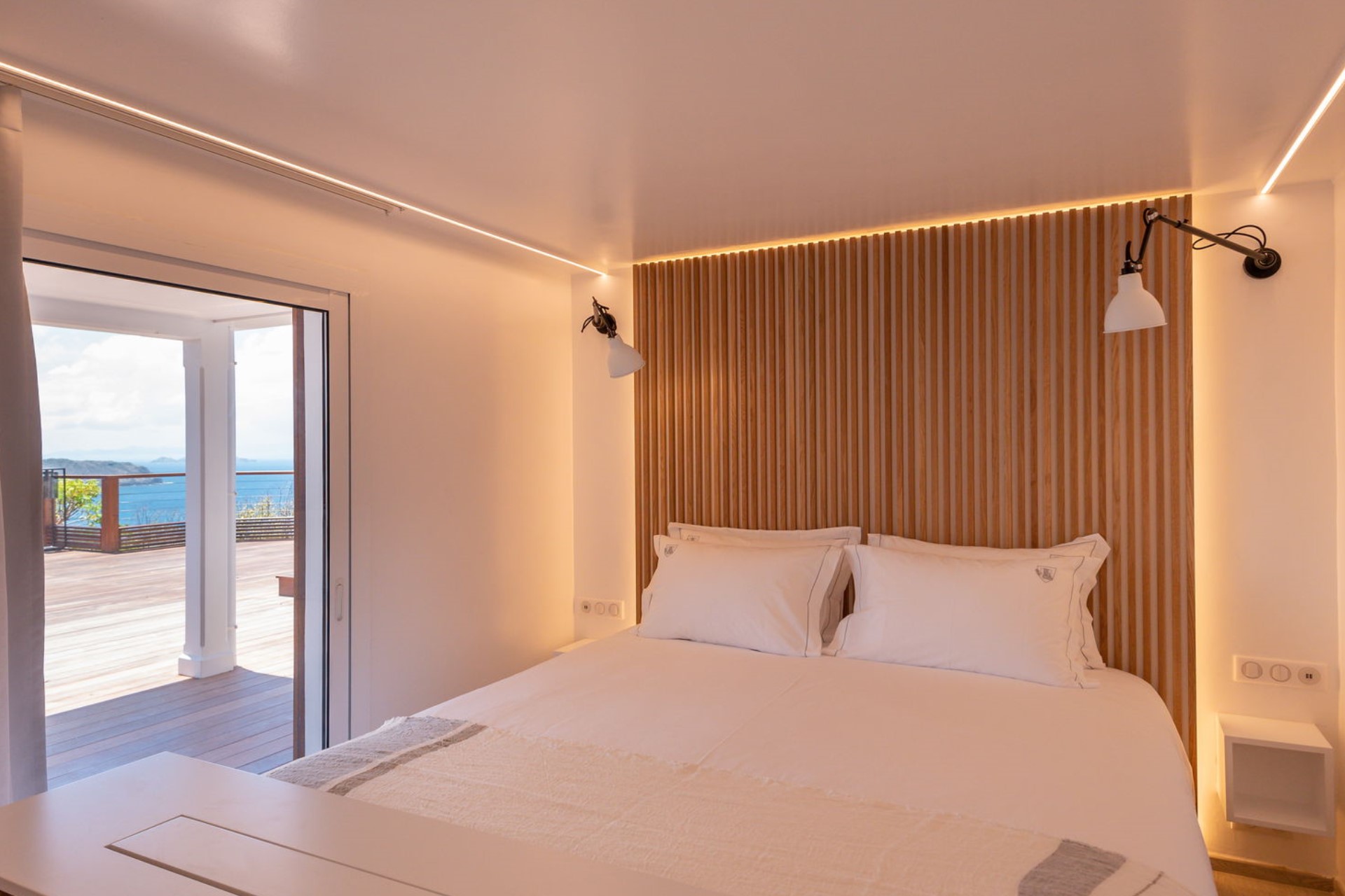 Bedroom 6 – king-size bed, en-suite bathroom with dual vanity & shower, terrace access, ocean views