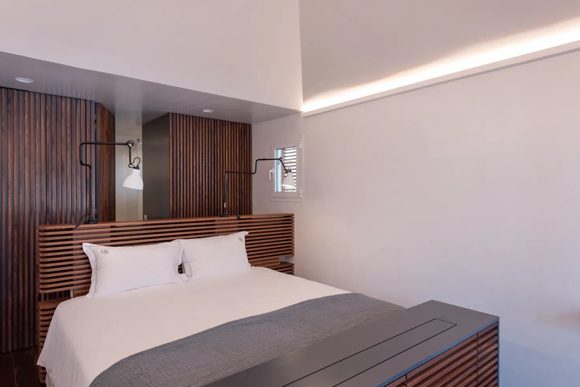 Bedroom 1 – king-size bed, walk-in wardrobe, en-suite bathroom with dual vanity & shower, terrace acces, ocean views