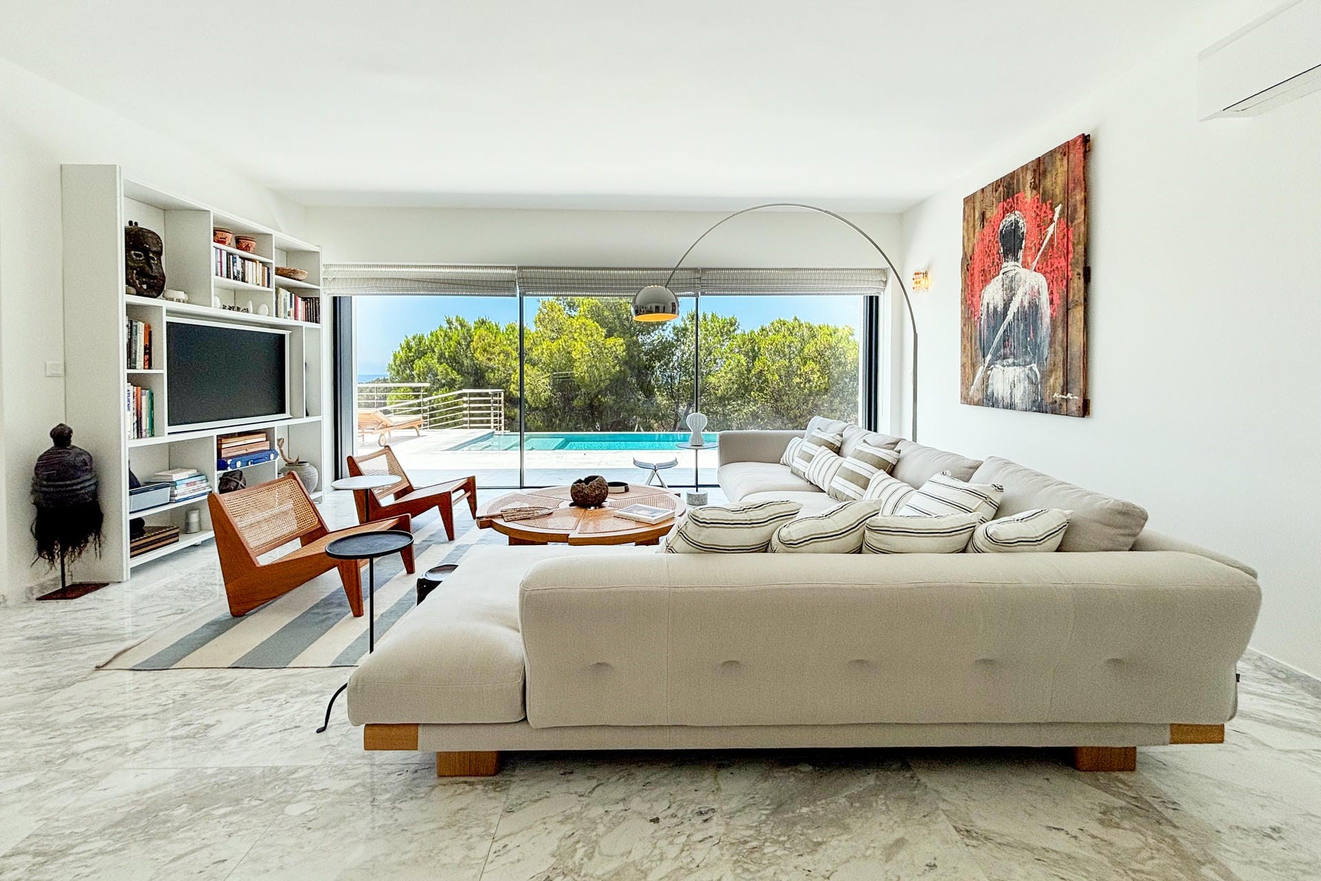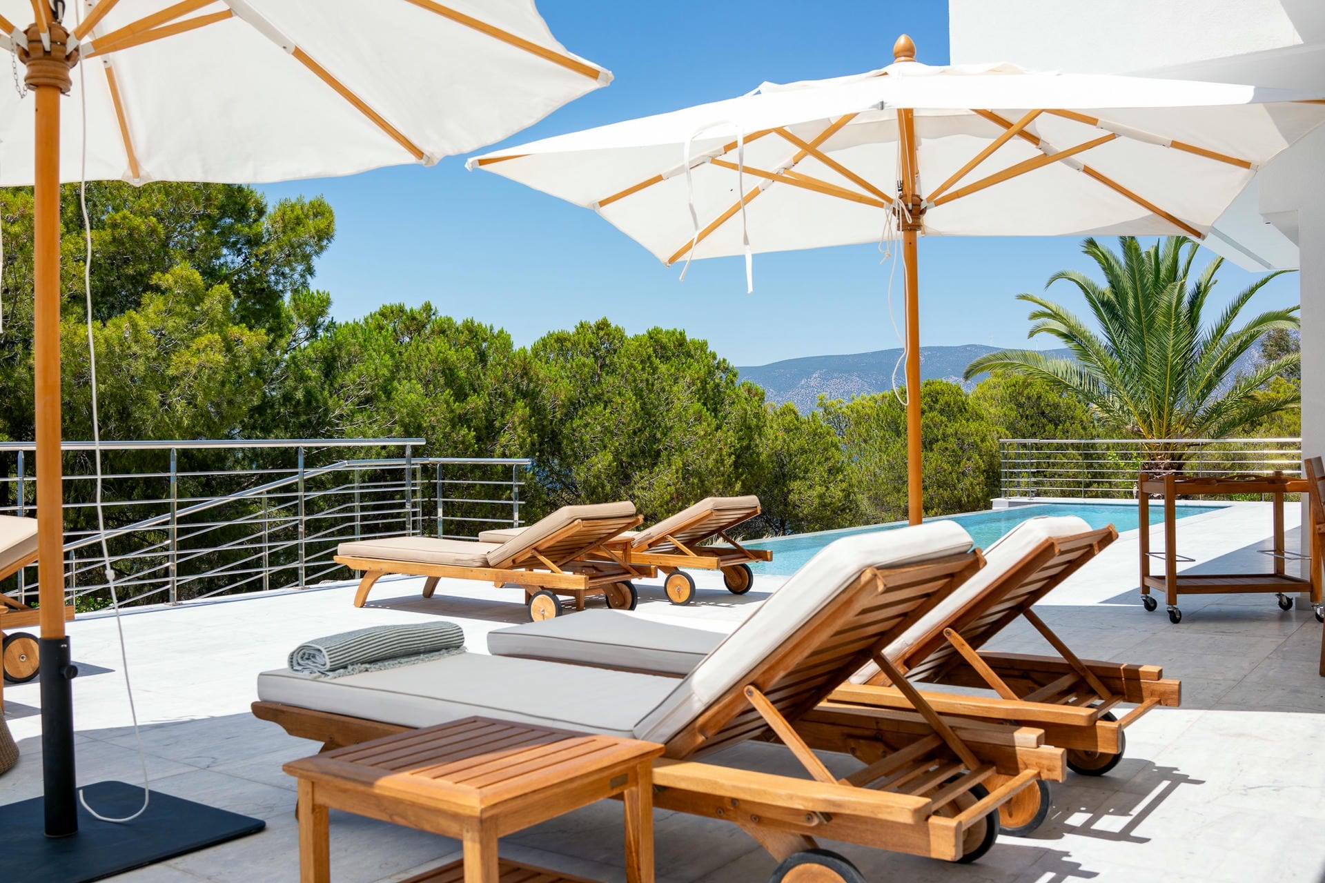 Surrounded by pine, olive and cypress trees, the villa is a Mediterranean paradise. Its privileged location also offers direct sea access, with a private path leading to a small, rocky beach area. Here, the offshore summer breezes create smooth, glassy waters, perfect for an afternoon dip.