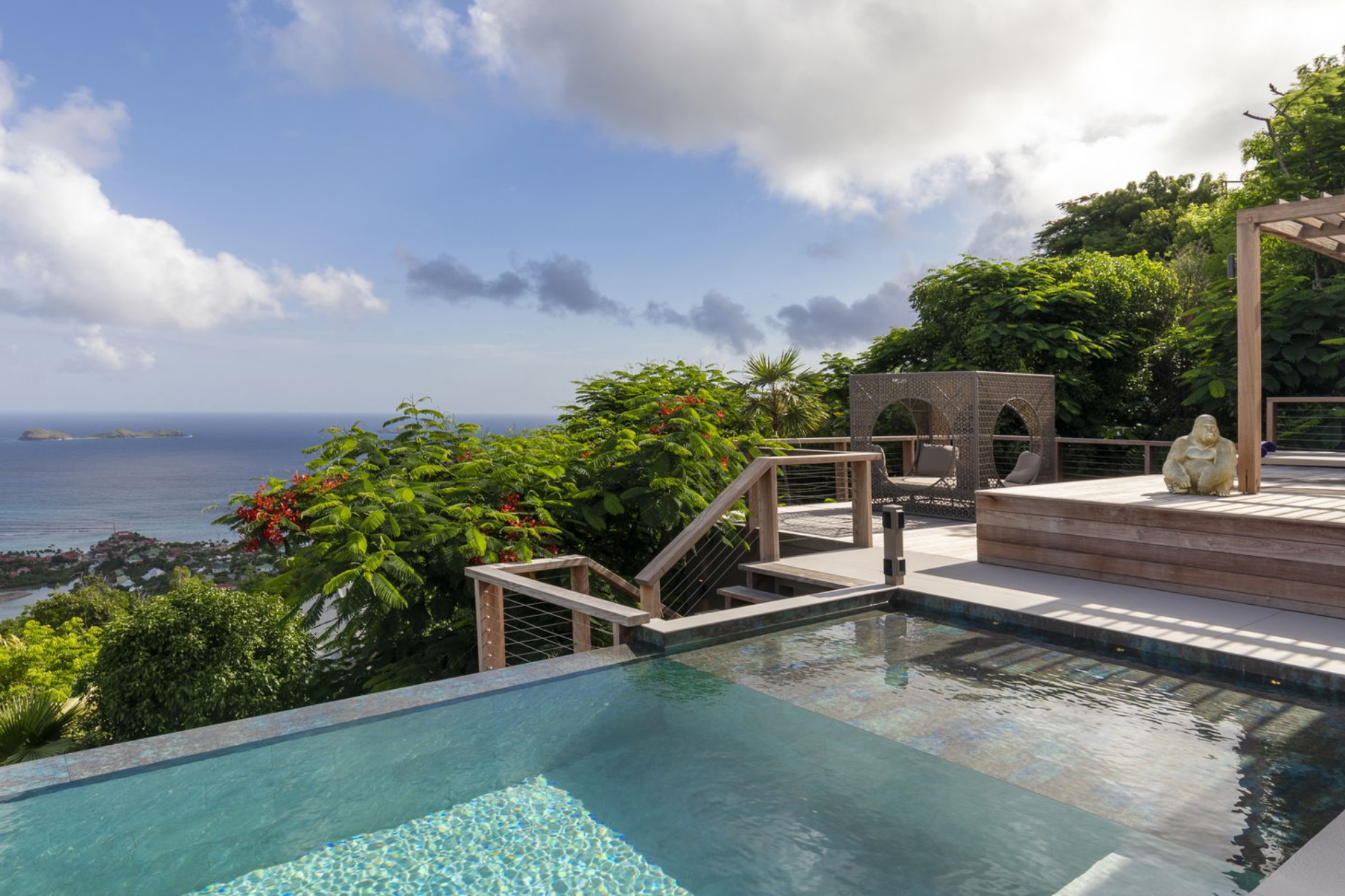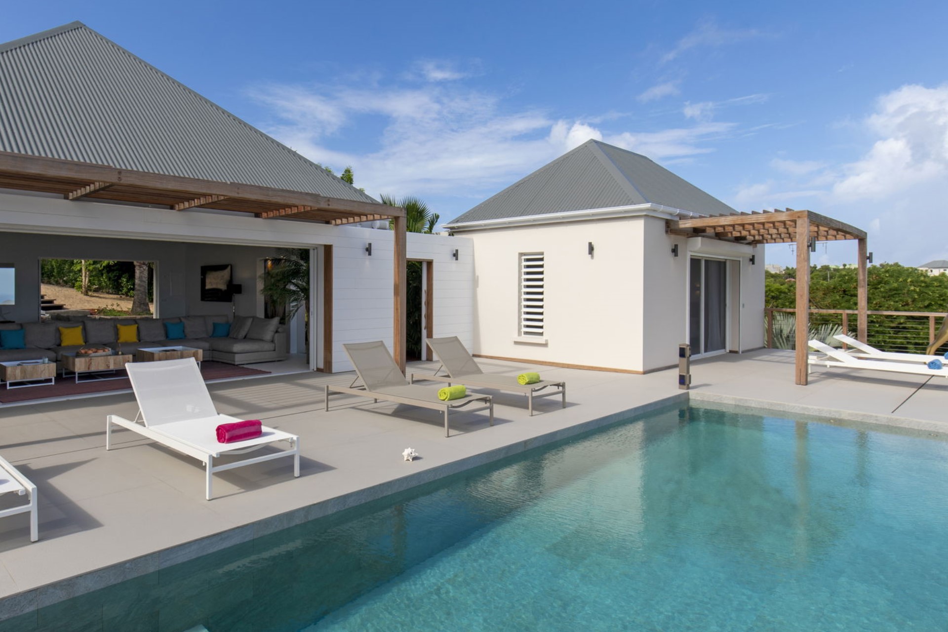 Perched in the exclusive hills of Lurin, Villa Krystel is a stunning four-bedroom property offering panoramic views of St. Jean Bay and the surrounding lush landscapes. This contemporary villa combines modern architecture with luxurious amenities, creating an idyllic setting for families or groups seeking a serene retreat in St Barths.