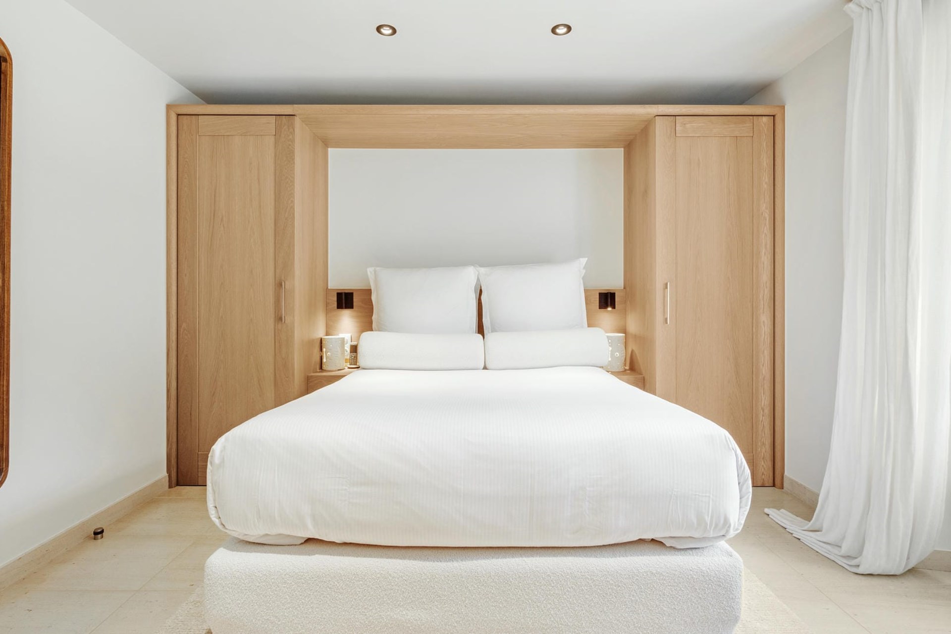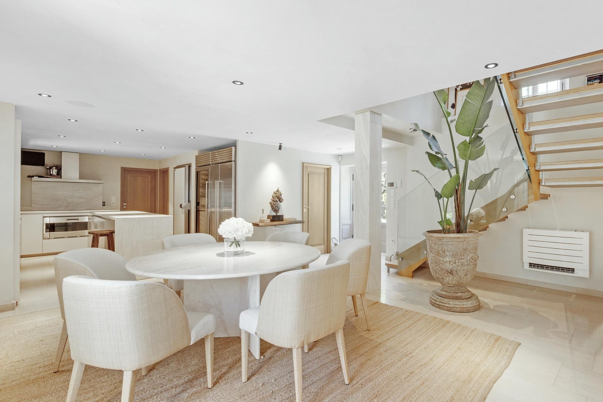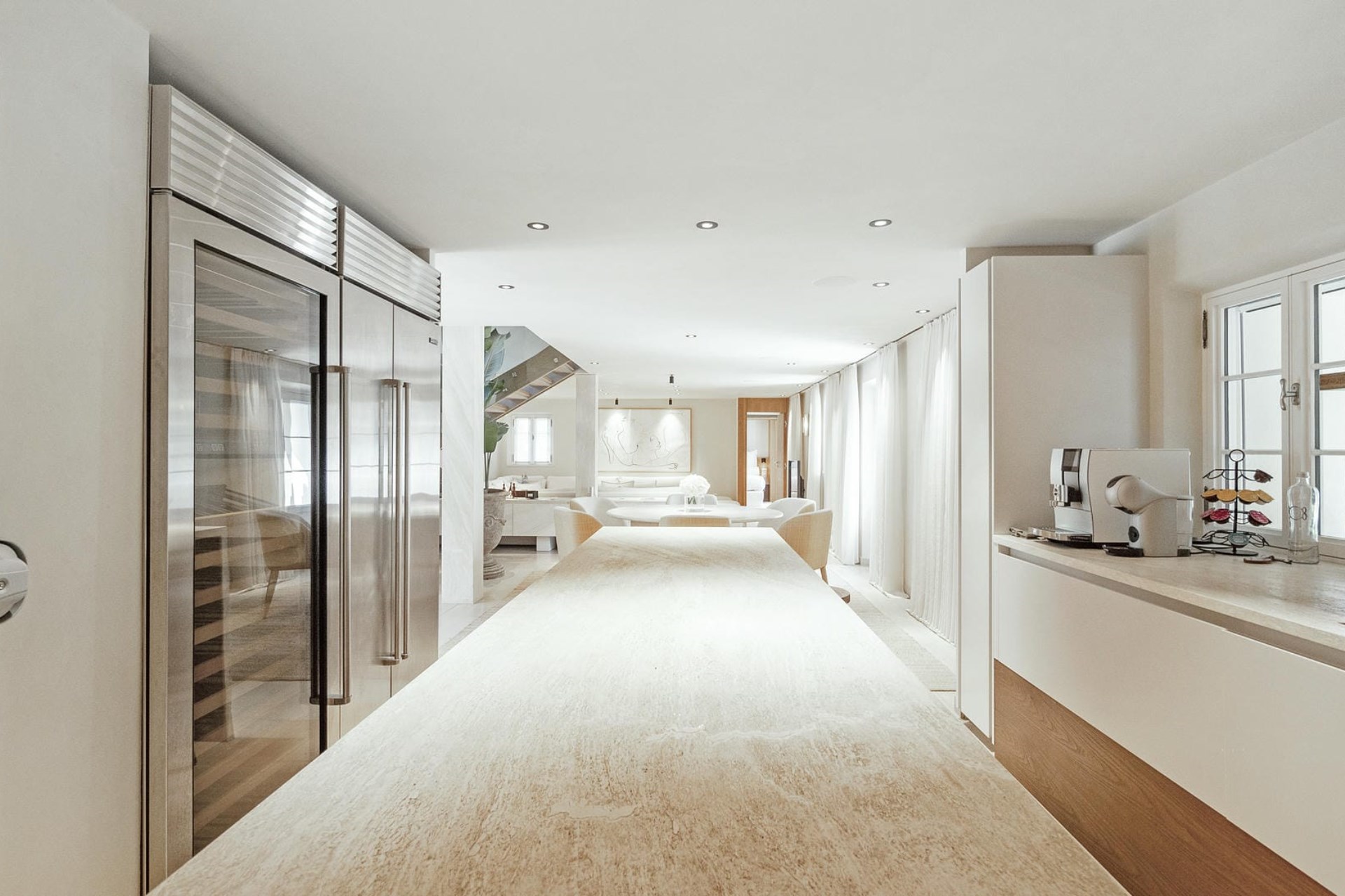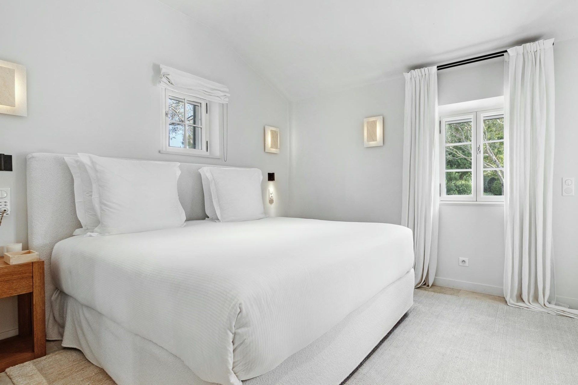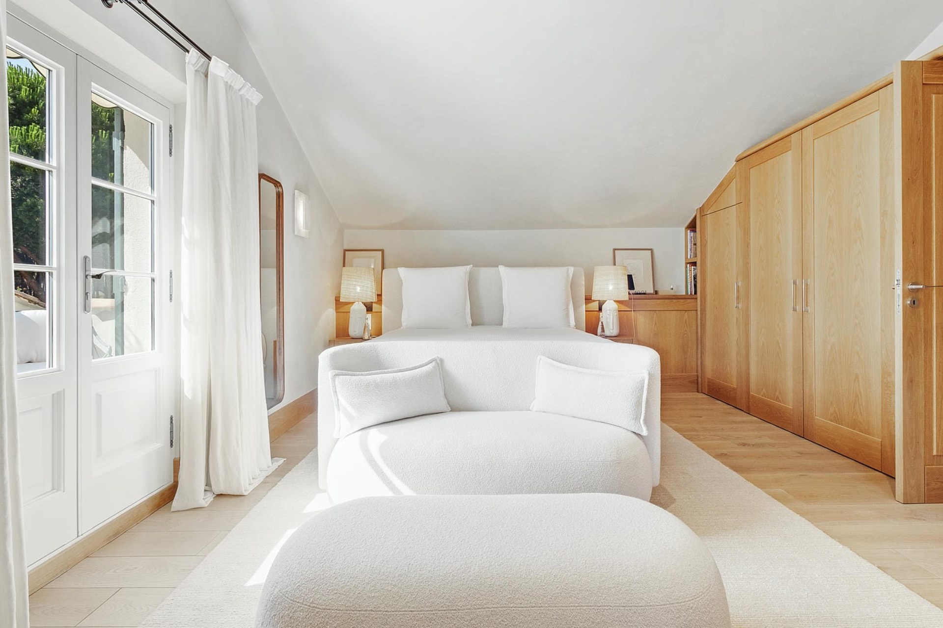 The villa itself is a testament to sophisticated design, seamlessly blending traditional Provençal charm with contemporary luxury. Its architecture and interiors evoke a sense of understated grandeur, creating an ambiance of relaxed opulence. Clean white lines, pine wood details, and light furnishings create a bright and spacious feel throughout the interiors.