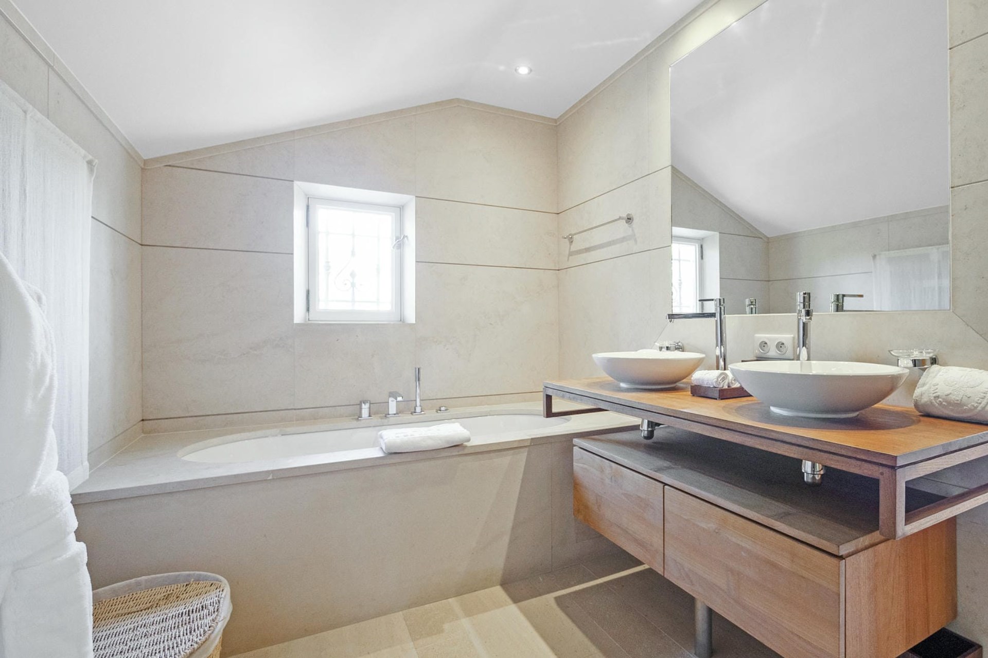 Five spacious, en-suite bedrooms are spread across the villa’s two floor. The first floor is home to the two master suites, both with king-size beds and private balconies. On the ground floor there are three well-appointed guest rooms, one with a king-size bed and two with queen-size beds.