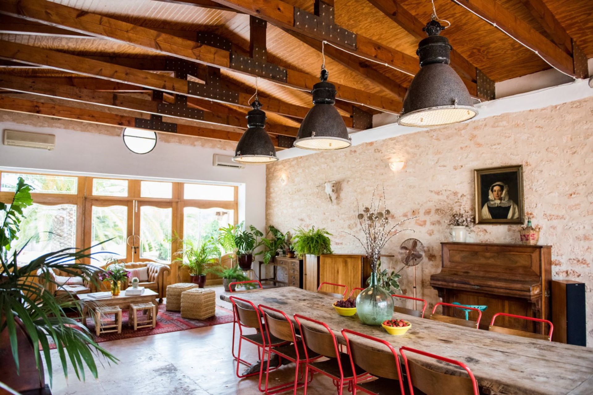Across the patio from the main house is the spacious barn, which connects to the summer kitchen used to cater to larger groups. The barn offers the perfect space to relax and socialise as it boasts an open fireplace, a piano, comfortable couches, and a large dining table. It leads directly out onto the patio and can easily be set up to host special events.