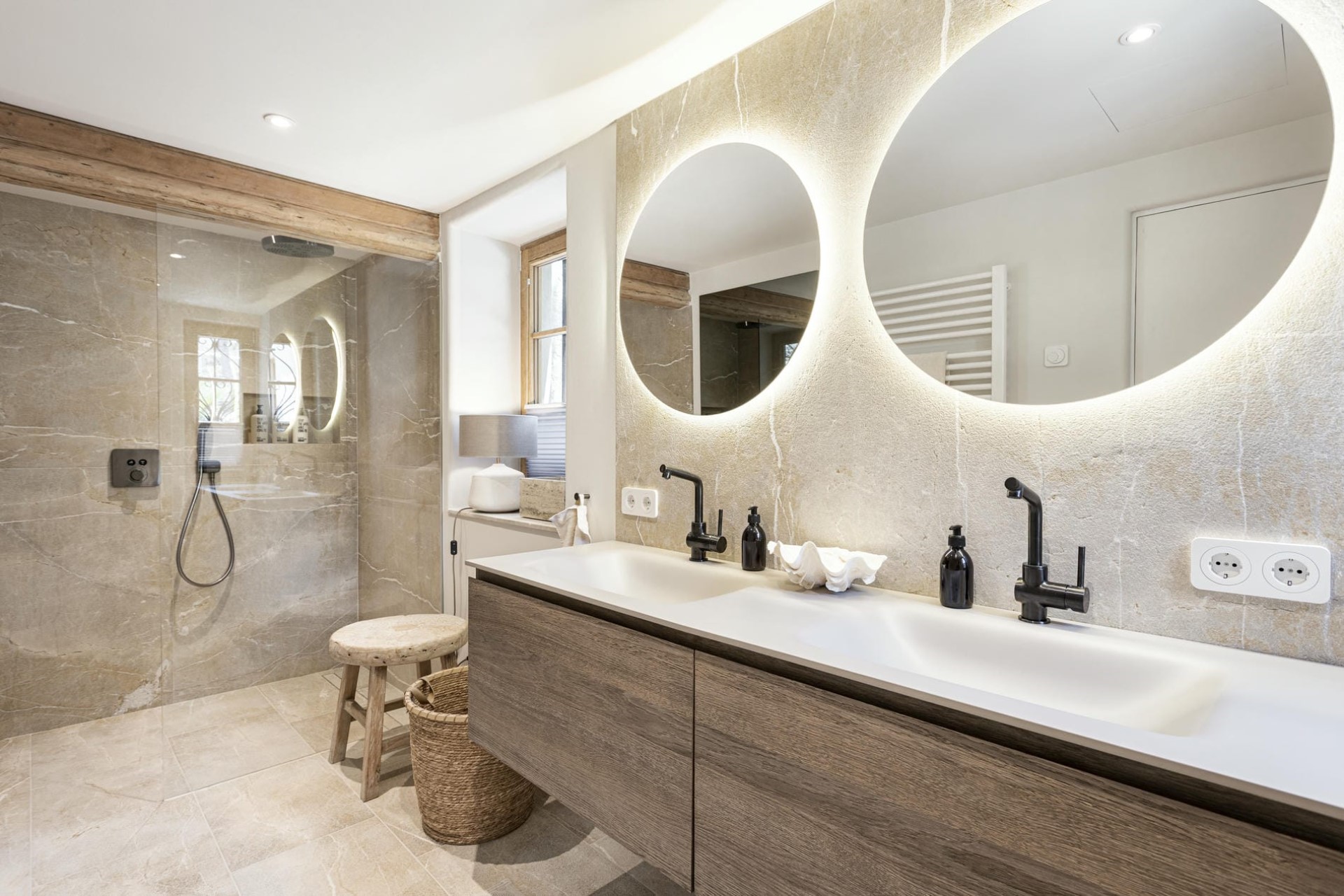 Bedroom 5 – double bed, kitchenette, en-suite bathroom with double vanity & shower, and private courtyard