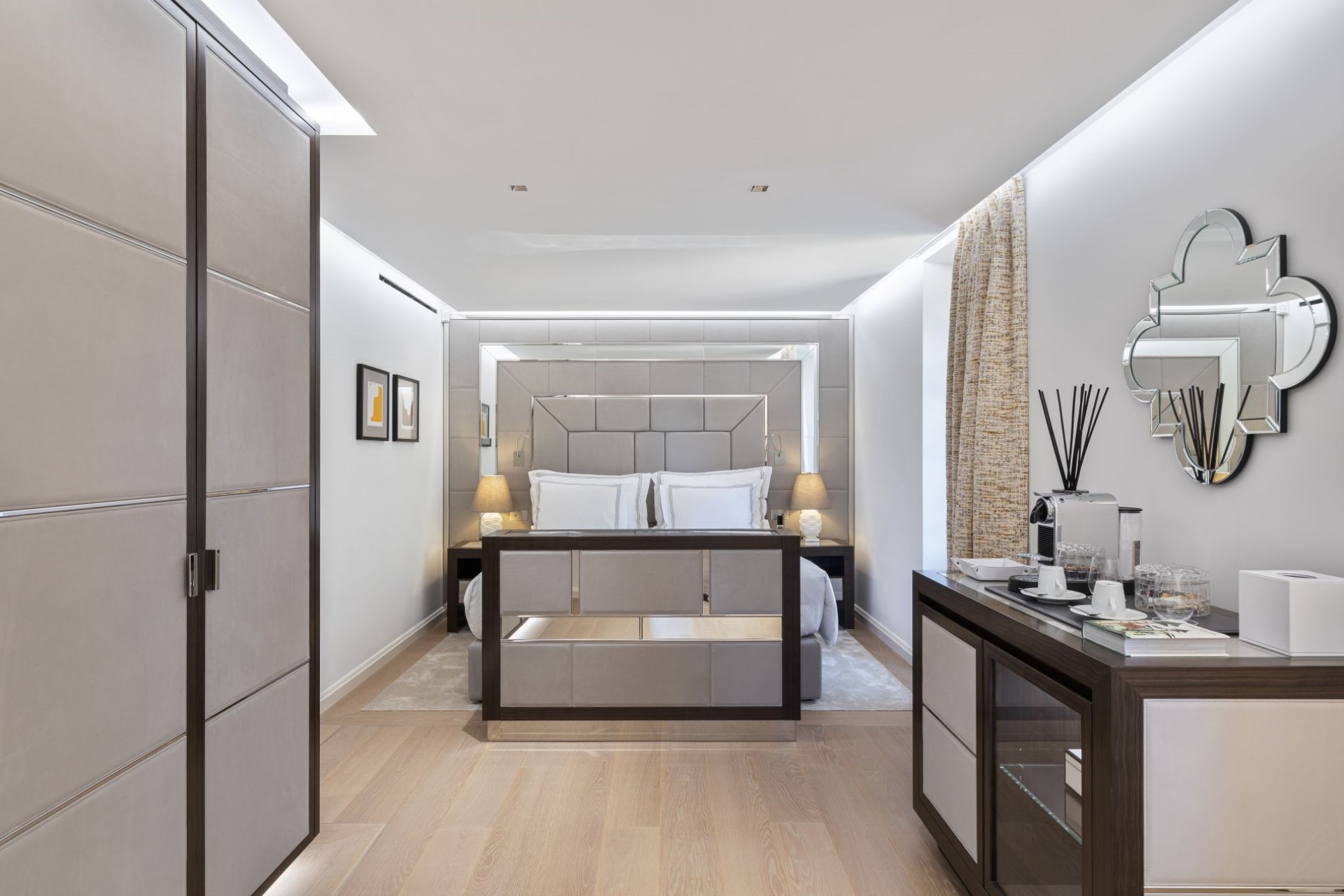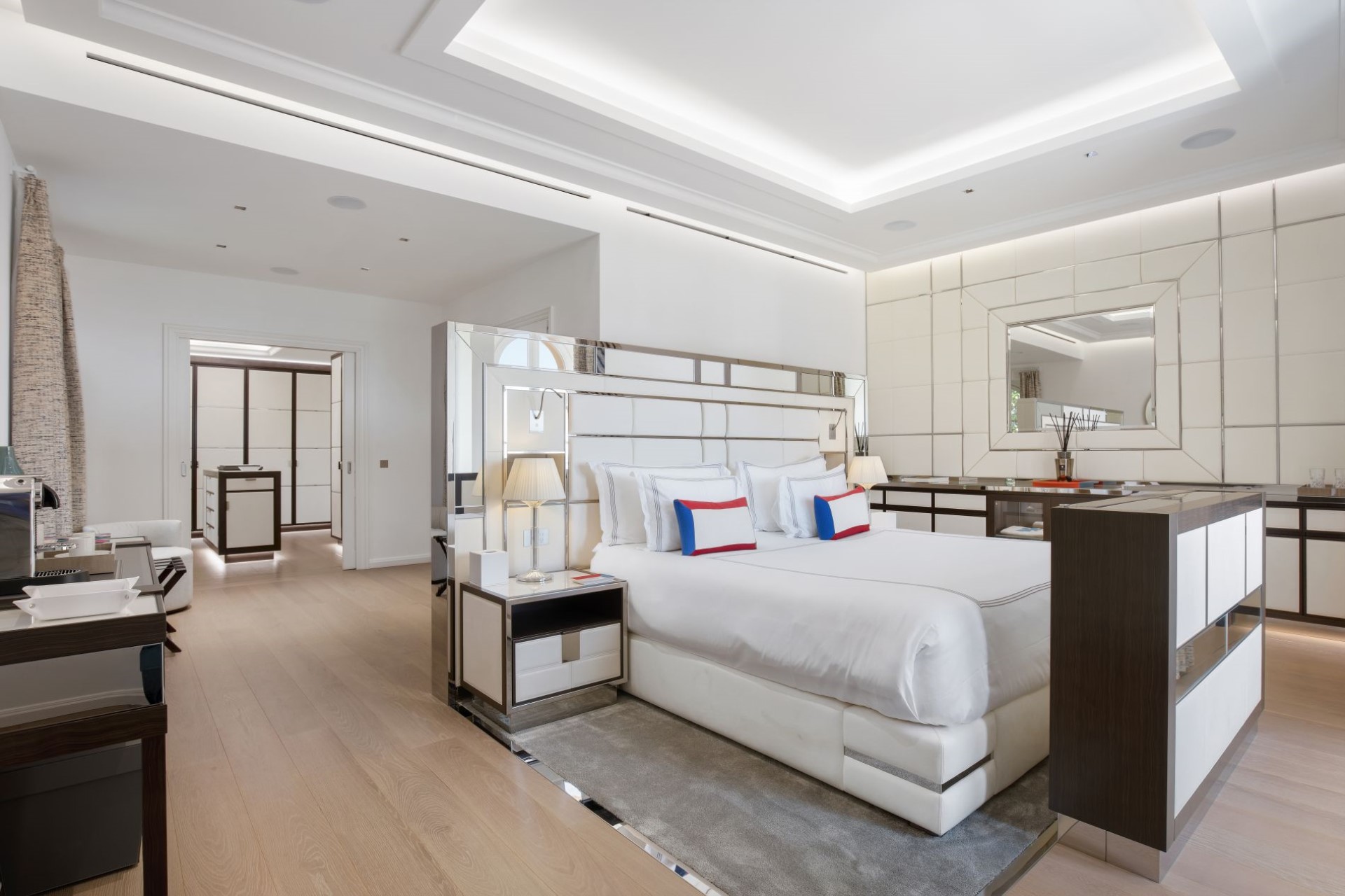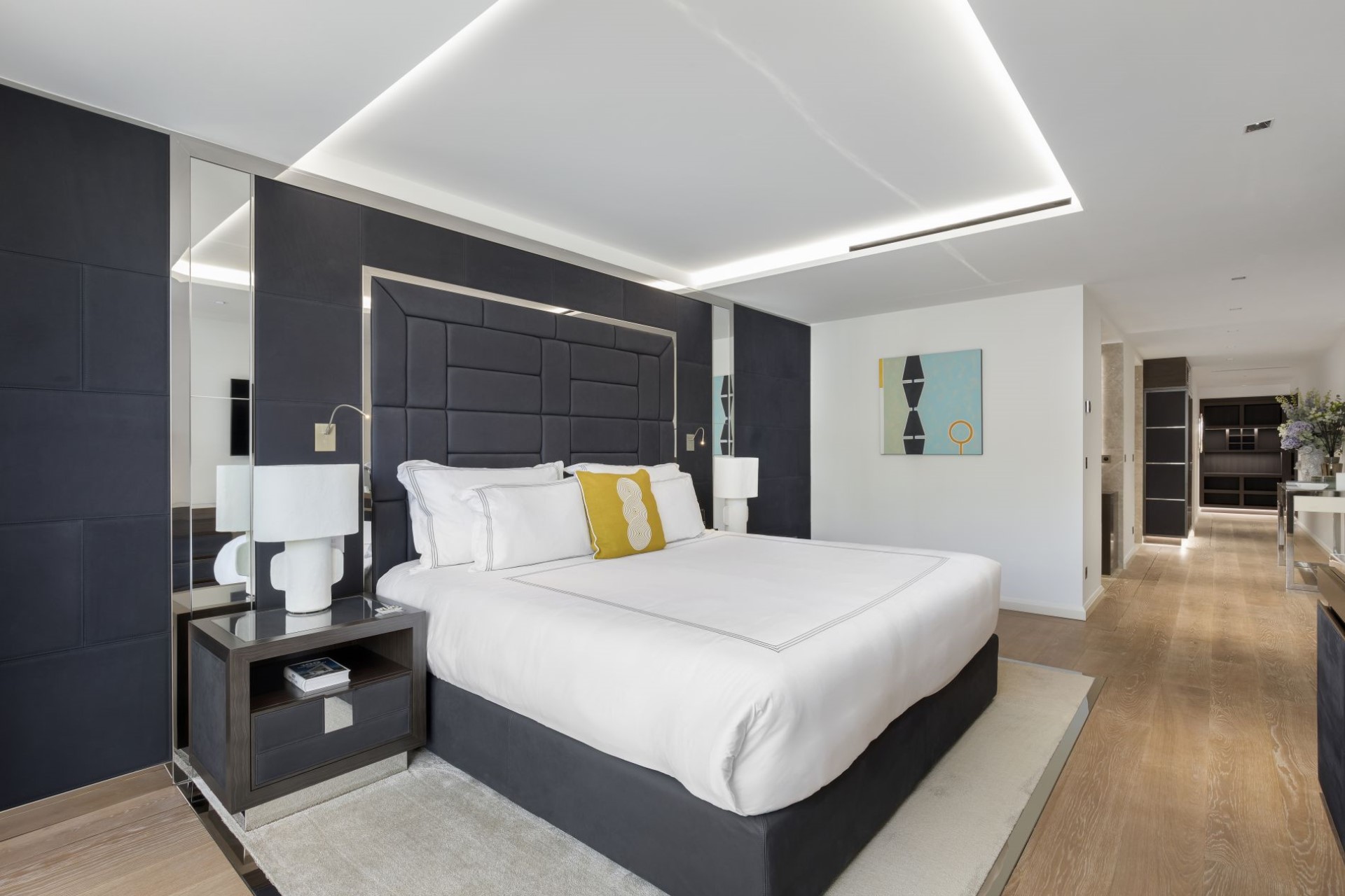 Bedroom 1 – super-king-size bed, dressing room, en-suite bathroom, and private terrace with garden views