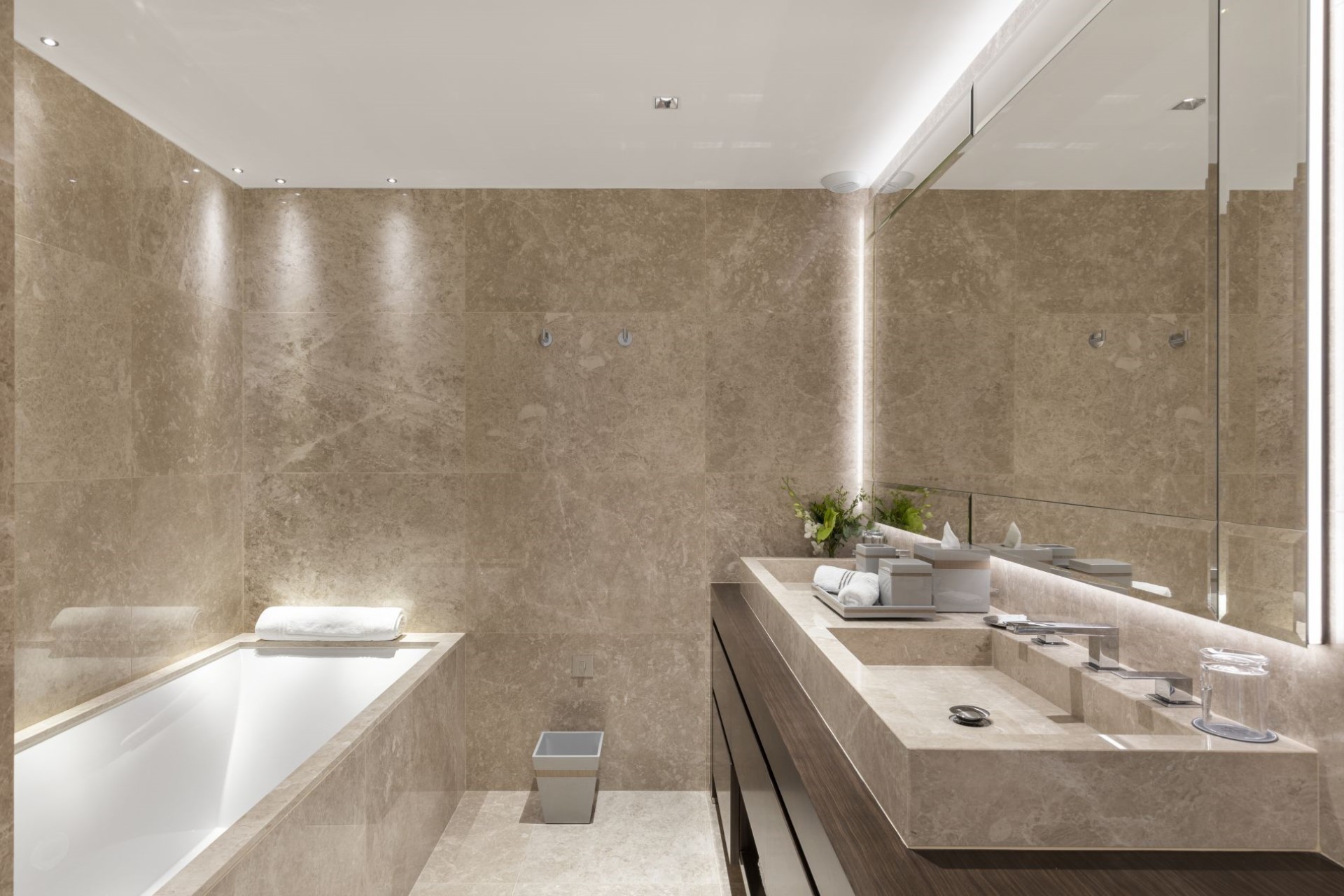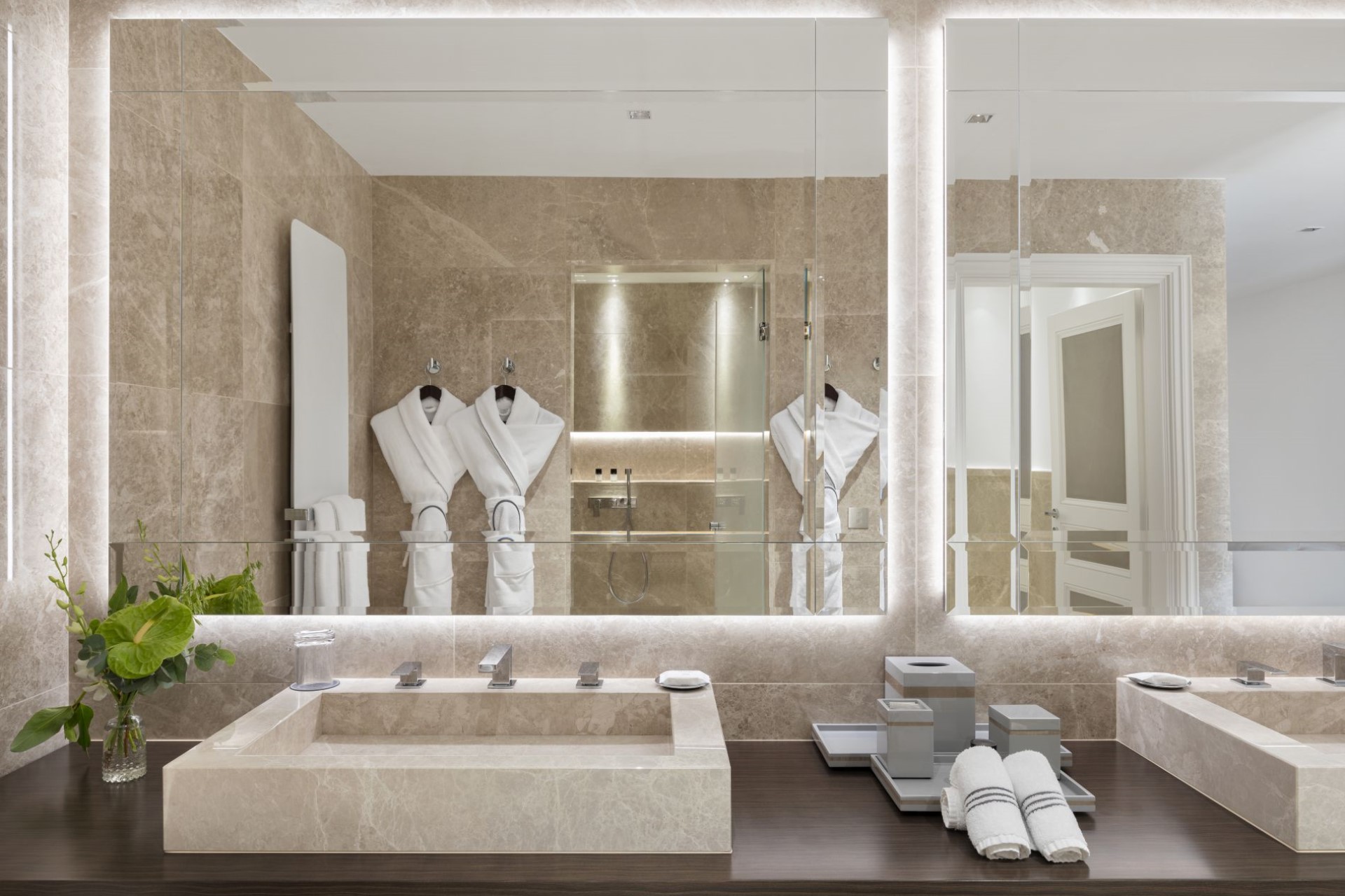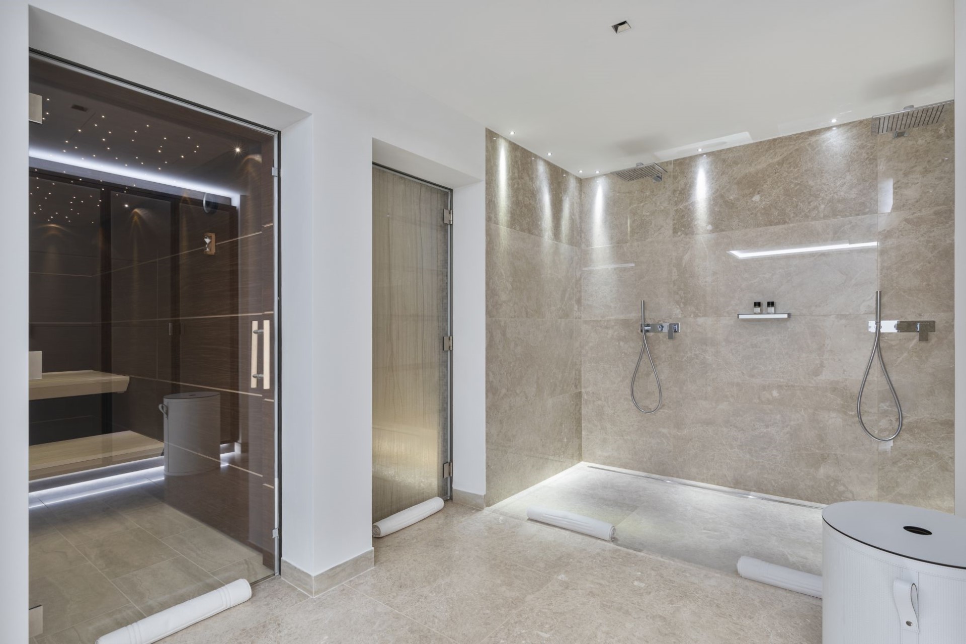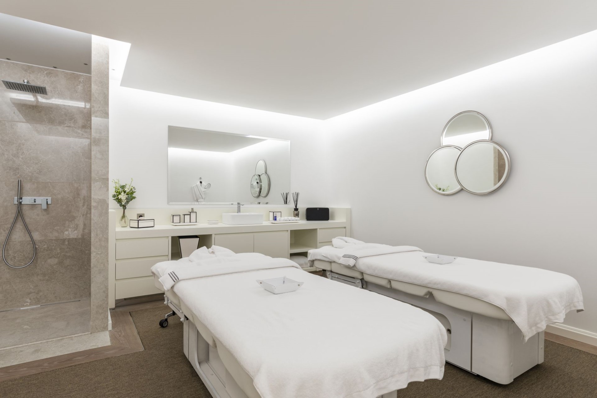 White walls and high ceilings create a bright and spacious atmosphere, whilst plush furnishings, modern artworks and state-of-the-art décor provide a truly luxurious feel. Guests can relax in a large lounge area or enjoy tastings in the private wine cellar before heading to the spa for a treatment.