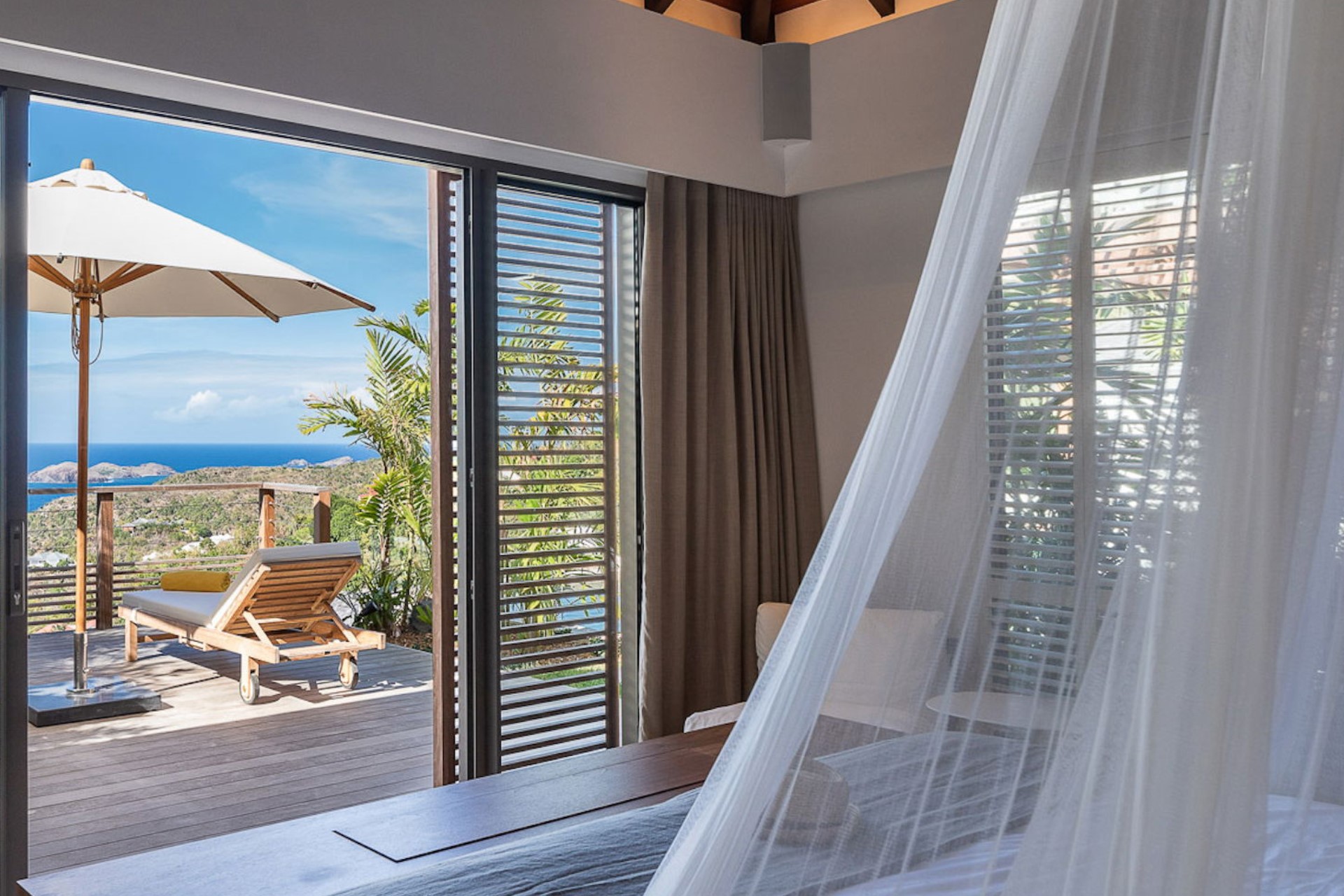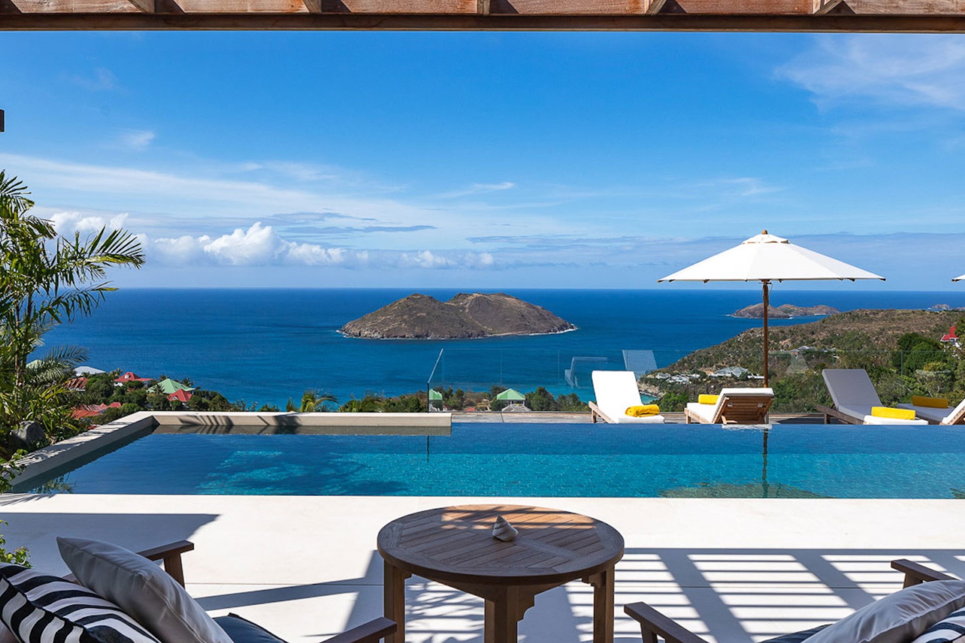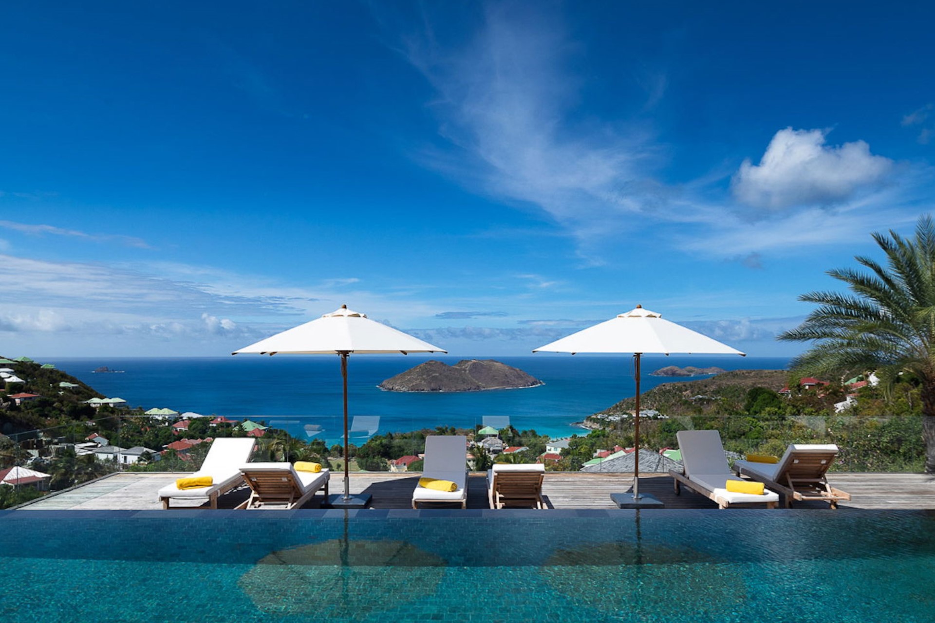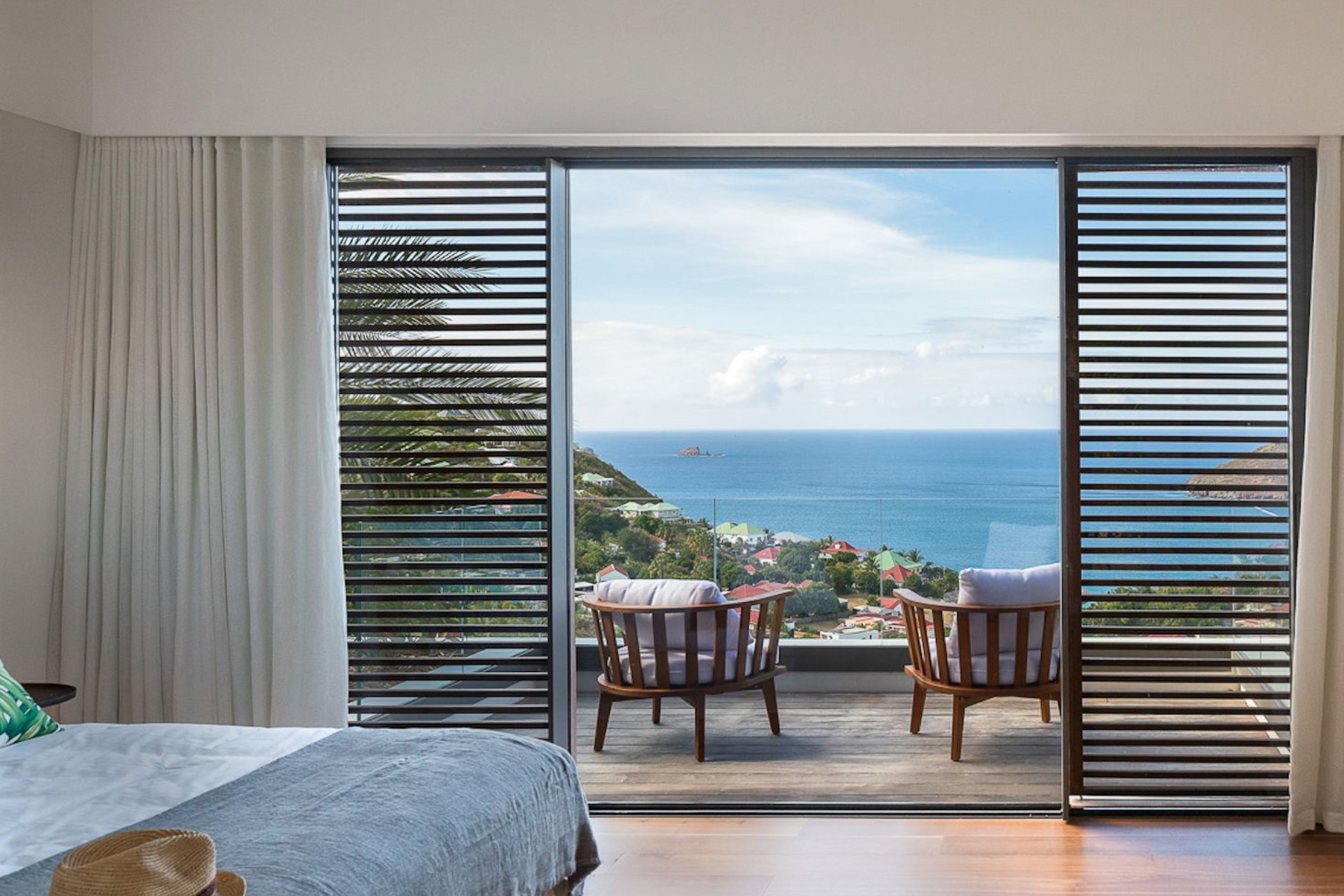Villa Les Roches, perched in the peaceful hills of Colombier, offers a perfect blend of tranquillity and accessibility. Its elevated position provides breathtaking panoramic views of the ocean and surrounding islets, creating a serene retreat for relaxation.