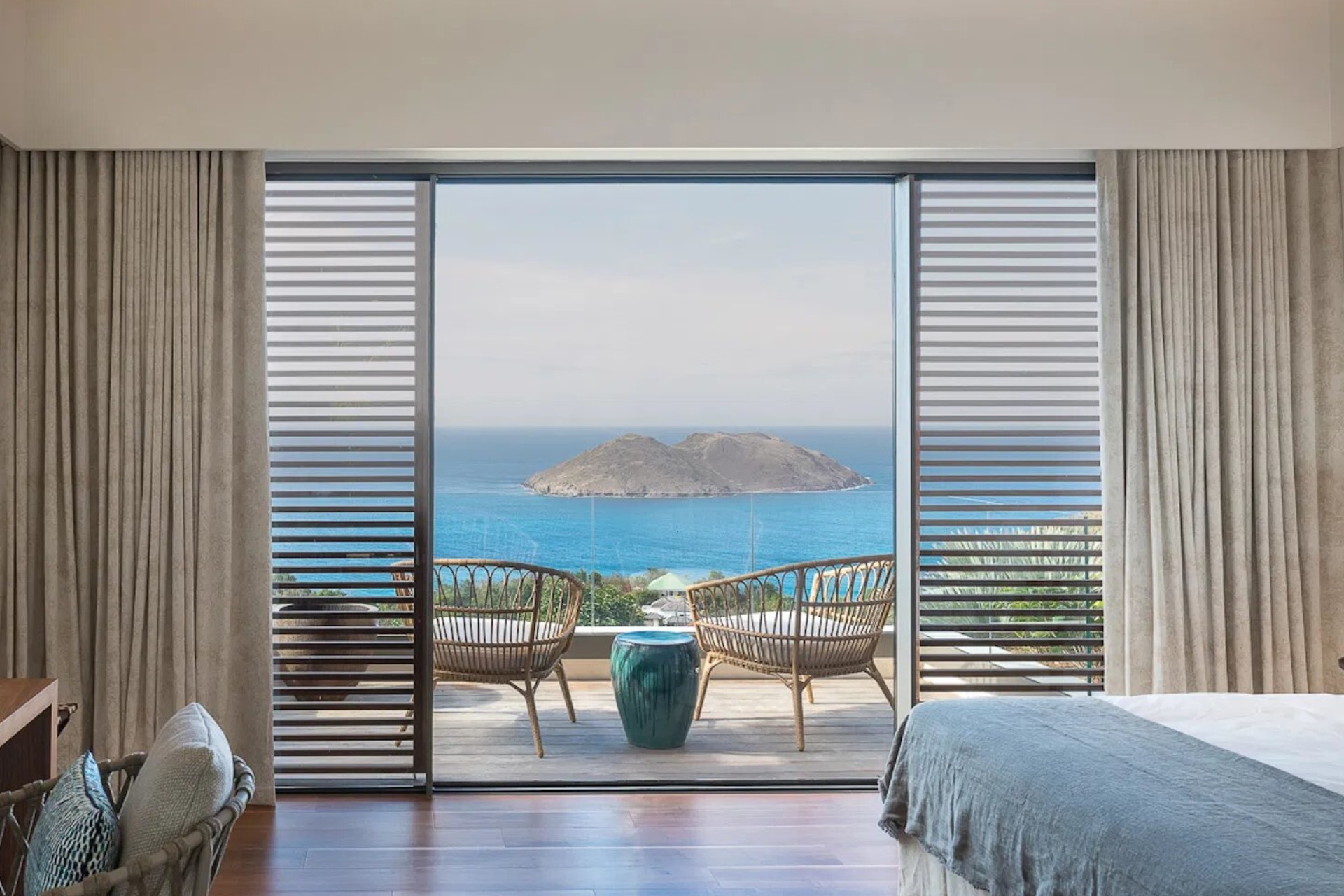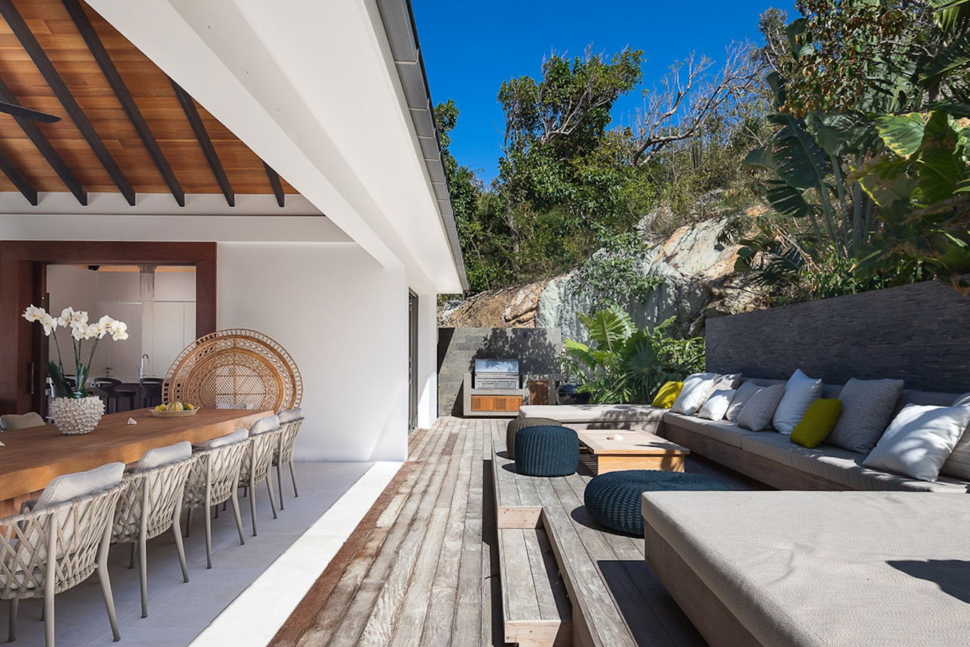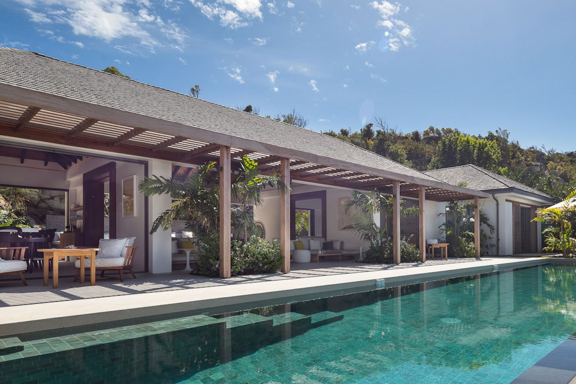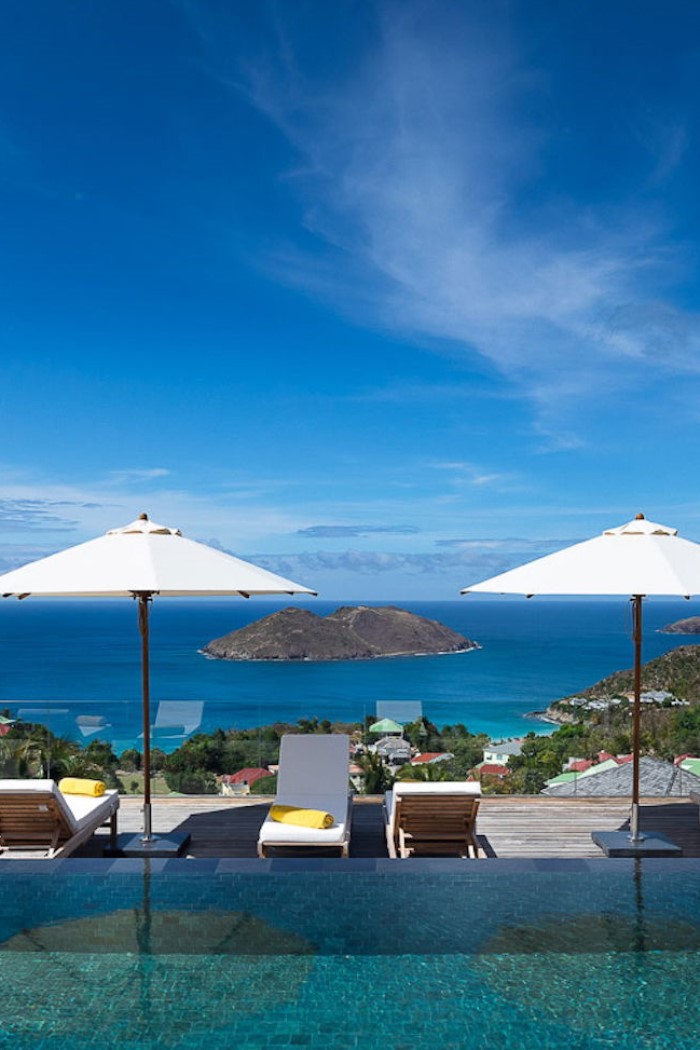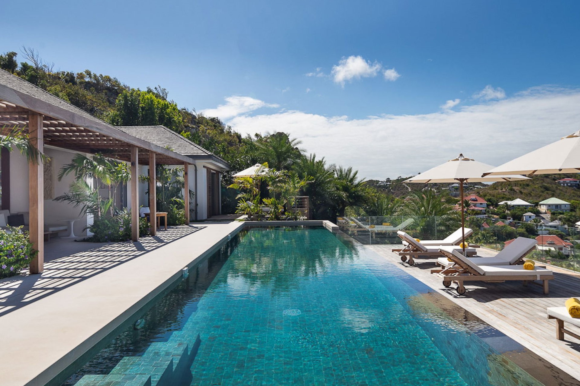 Villa Les Roches, perched in the peaceful hills of Colombier, offers a perfect blend of tranquillity and accessibility. Its elevated position provides breathtaking panoramic views of the ocean and surrounding islets, creating a serene retreat for relaxation.