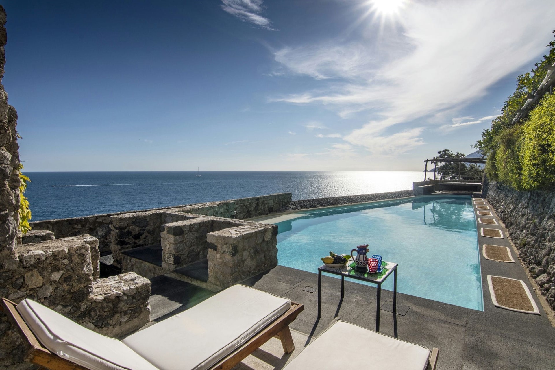 Designed and built in the 1960s by renowned Italian architect Vincenzo Monaco, the villa is enveloped by lemon trees and citrus-filled trellises. A private path offers guests exclusive access to a secluded rocky cove, allowing for refreshing dips in the crystal-clear waters of the Tyrrhenian Sea.