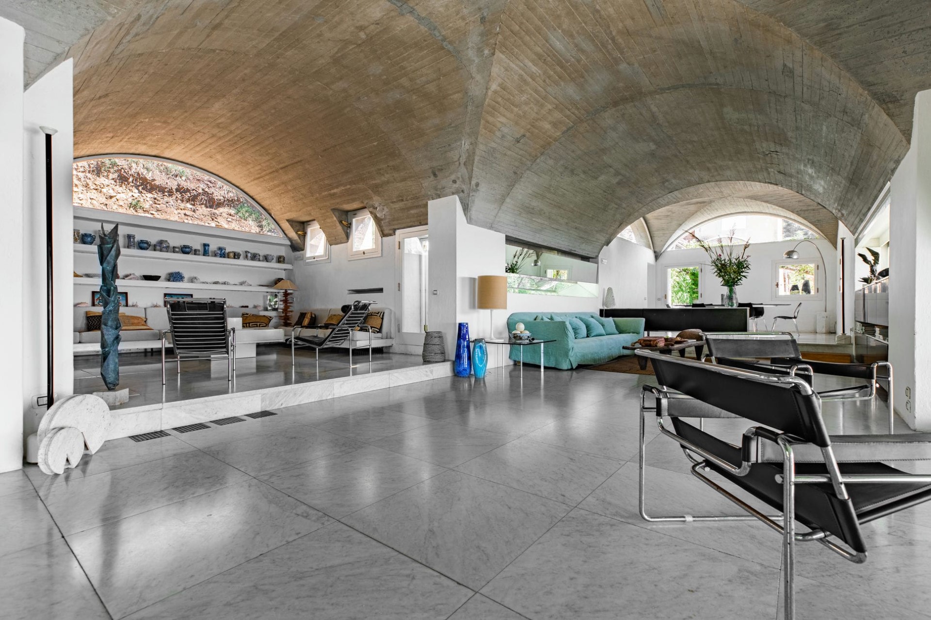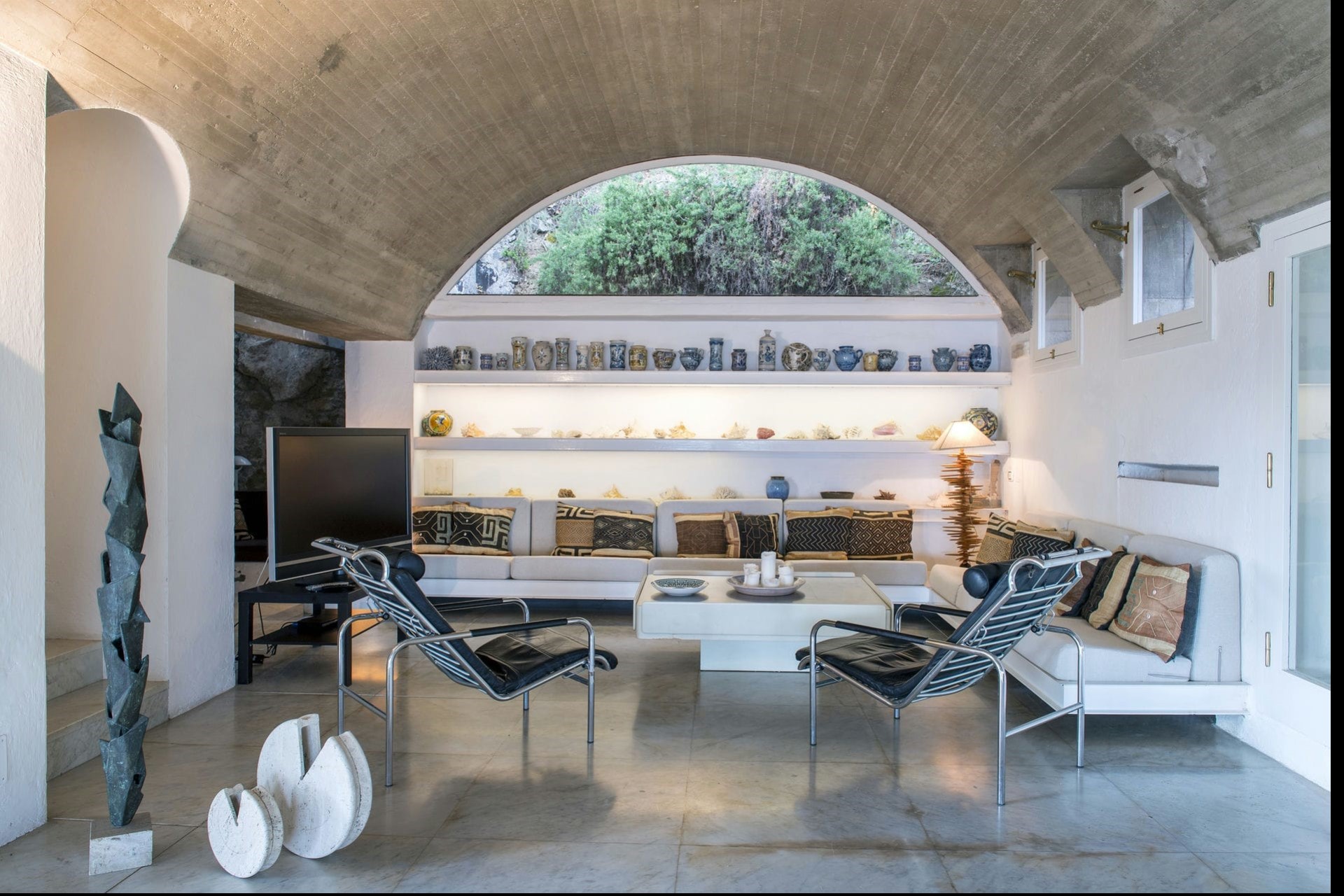 The villa itself is a masterpiece of mid-century modern architecture with sleek, minimalist interiors. Floor-to-ceiling windows frame the breathtaking views, while tasteful decorations mixed with contemporary and traditional Italian furnishings create an atmosphere of understated sophistication.