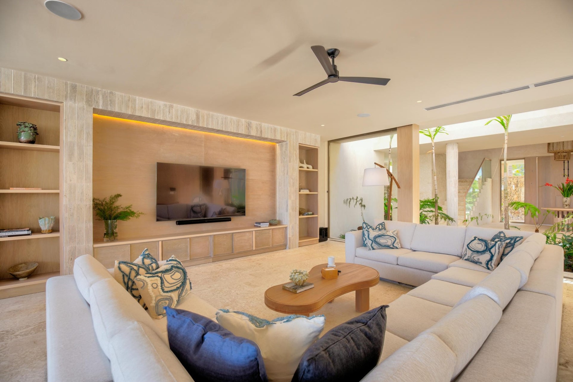 Inside the villa, guests will barely feel that they are indoors at all. The outside is truly brought in with wide open doors to the exterior, warm natural materials, and indoor tropical gardens.