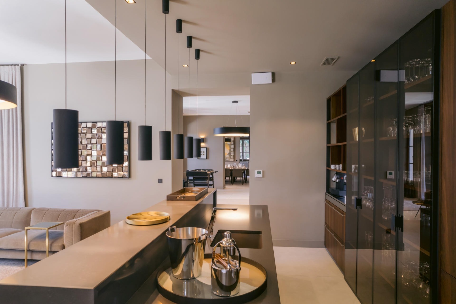 This grand residence features 11 bedrooms across a main house and two elegant annexes, ensuring privacy and comfort for groups of up to 22 guests. All rooms boast en-suite or private bathrooms, dressing rooms, and outdoor access. Several also feature in-room sitting areas, while those in the guest houses have shared lounge rooms with handy kitchenettes.