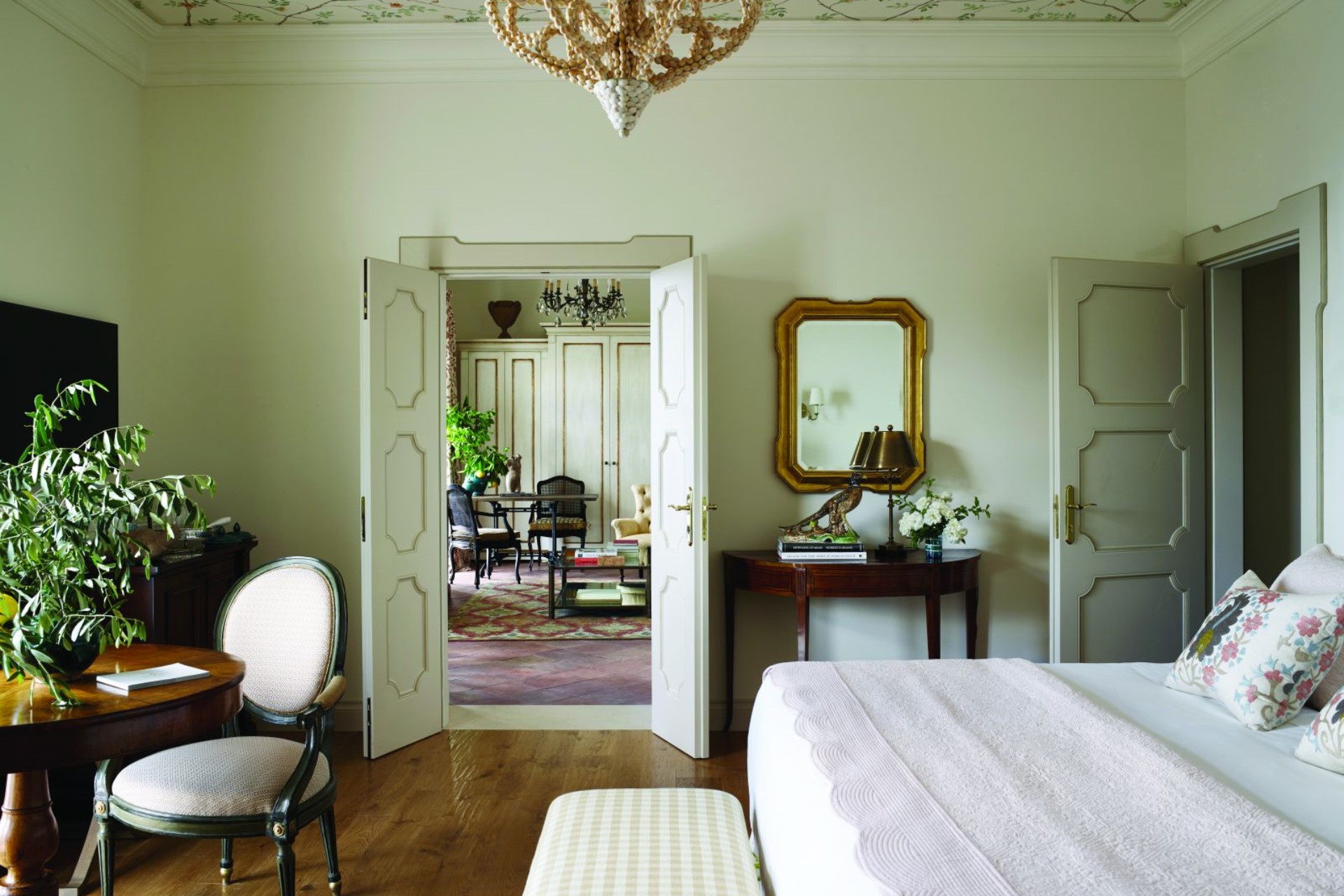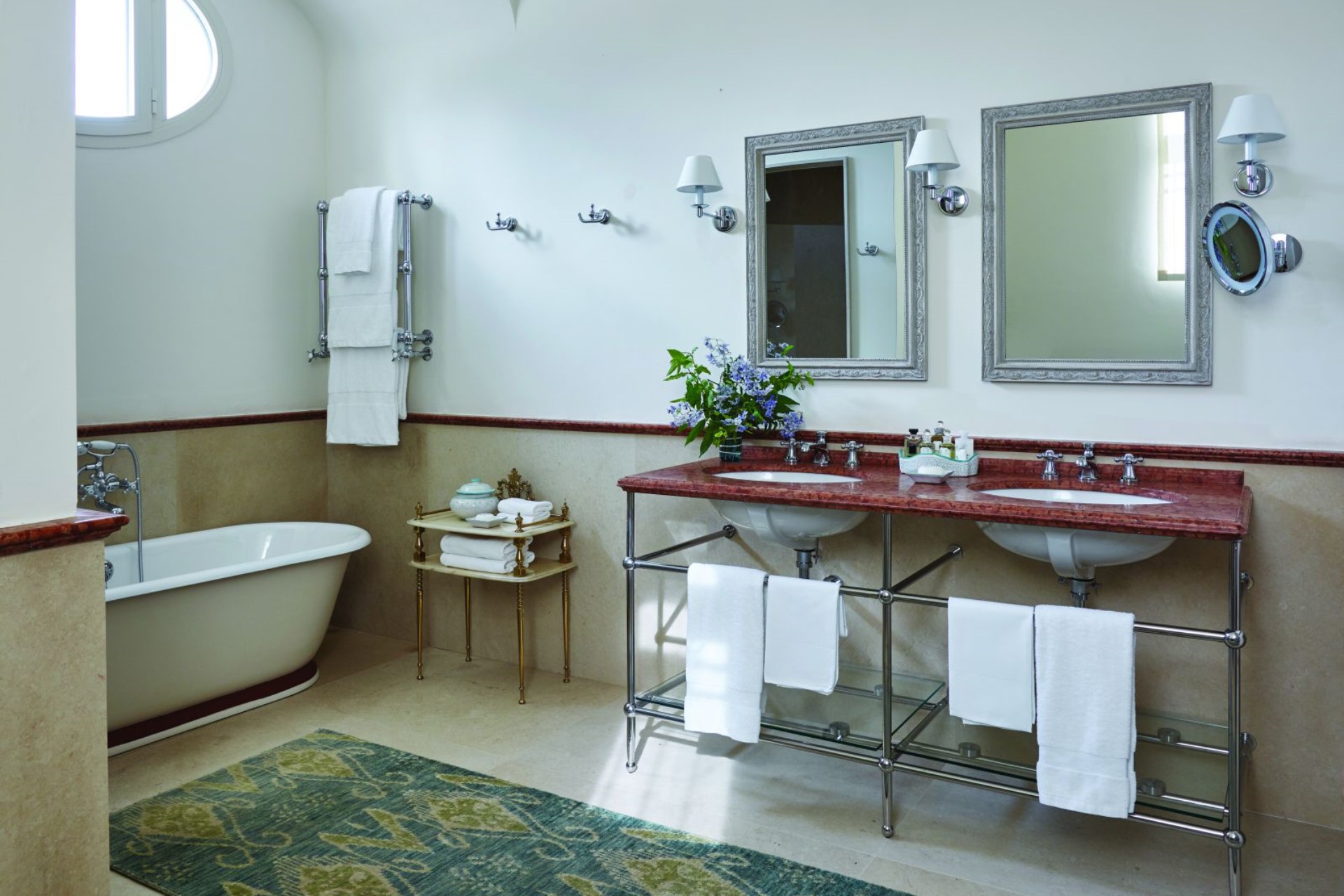 The interiors are the perfect blend of traditional furnishings and modern amenities. The décor is elegant and timeless, with beautiful antiques sourced worldwide dotted throughout. The villa features many original artworks including vintage maps and works by French painter Jean Debuffet – one of the founders of the Art Brut movement.