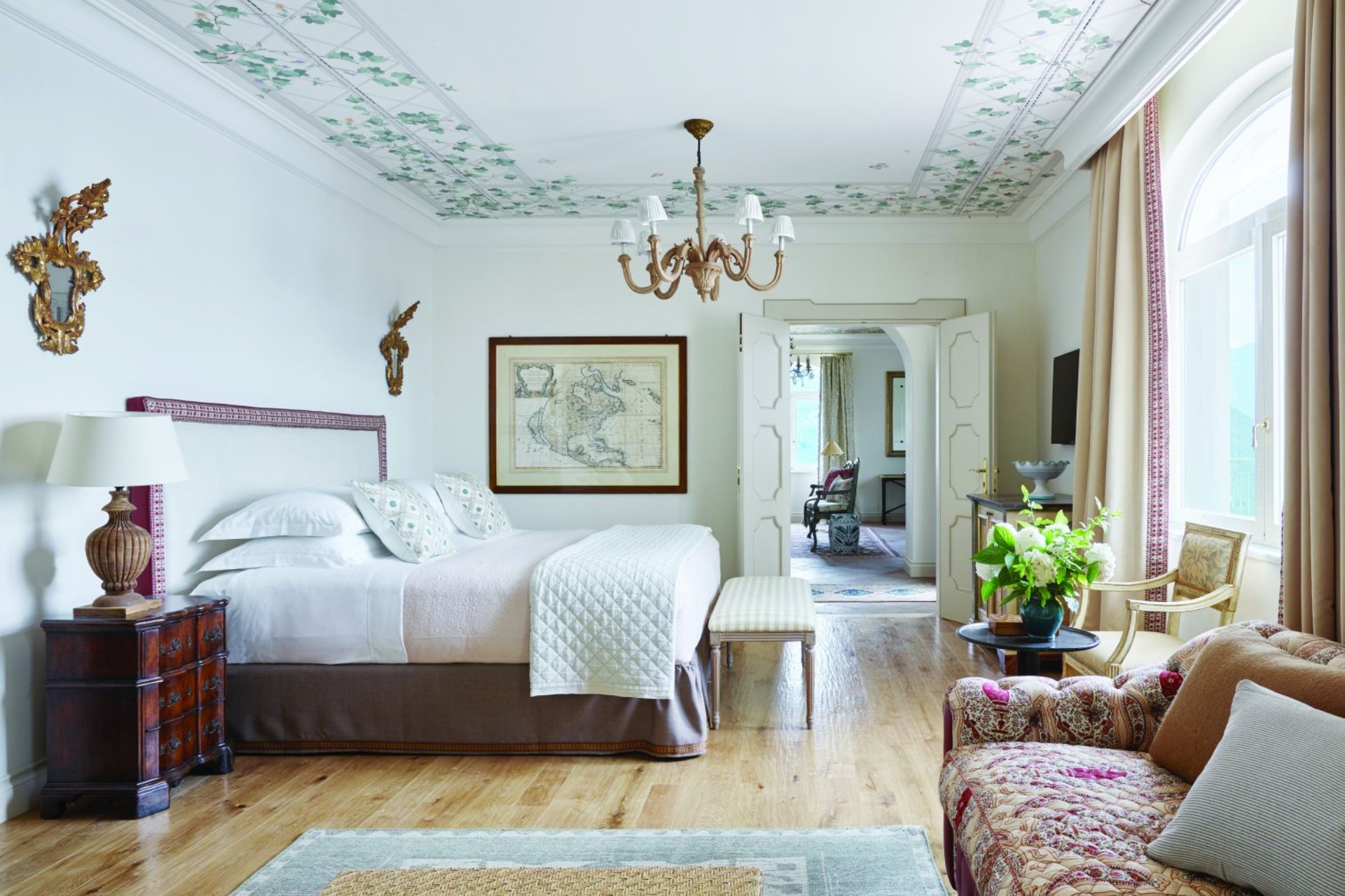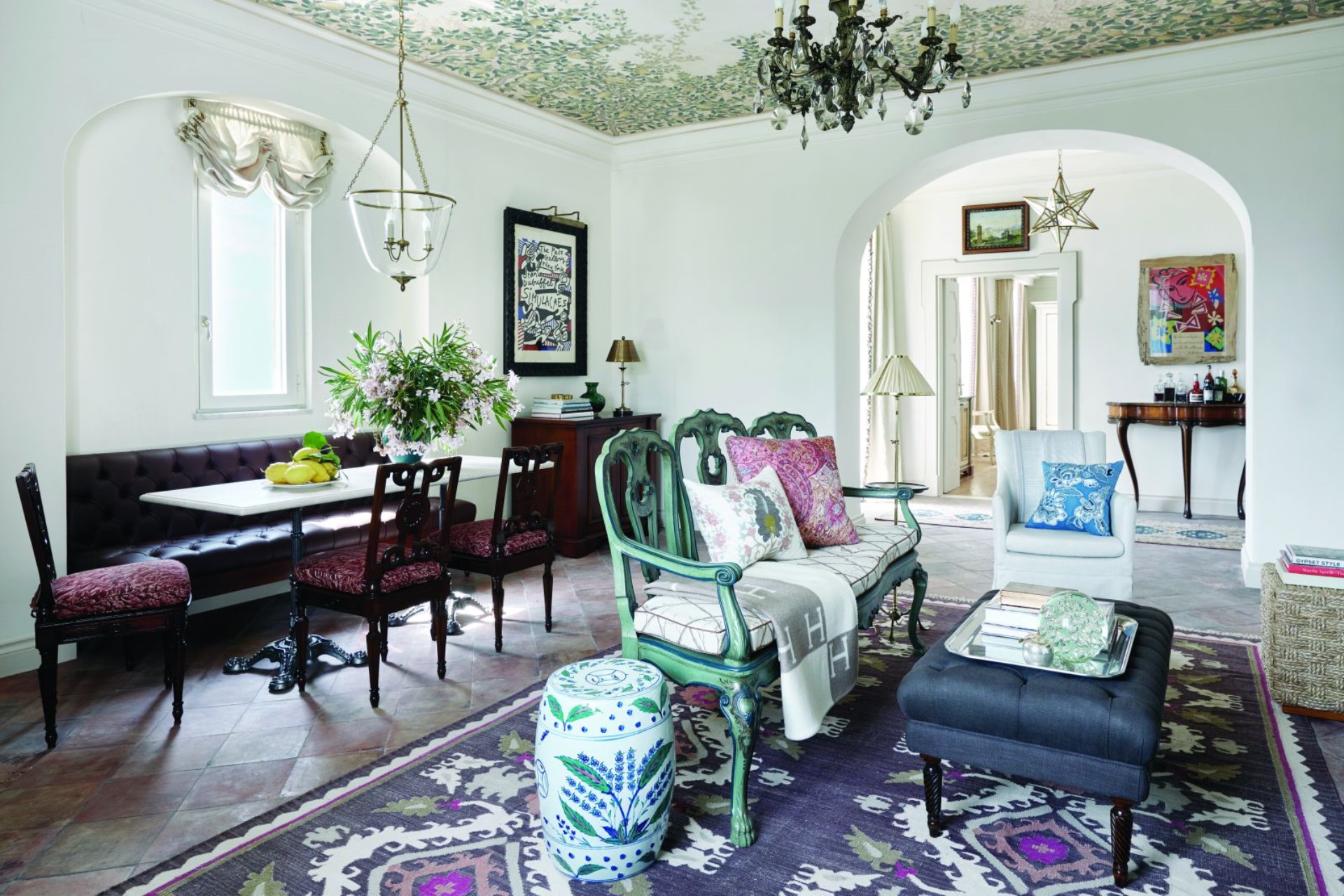 Every room in the villa boasts hand-painted ceilings in custom designs inspired by the region, and vintage floor lamps and light fittings have been added to enhance the traditional feel of the property.
