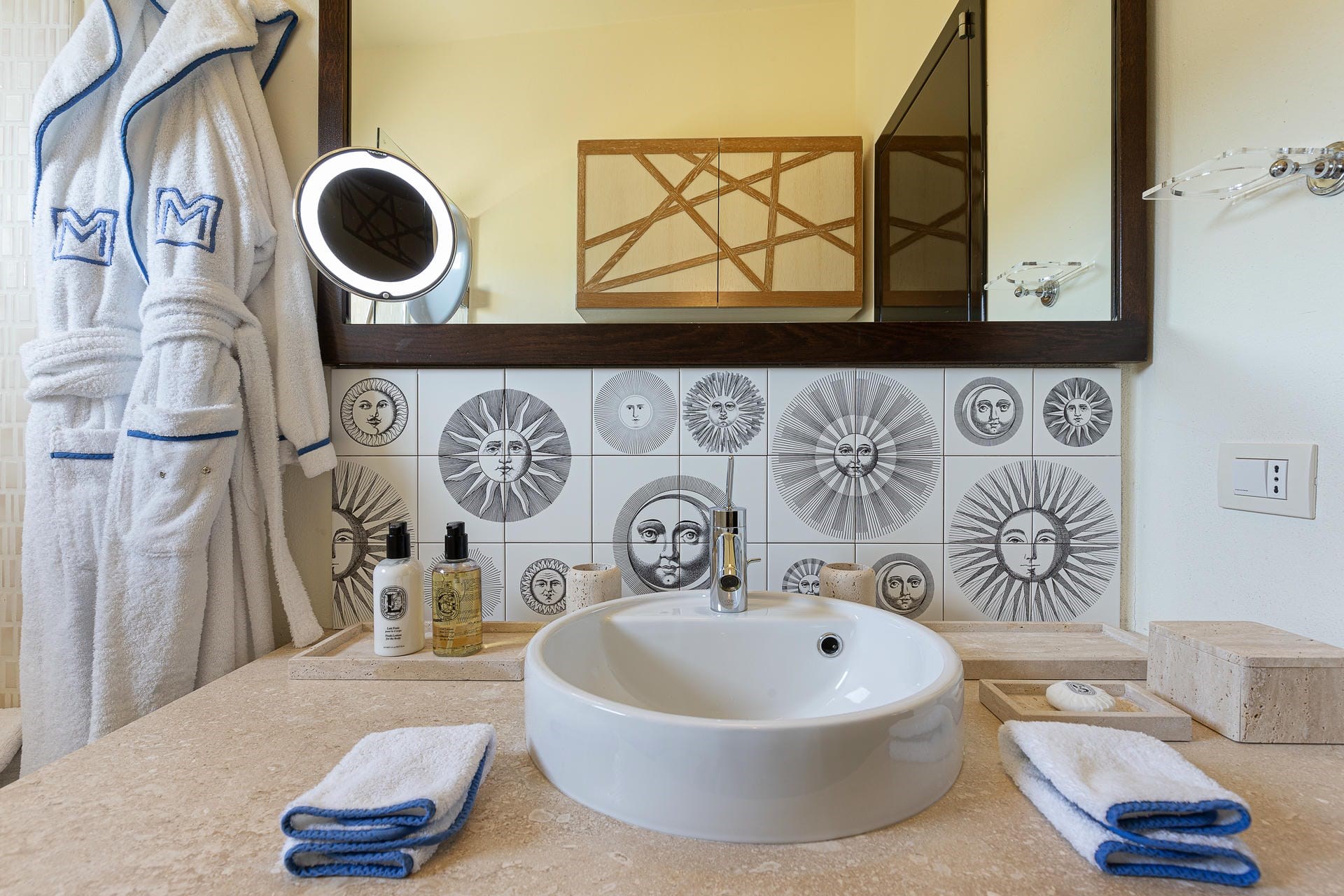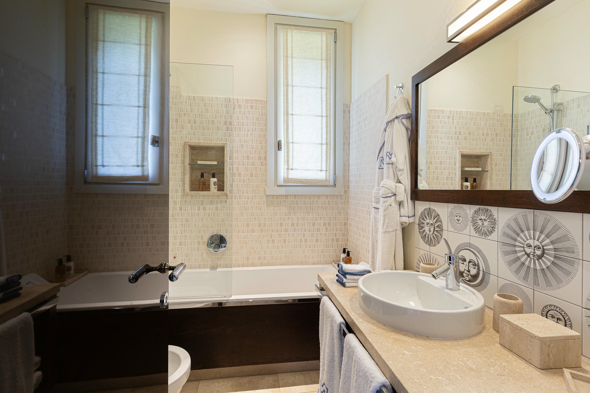 The bright interiors are warm and inviting, whilst offering an open, airy feel due to the natural light flooding in from the patio doors. There are plenty of seating areas to choose from depending on your mood, enjoying the views or the water fountain. Guests can make the most of a fully-equipped kitchen, hosting opulent dinner parties and enjoying authentic Italian cuisine.