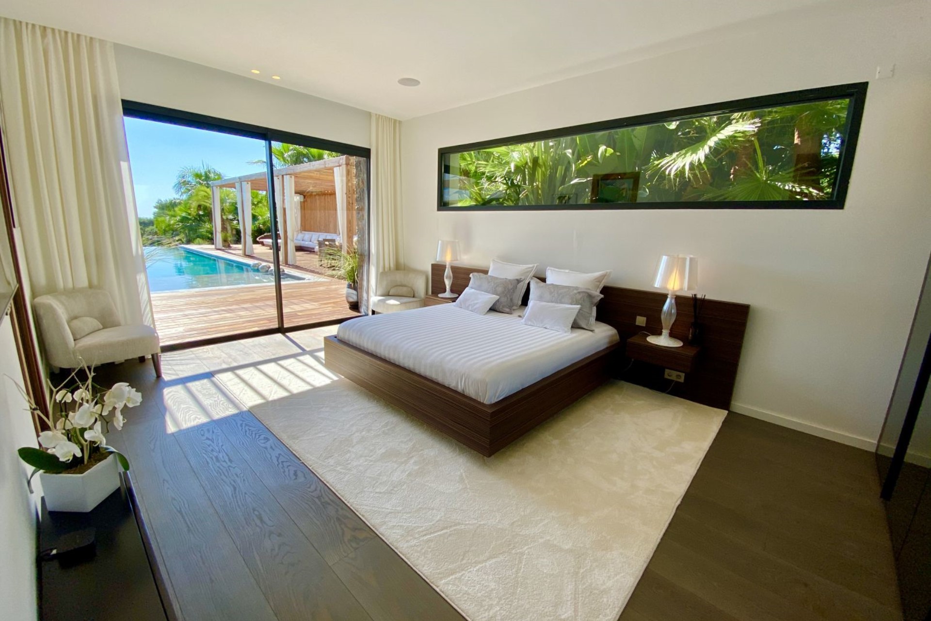 Only the finest materials have been used in the villa’s construction, including Burma teak for the exteriors, along with natural stone facades, marble in the bathrooms, and solid oak and French walnut floors throughout. Floor-to-ceiling windows and glass doors seamlessly blend the outdoors with the in, where guests have over 700 square metres of living space to enjoy.