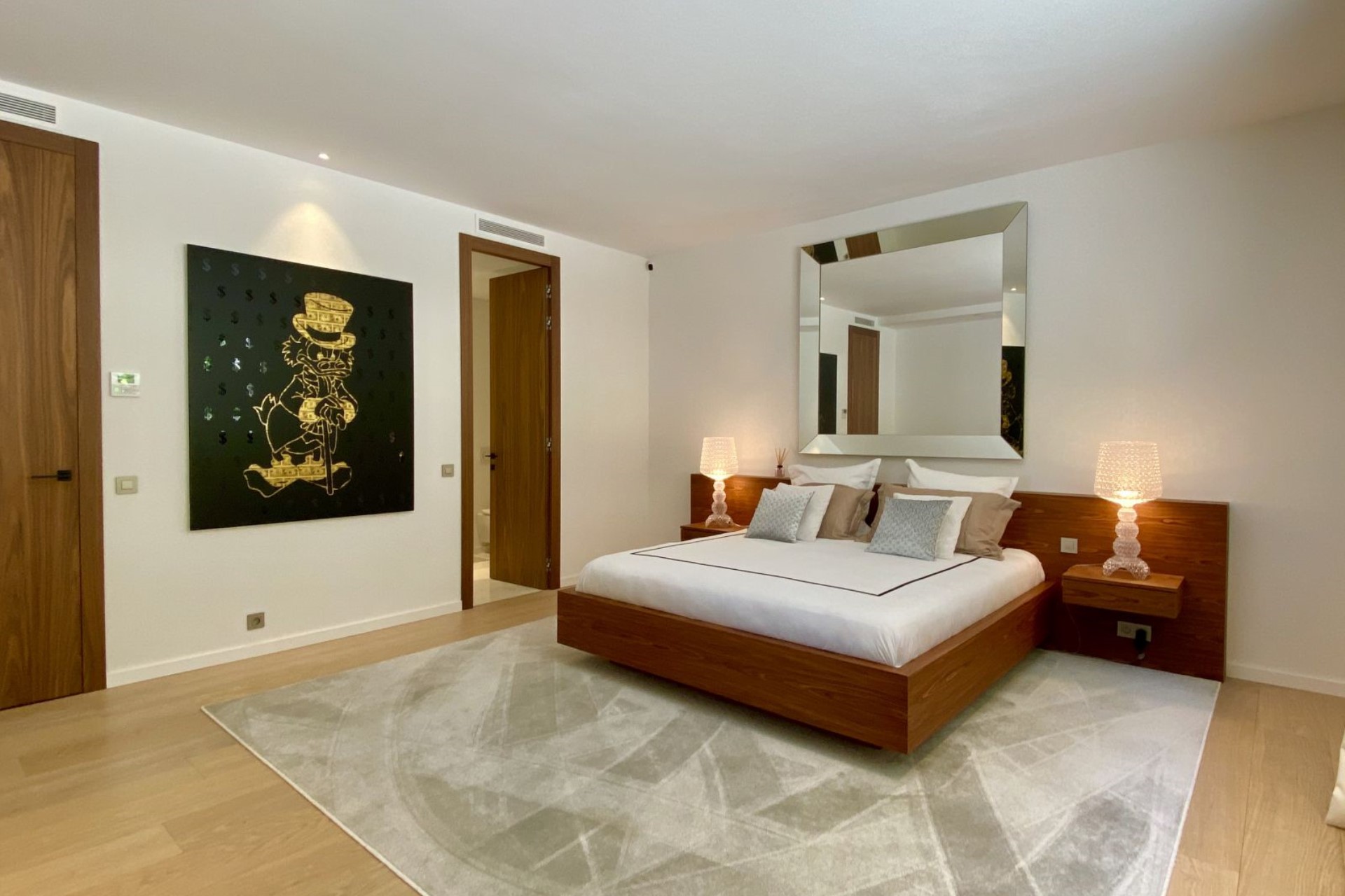 Master Suite – king-size bed, walk-in wardrobe, en-suite bathroom with bathtub & separate double shower, and shared balcony