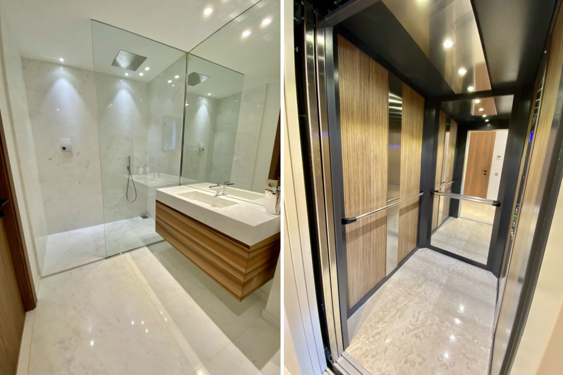 Five beautifully-appointed bedrooms are spread across the villa’s two top floors, with a lift offering easy access to the upstairs. Each bedroom boasts a king-size bed and en-suite facilities, several with luxurious bathtubs. Two of the first-floor bedrooms also boast a shared, wrap-around balcony with panoramic views.