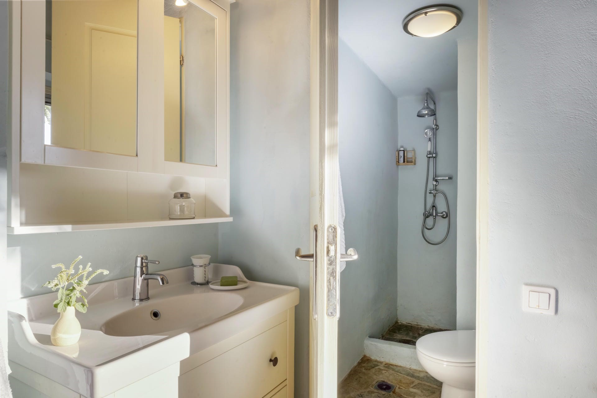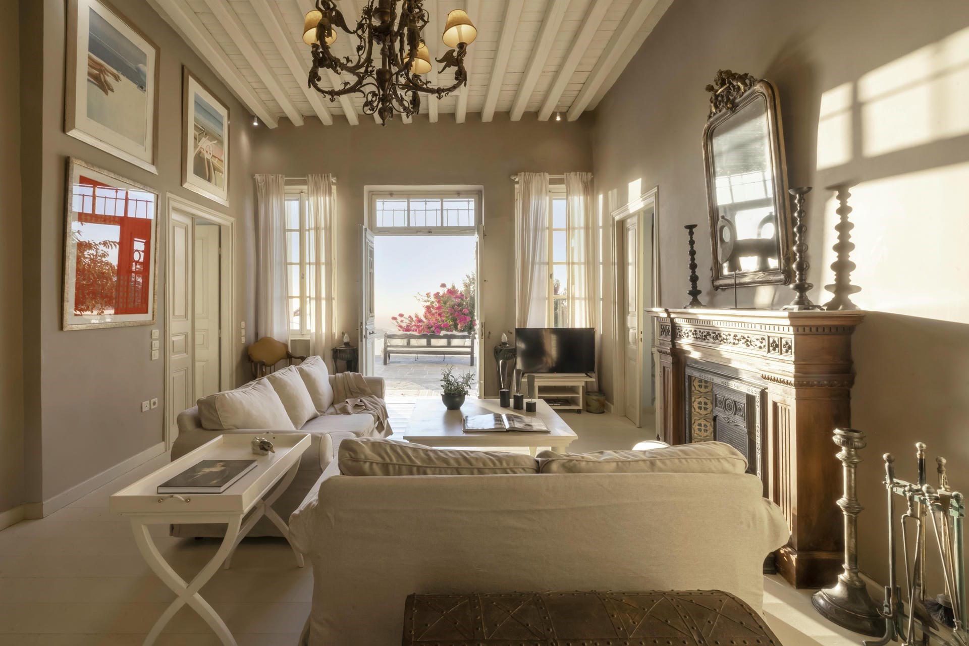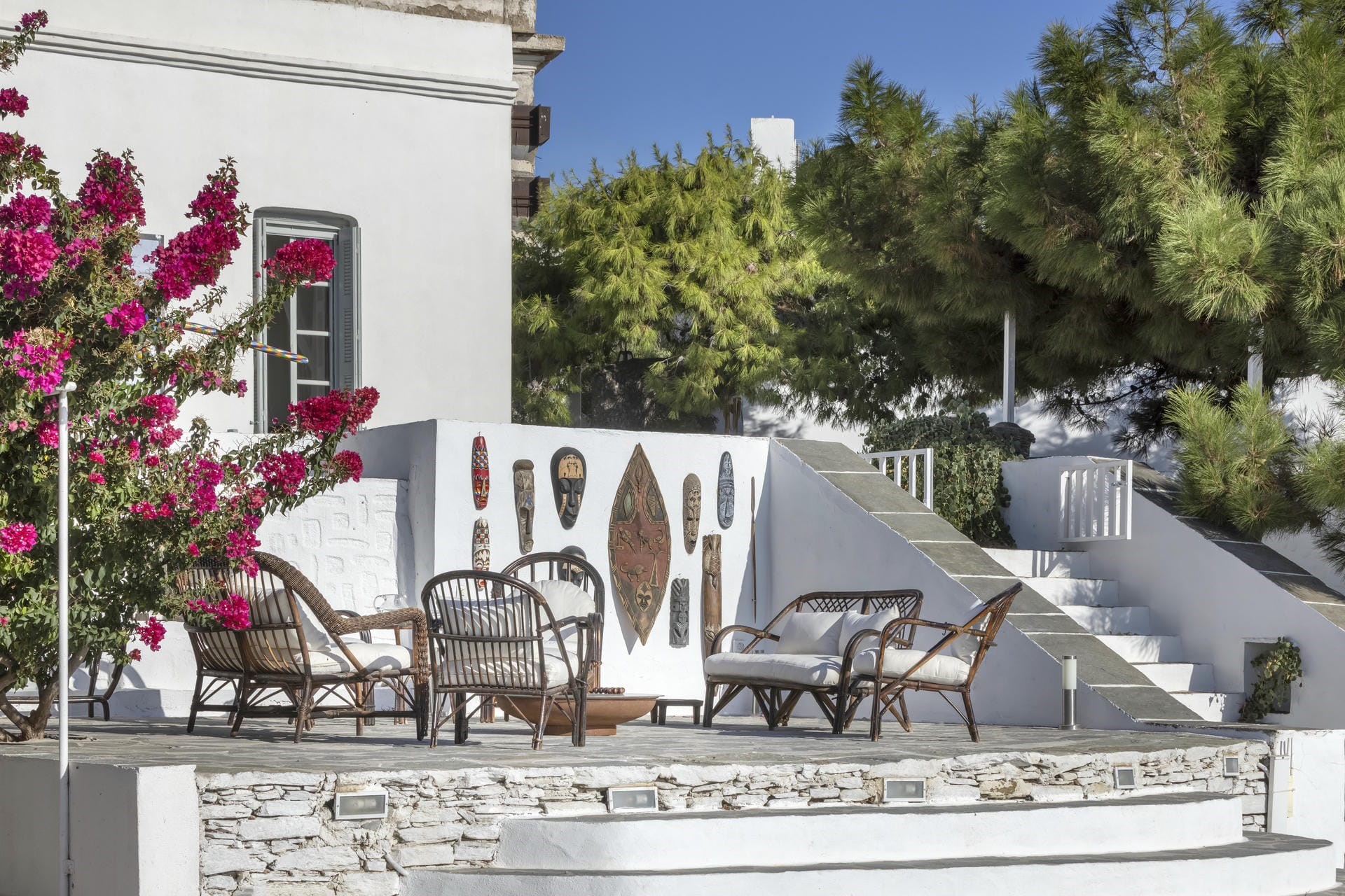 The picture-perfect scenes are complemented by the lush gardens with wild flowers and aromatic herbs that flank the terraces surrounding the house. Guests entering this oasis will immediately feel encouraged to unwind and enjoy living the Greek summer life.