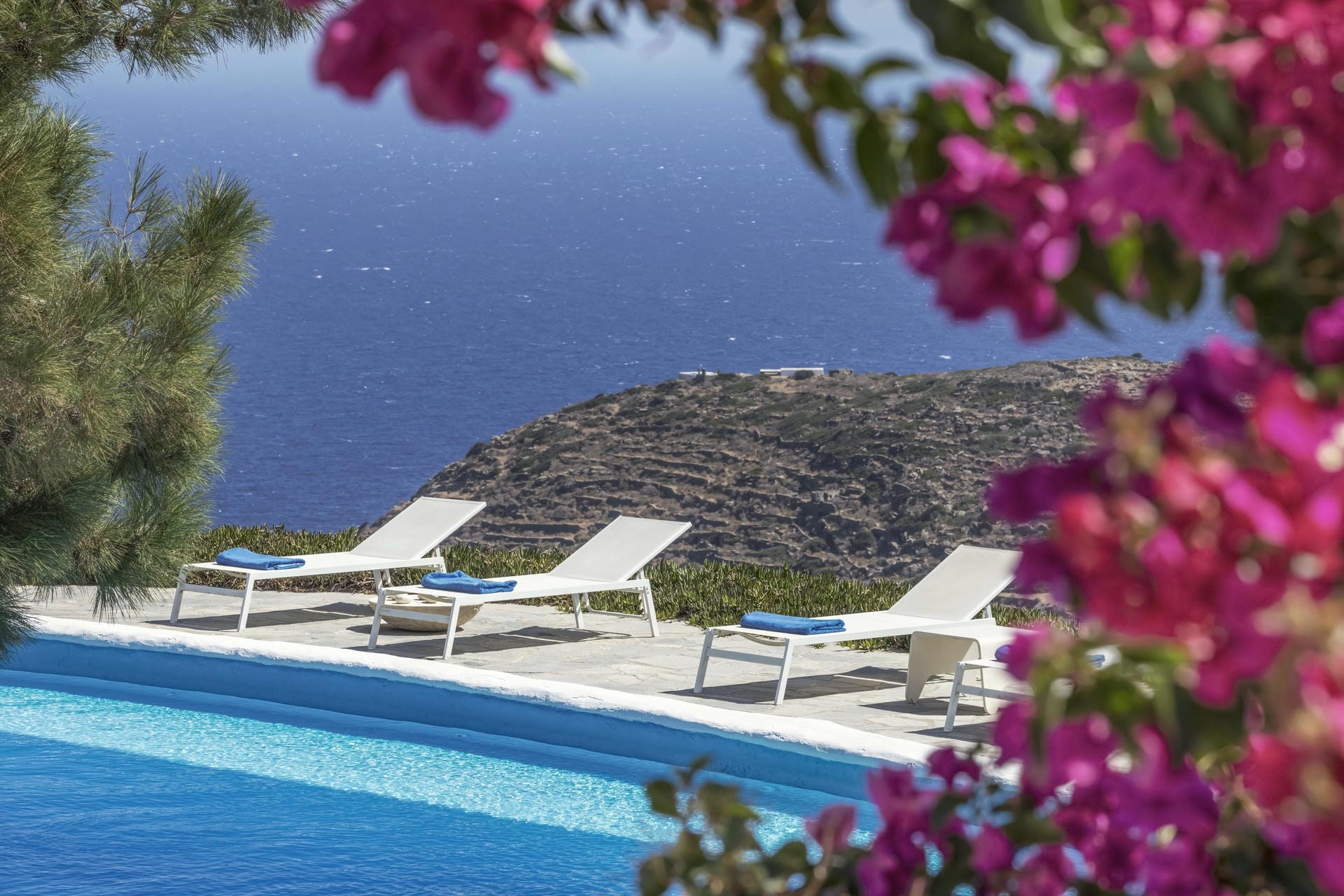 Villa Monet is located on a hillside overlooking the Aegean Sea, on the Greek island of Sifnos.