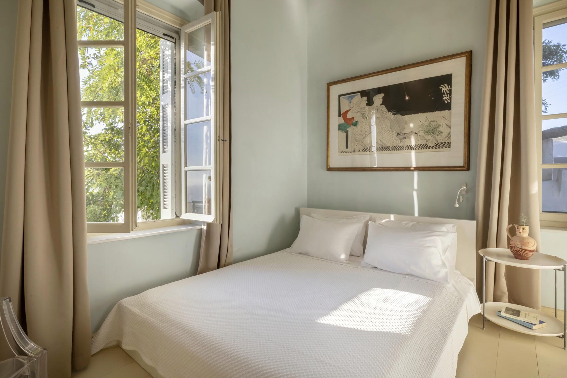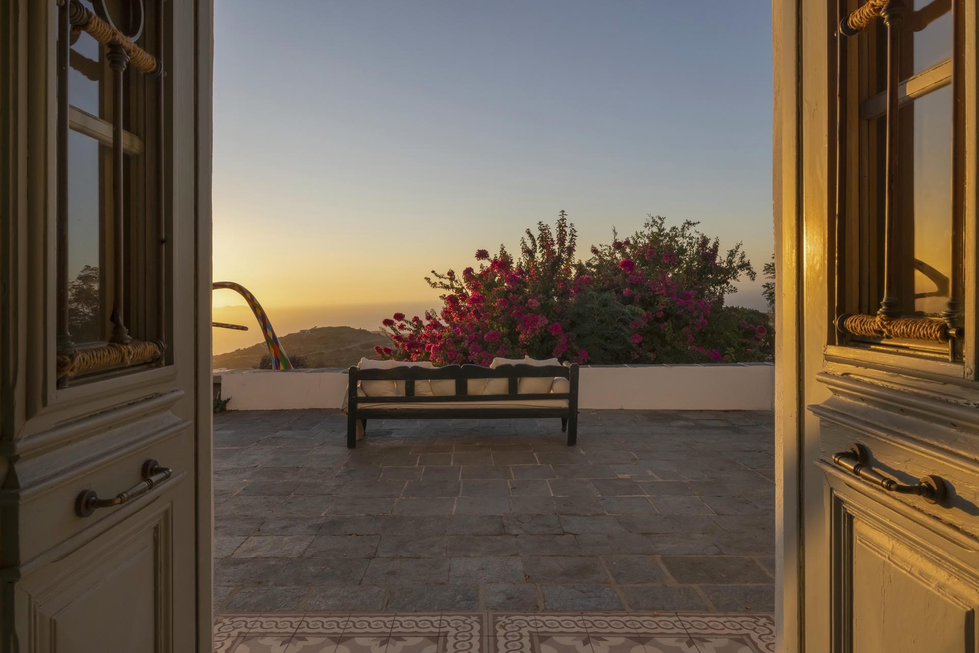 The picture-perfect scenes are complemented by the lush gardens with wild flowers and aromatic herbs that flank the terraces surrounding the house. Guests entering this oasis will immediately feel encouraged to unwind and enjoy living the Greek summer life.
