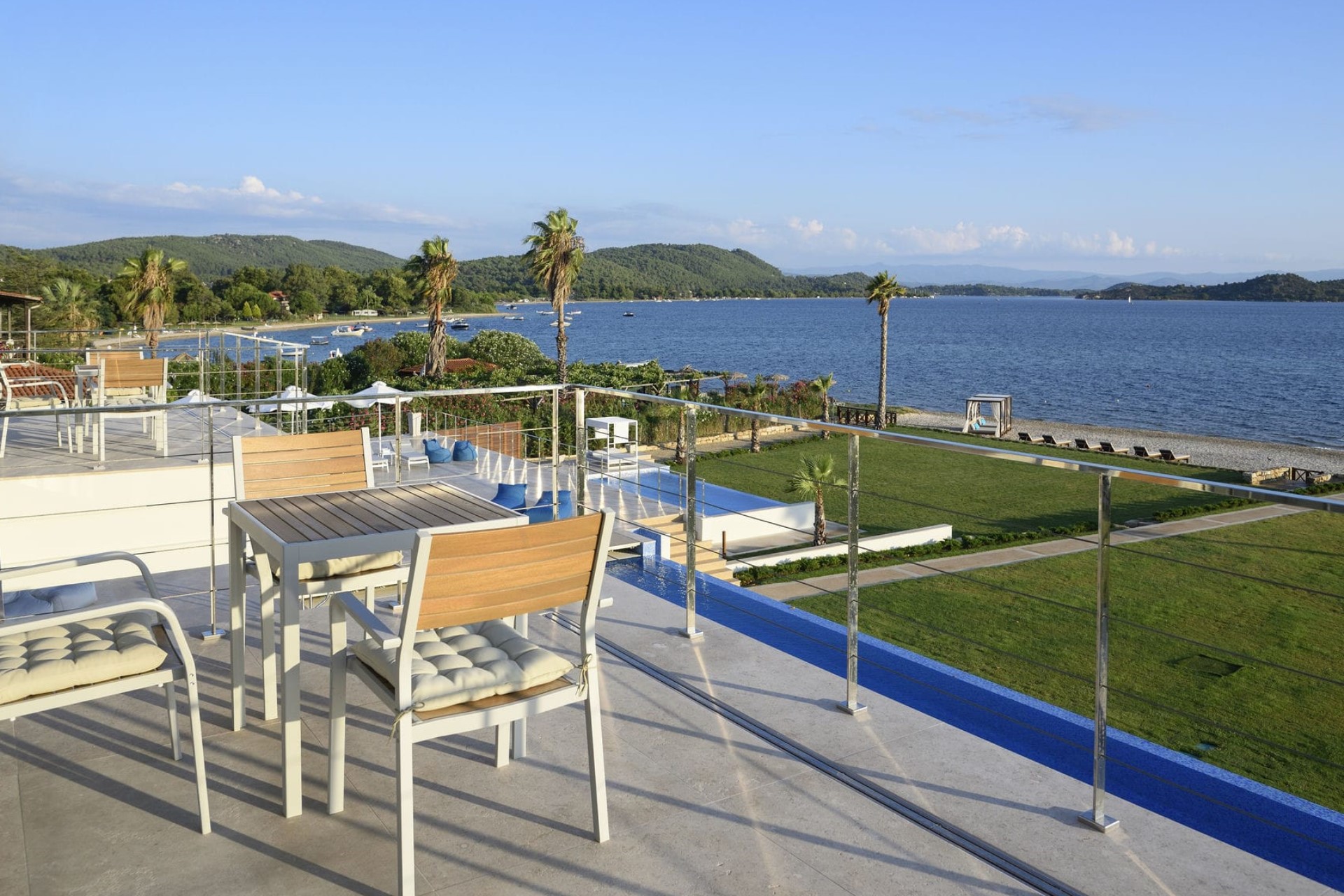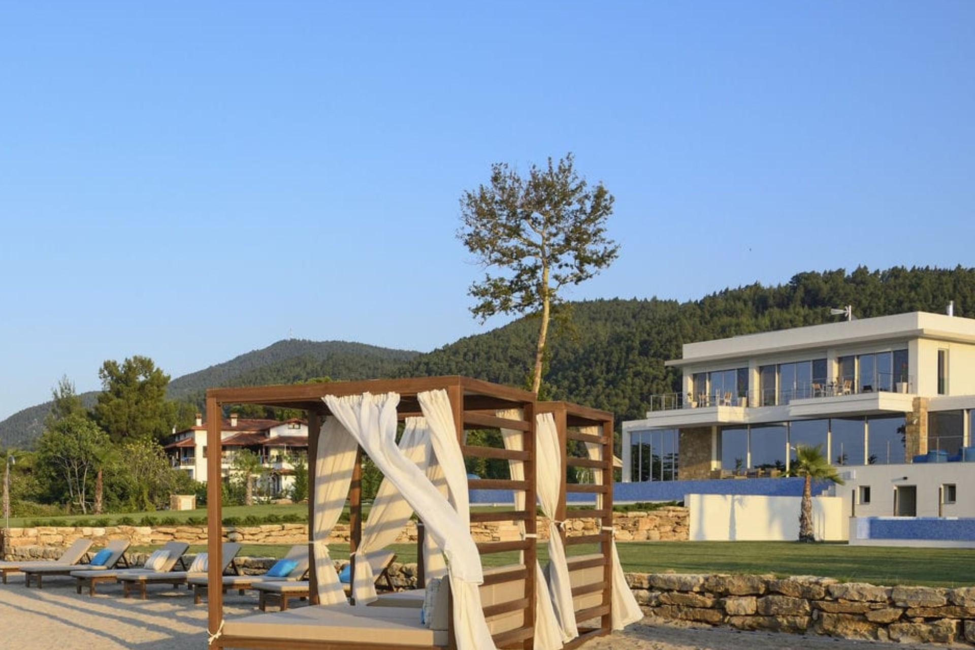Villa Natalia is located right on Vourvourou Beach in Greece’s beautiful Halkidiki region.