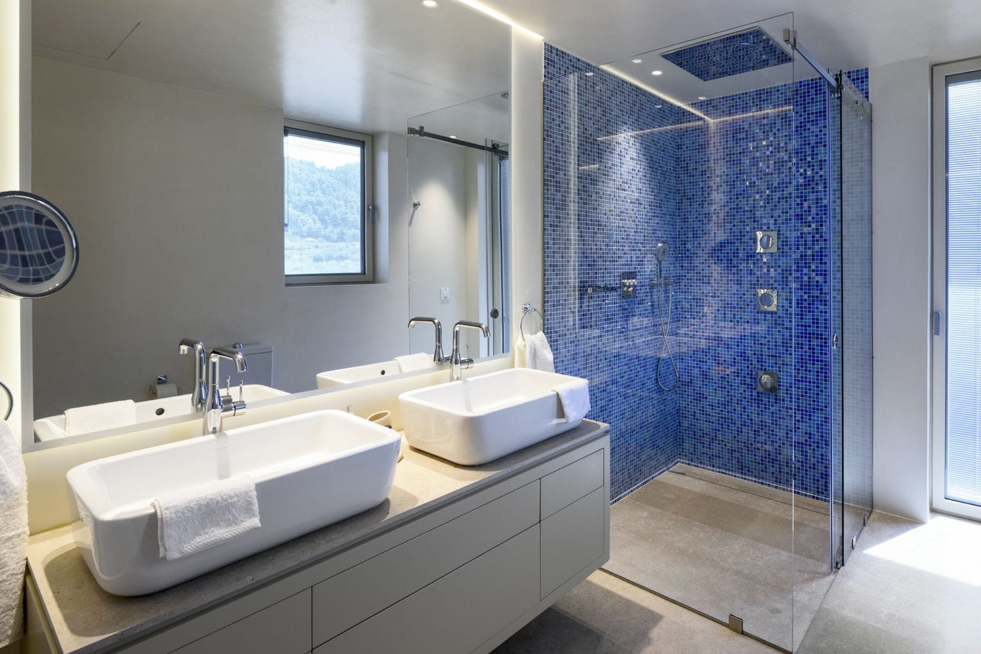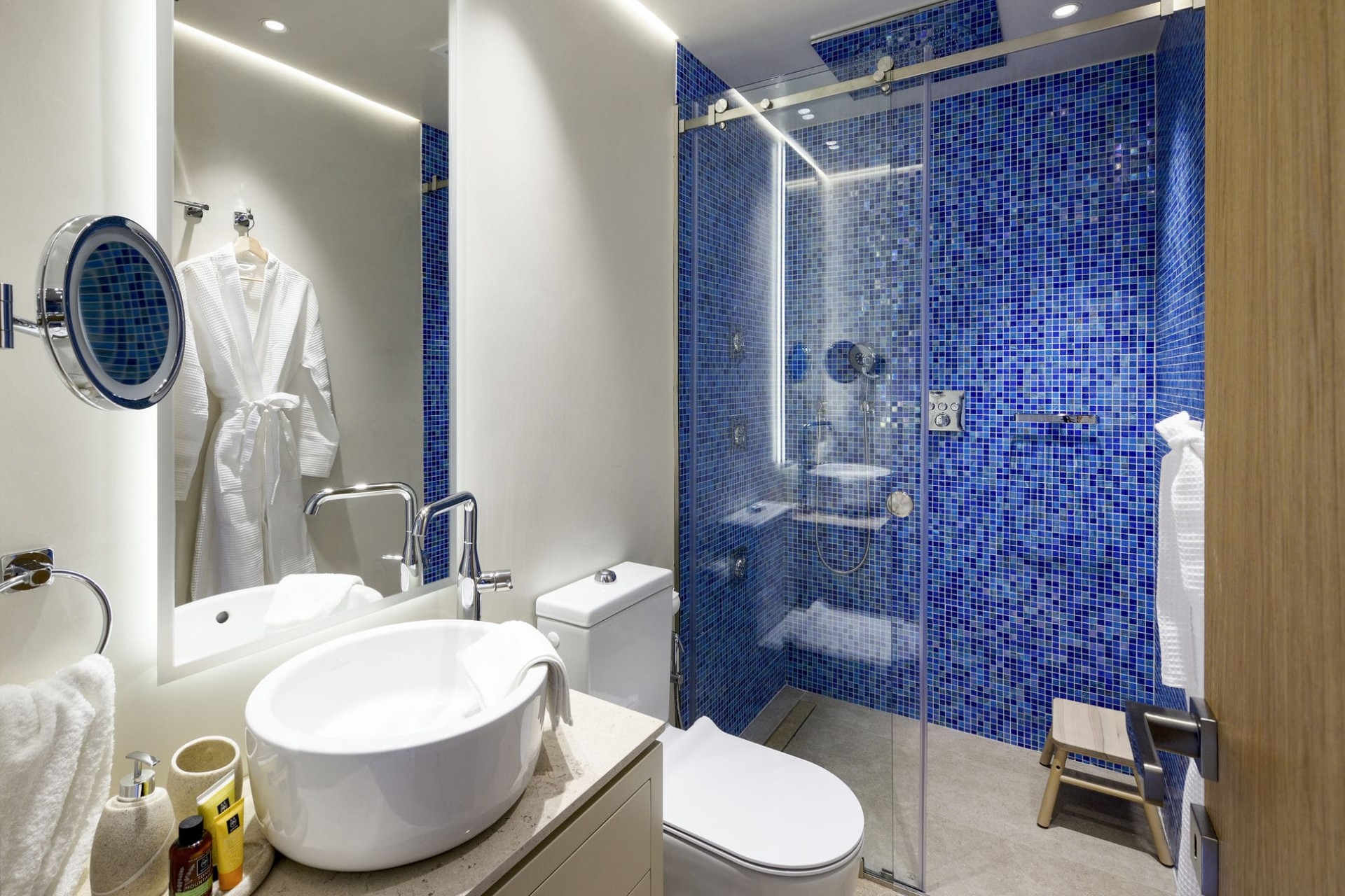 Set over three floors, the villa offers stunning design, modern technology systems, and luxury amenities throughout. A smart home system allows guests complete control over their environment and comfort, from temperature to lighting to entertainment systems.