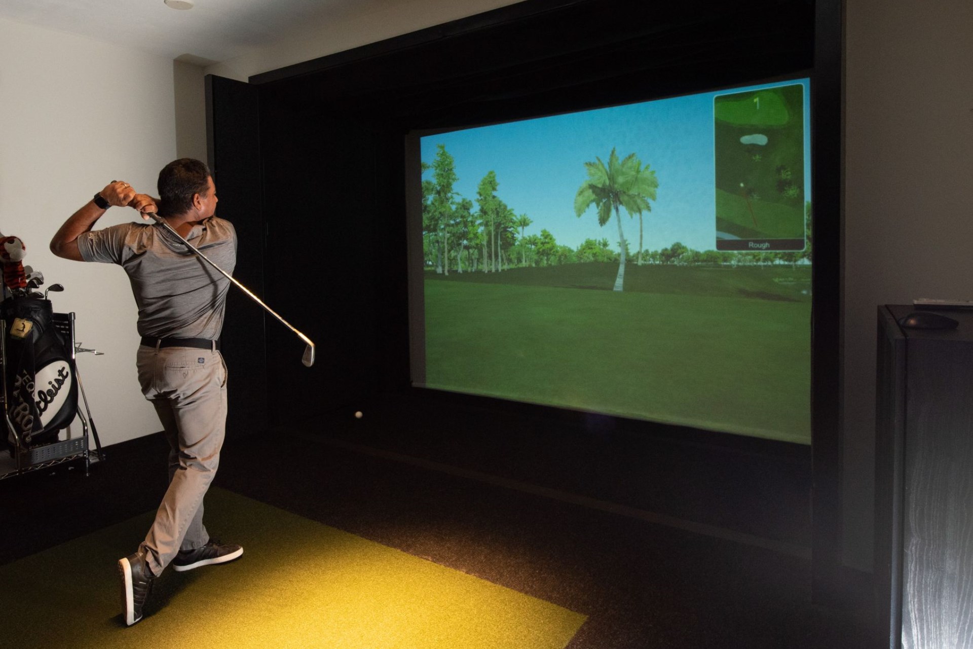Indoors, there are plenty of spaces to unwind or socialise. These include a spacious living room and cosy TV room in the main house, plus a large home cinema room – complete with recliner seats, a 120” screen, surround sound system, and X-box console – in the guest house. Also located in the guest house is the gym and the golf simulator room, where enthusiasts can practise their game in at hundreds of golf courses from around the world.