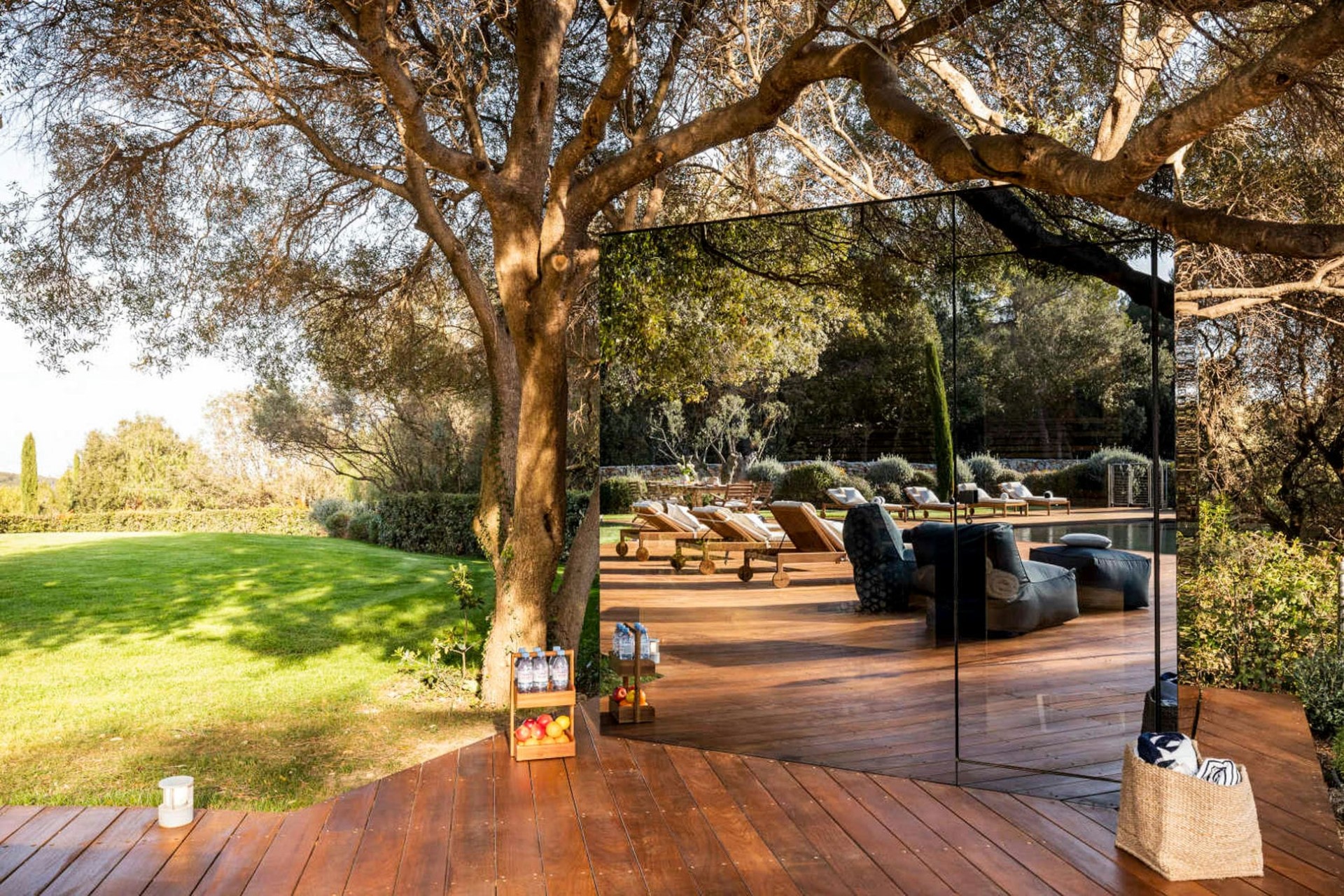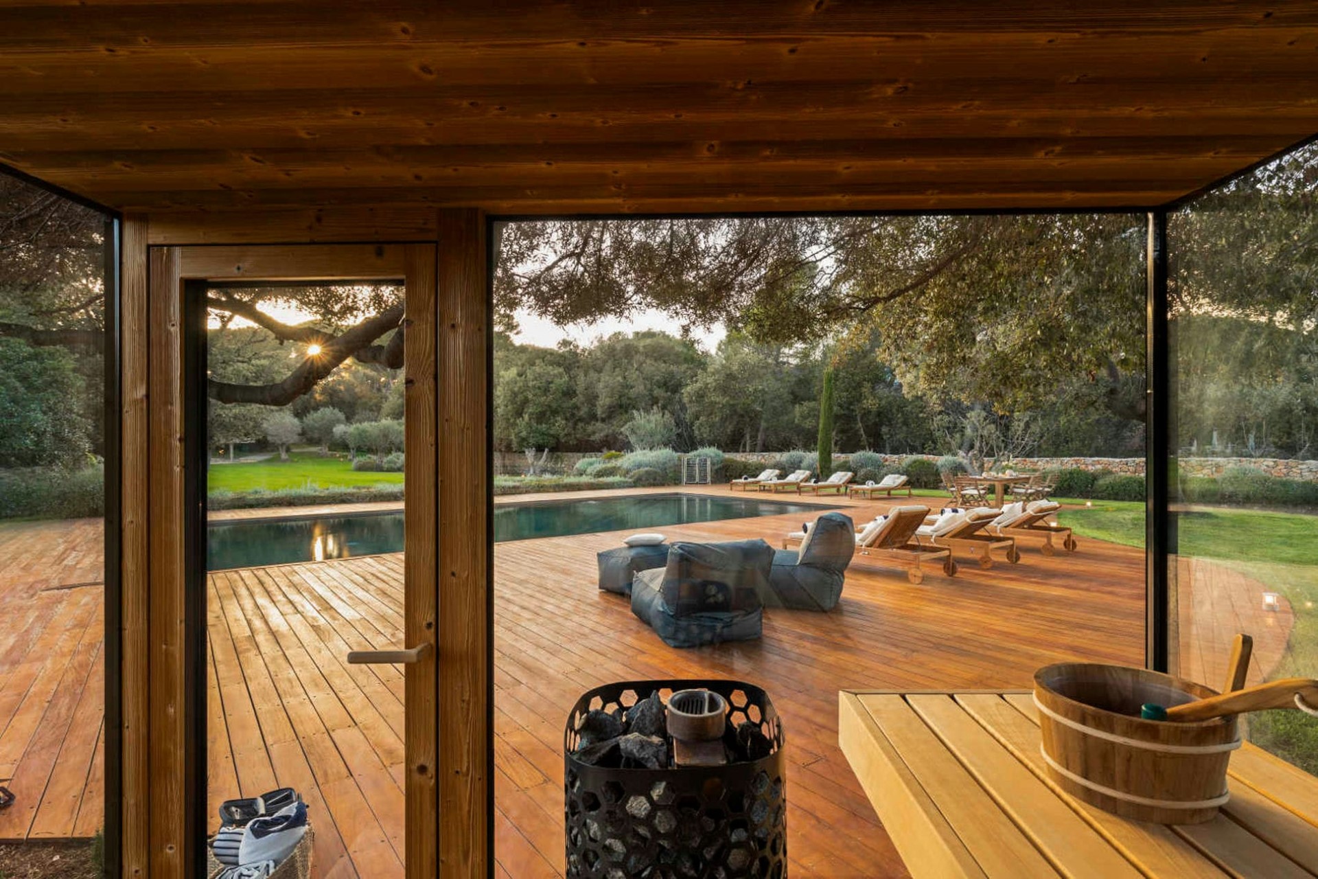 Perched atop a hill and spanning 45,000 square metres, the estate is a haven for outdoor living. Guests can enjoy a dip in the shimmering pool, bask in the Mediterranean sun on a poolside lounger, or experience the ultimate relaxation with the unique glass sauna.