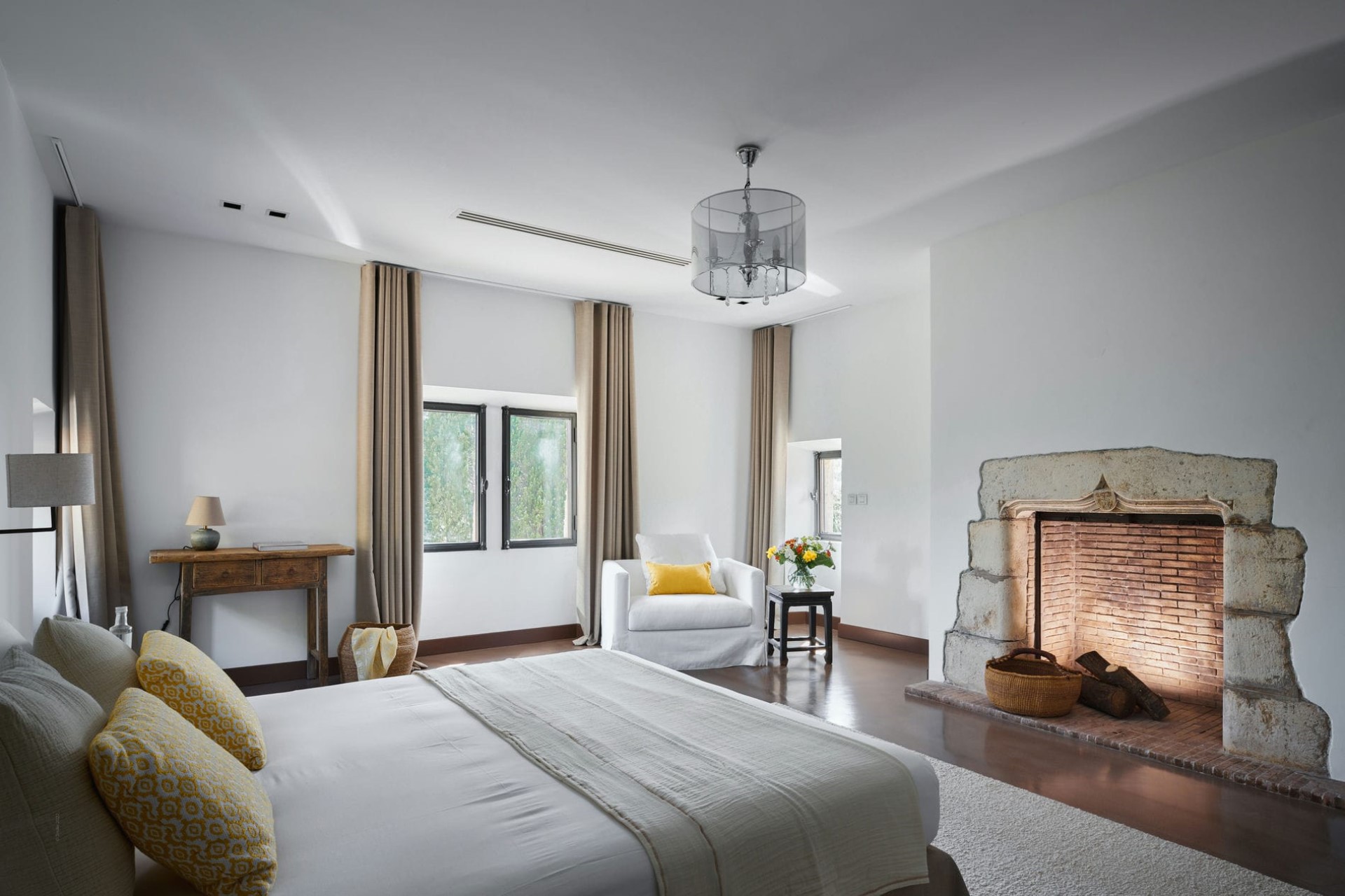 The six spacious suites, each individually designed with a minimalist aesthetic, feature bespoke furnishings and state-of-the-art amenities. Up to 12 guests can comfortably be accommodated in the rooms, which all have their own unique charms, from the Presidential Suite with its private lounge, cosy fireplace, and original abbey windows to the Master Suite with its private terrace overlooking the tranquil courtyard.