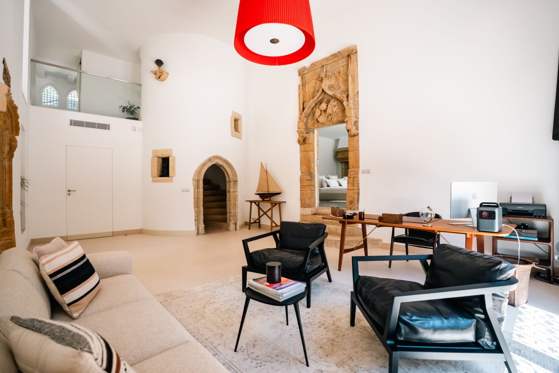 The villa interiors seamlessly blend the authenticity of its medieval origins with the sleek minimalism of contemporary design. Original abbey windows, soaring ceilings, and exposed stone walls offer a glimpse into the past, while the carefully curated furnishings and modern amenities ensure an unparalleled level of comfort.