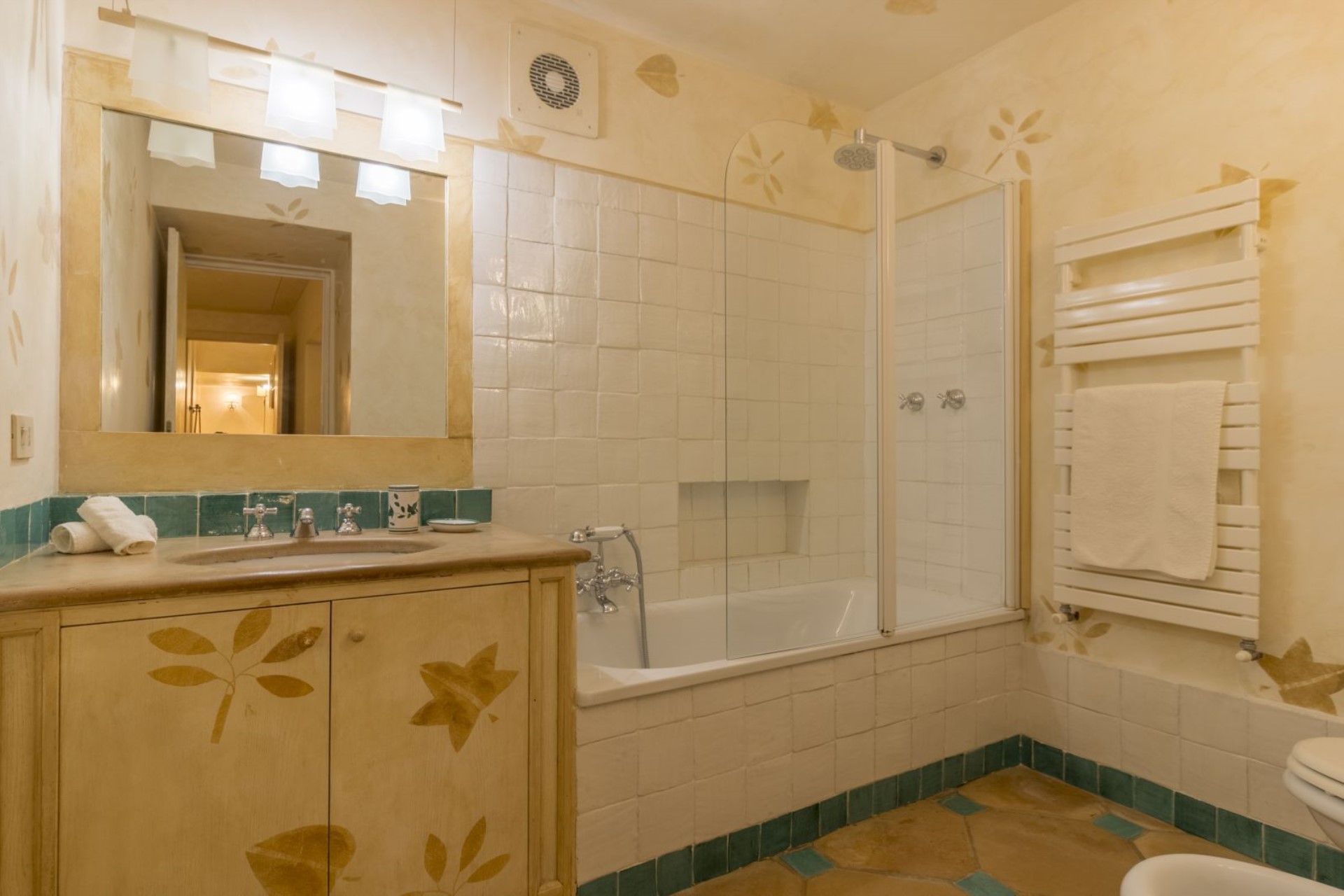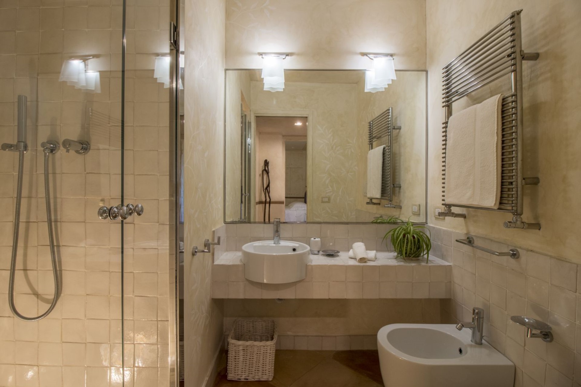 Flower Bedroom – double bed, en-suite bathroom with shower, and terrace access