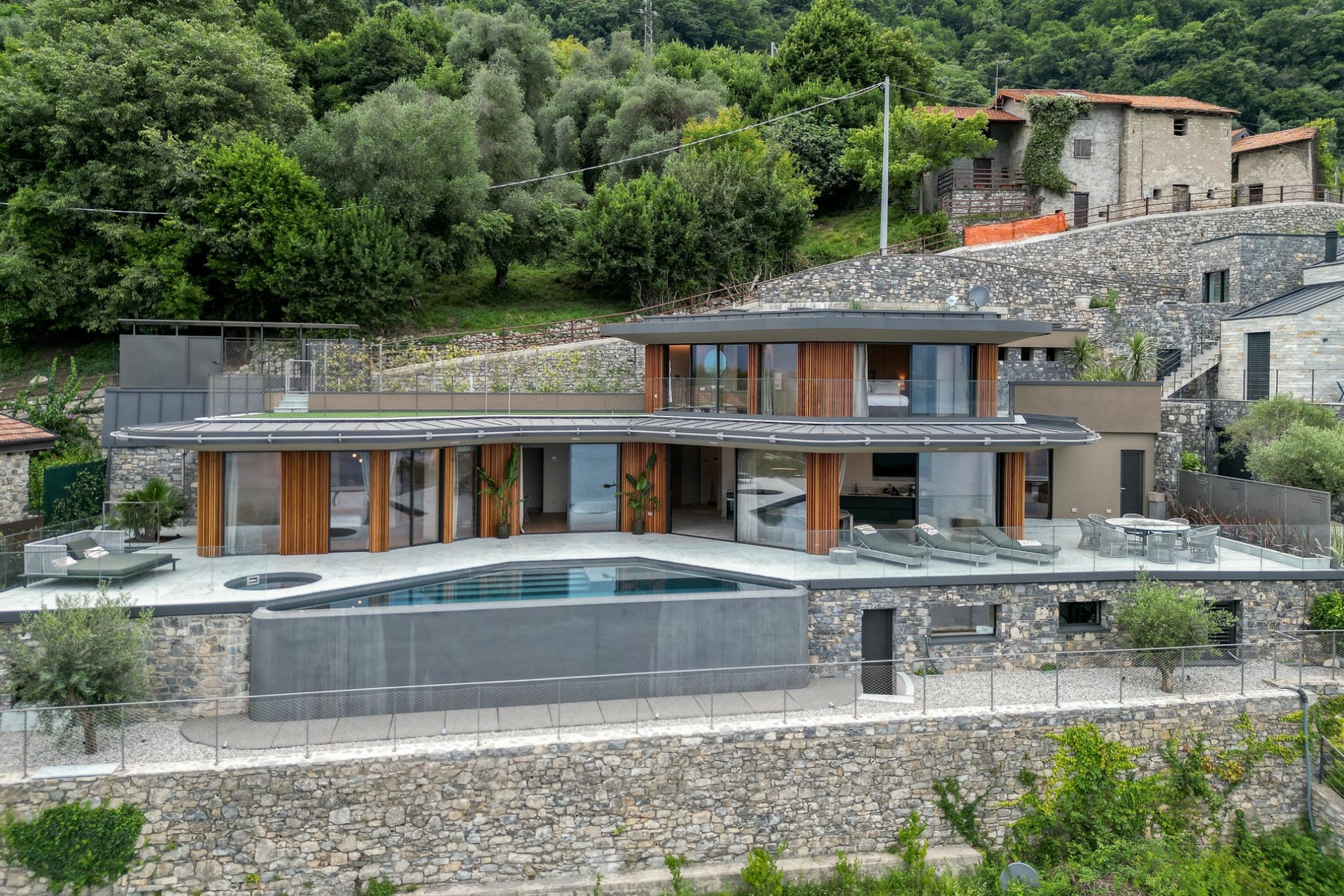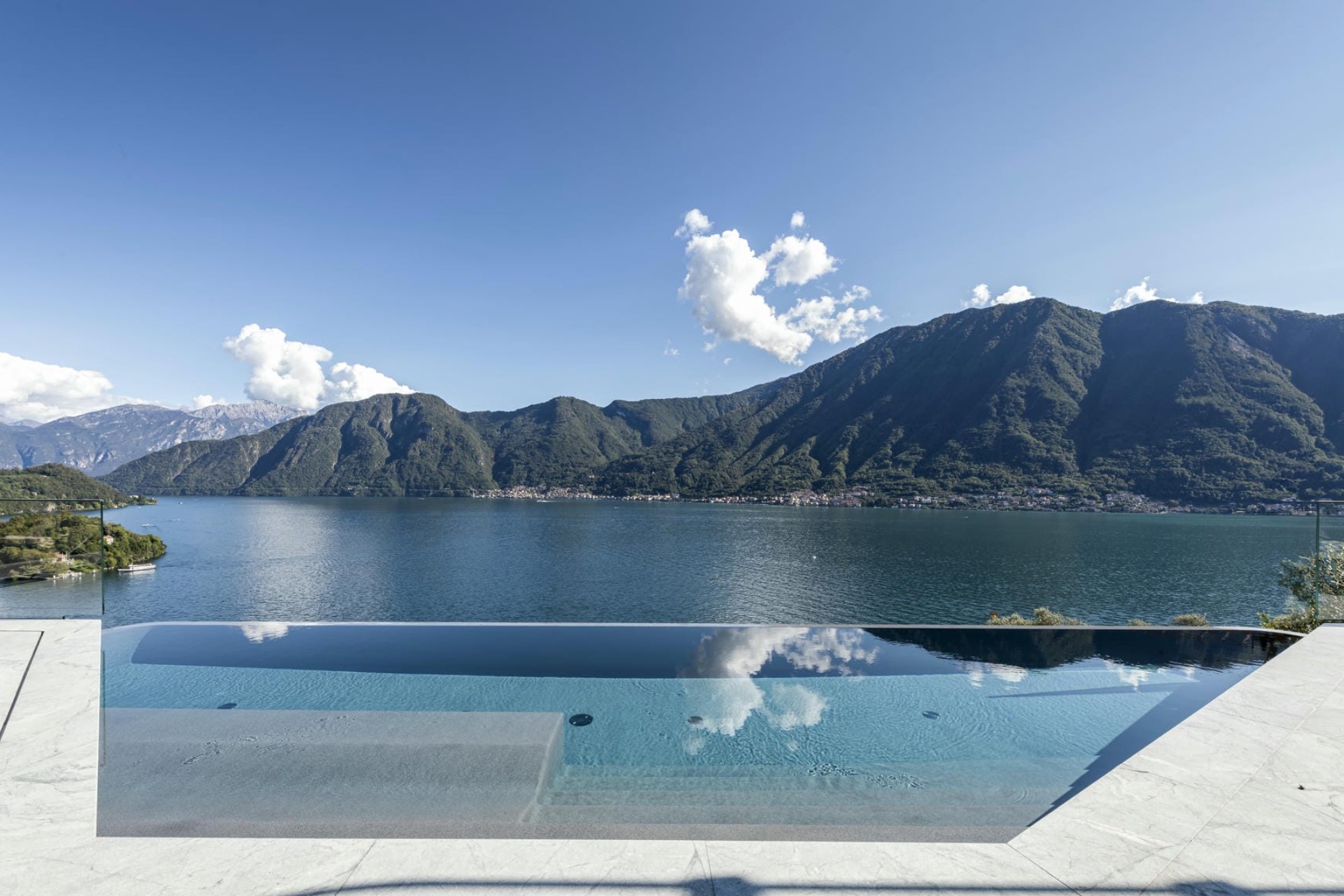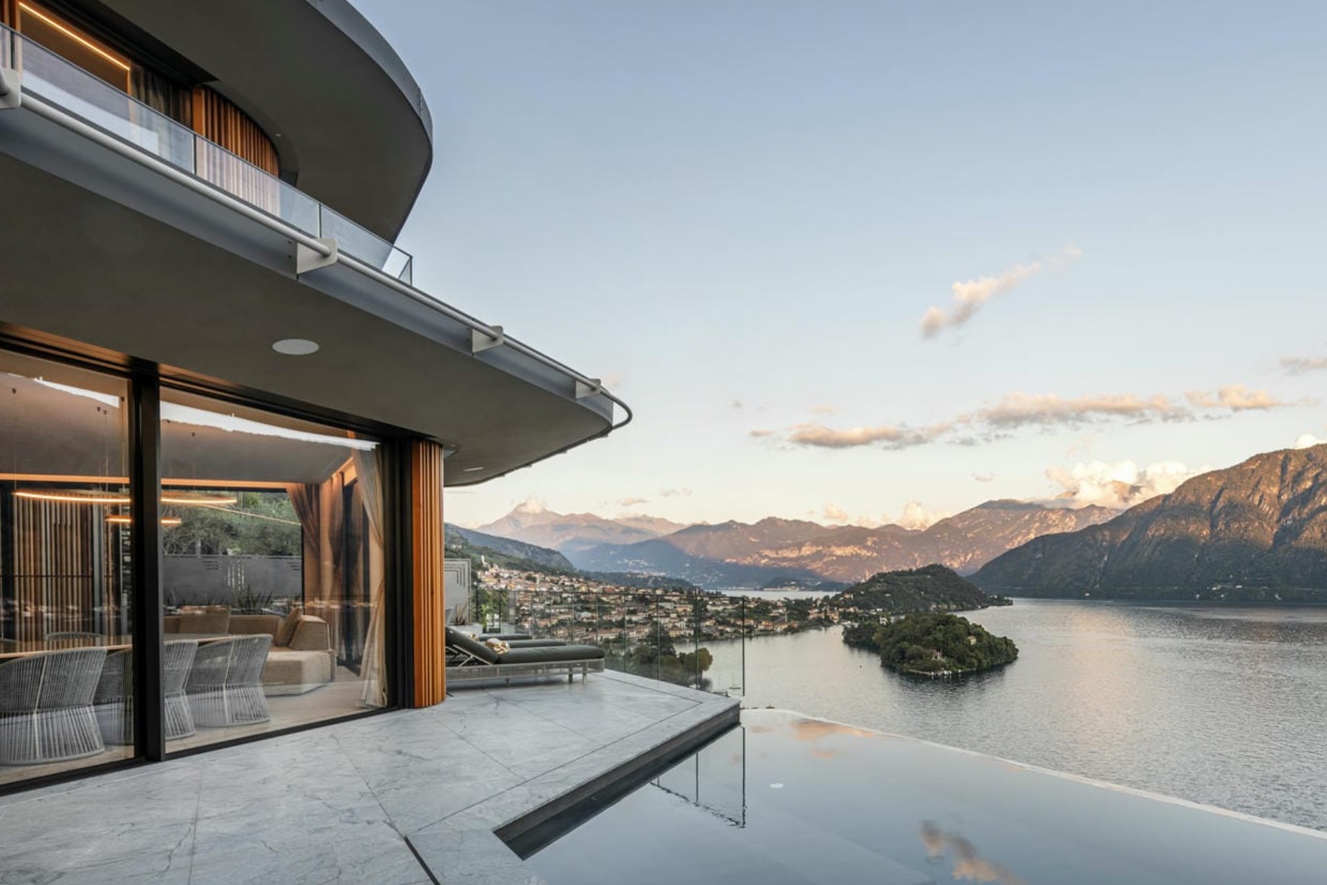 A modern villa with an infinity swimming pool overlooking Lake Como