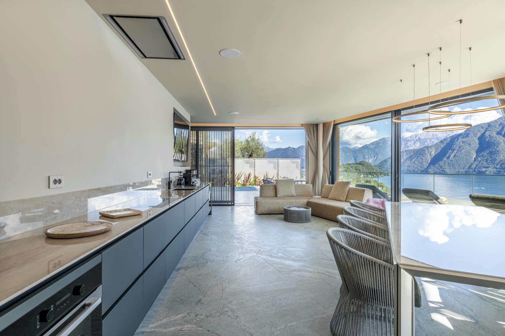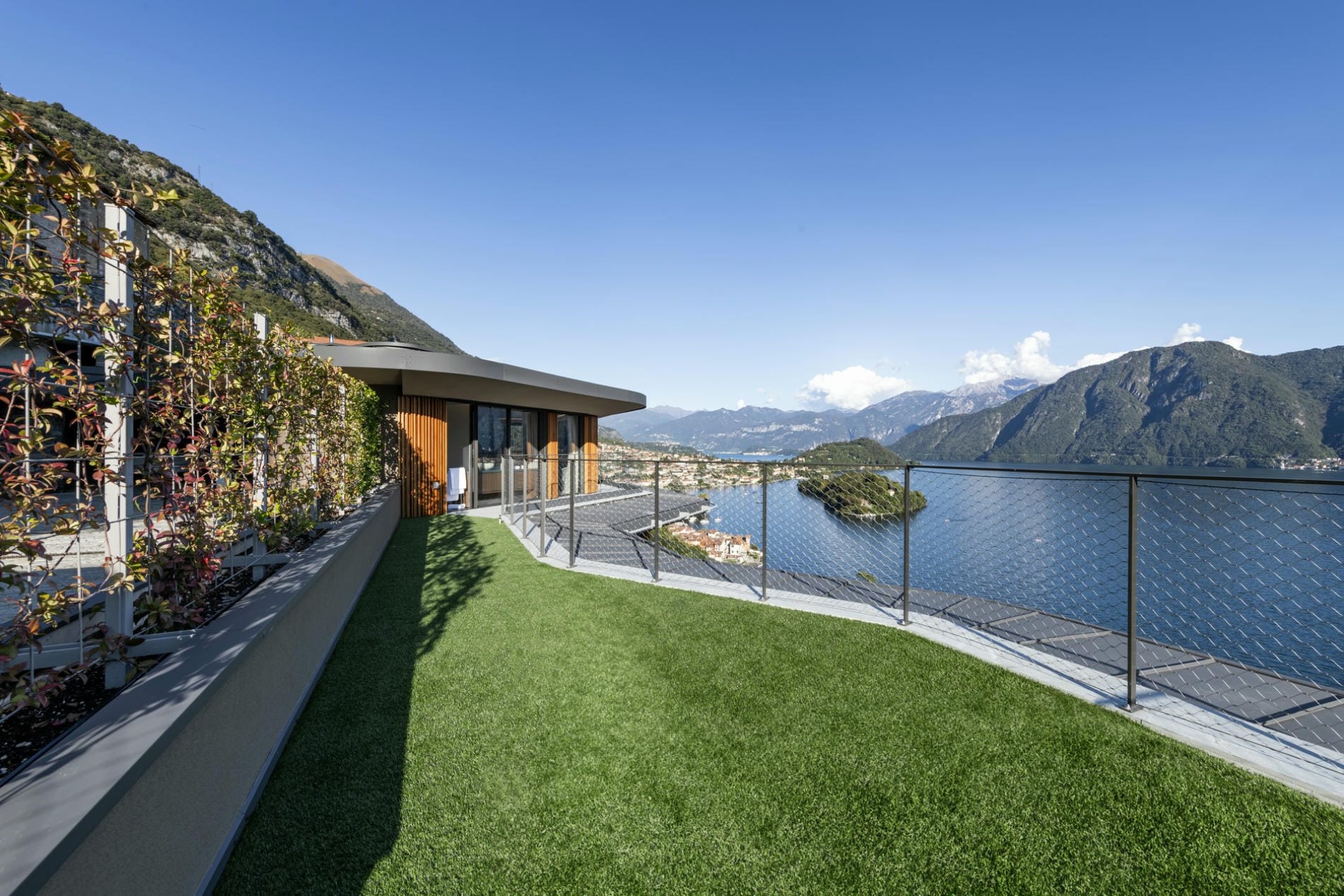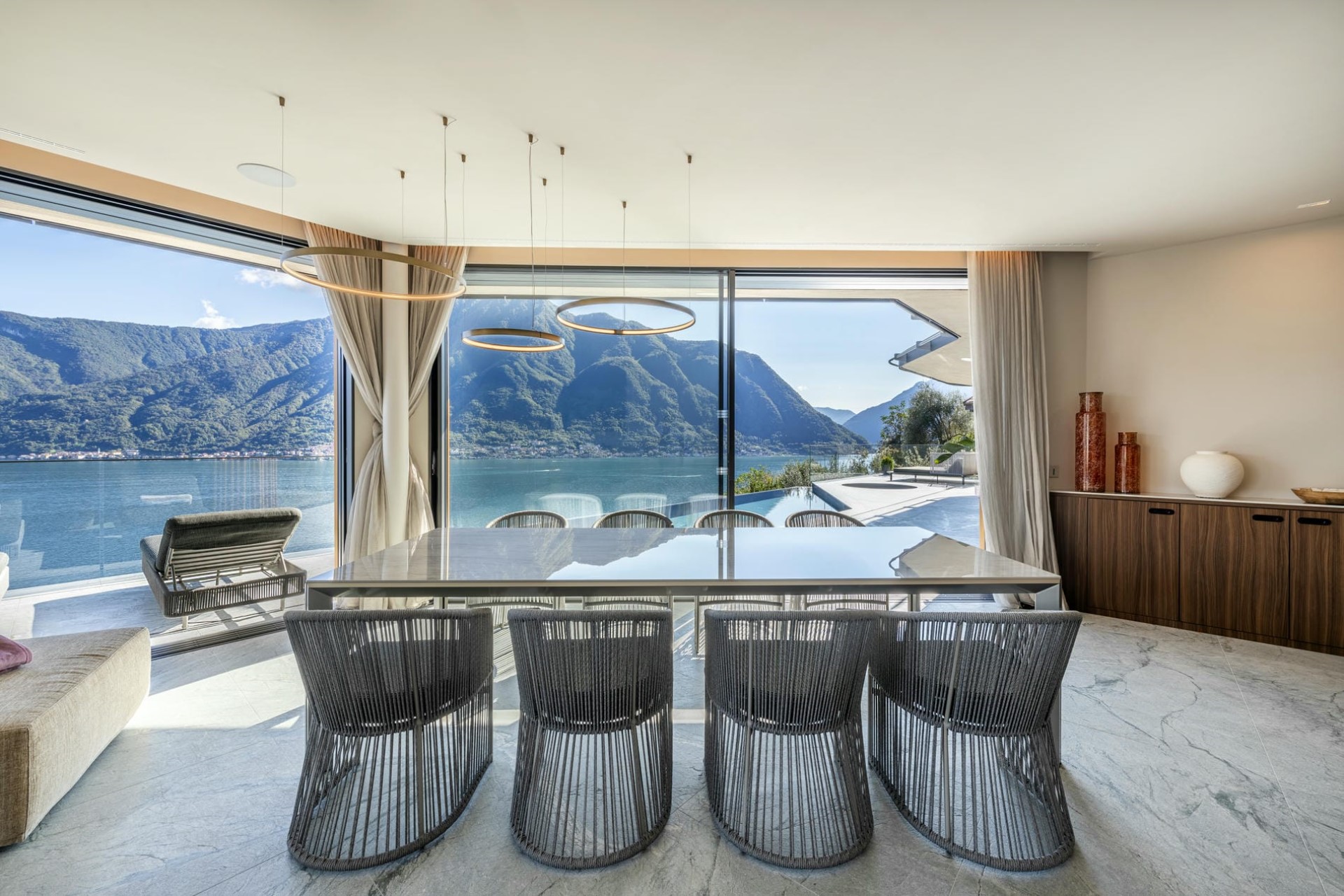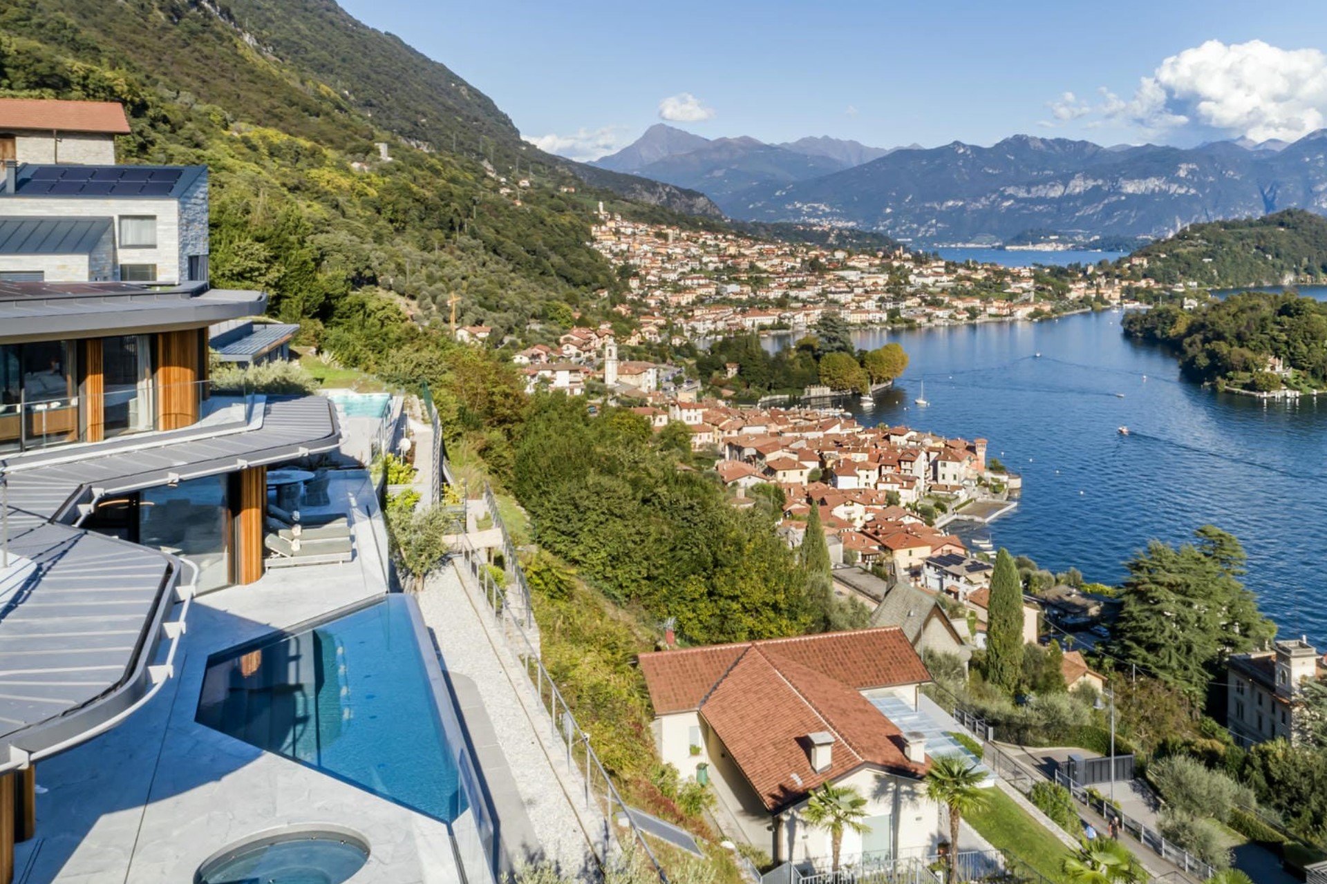 A modern villa with an infinity swimming pool overlooking Lake Como