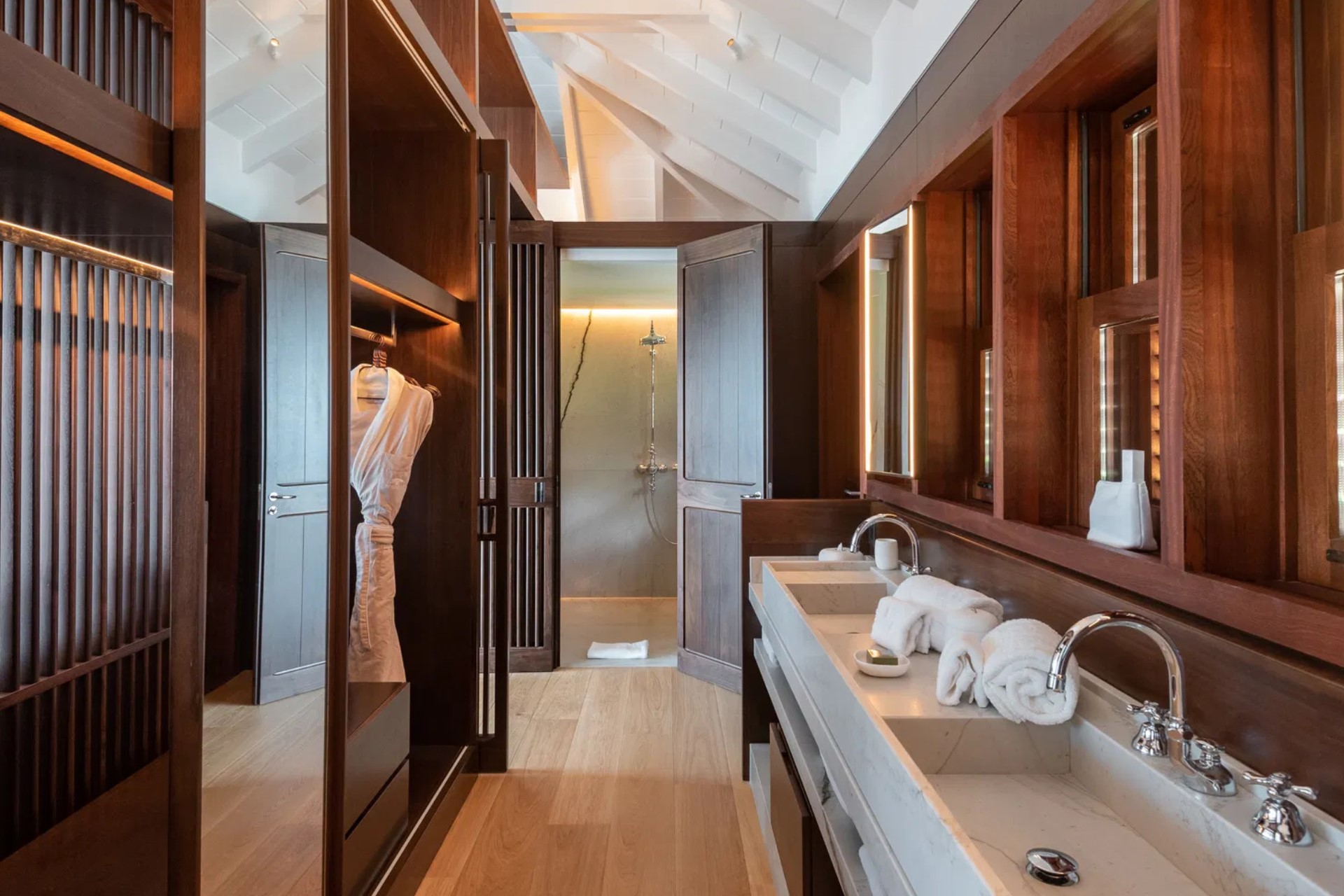 Bedroom 2 – king-size bed, en-suite bathroom with shower, direct terrace access
