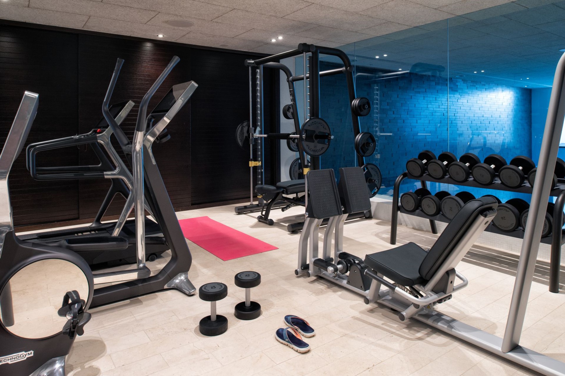 The villa goes beyond excellence in what it offers its guests – two swimming pools, a sauna, a Jacuzzi, a steam room and a private cinema. On the basement floor, there is a wine cellar and a fully-equipped gym with glass windows overlooking over the heated indoor pool and Jacuzzi.