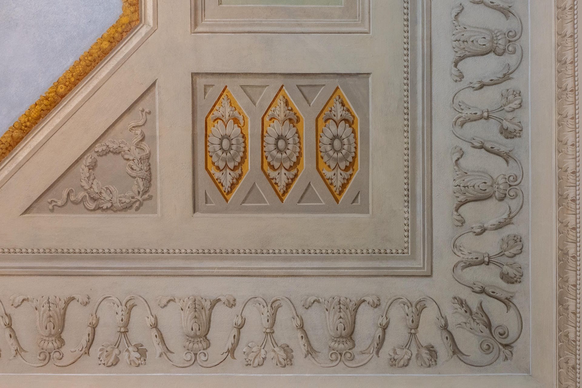 The interiors of the main villa are a fascinating blend of styles, with remnants of Renaissance, Baroque, and Neoclassical elements. Throughout the many living rooms, libraries, and dining rooms, high ceilings, polished marble floors, detailed wall frescoes, and opulent wooden furnishings create a sense of grandiosity. A professional kitchen provides space for the private chef to prepare delicious meals while guests relax in the bar, perhaps sampling a drop from the villa’s wine cellar.