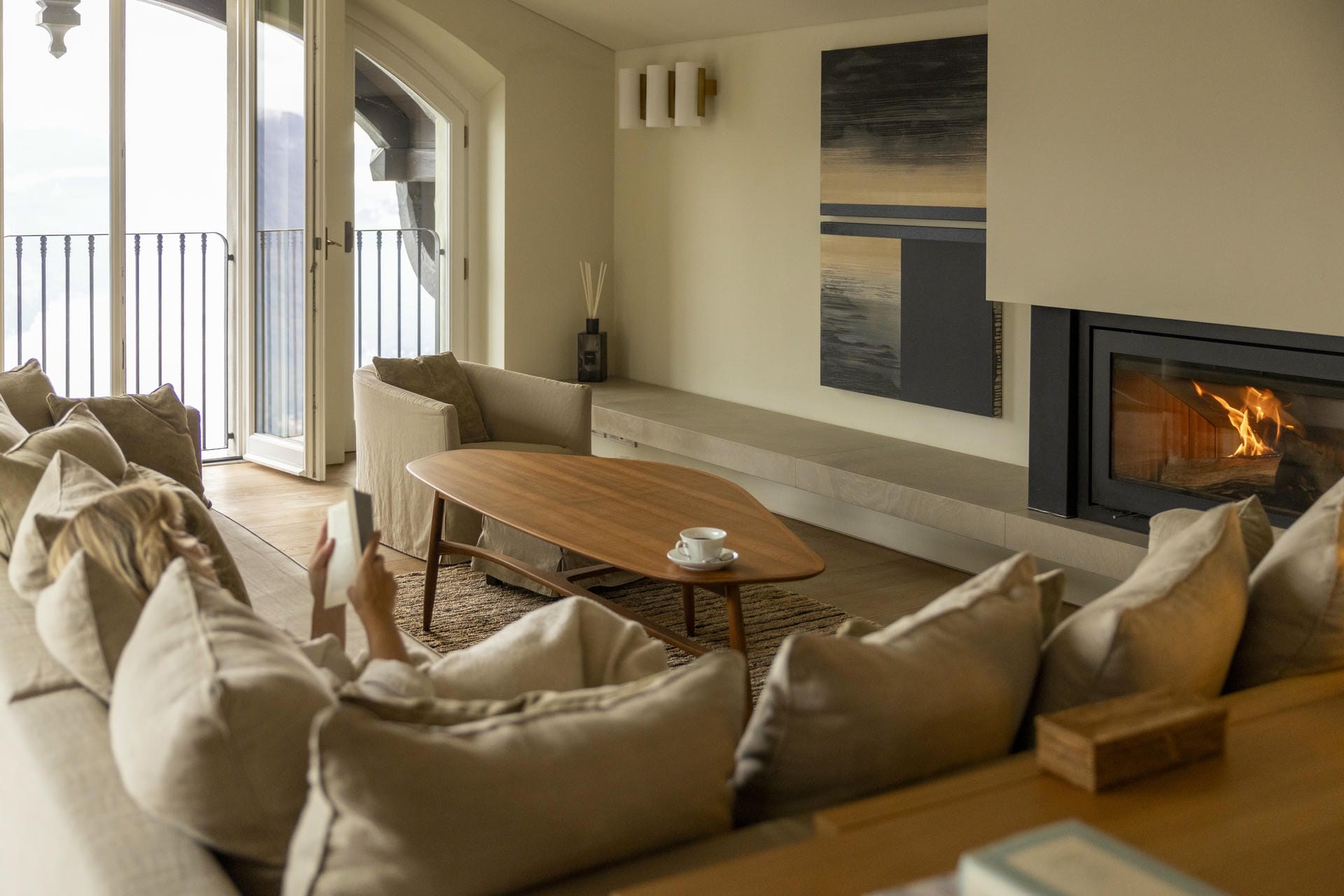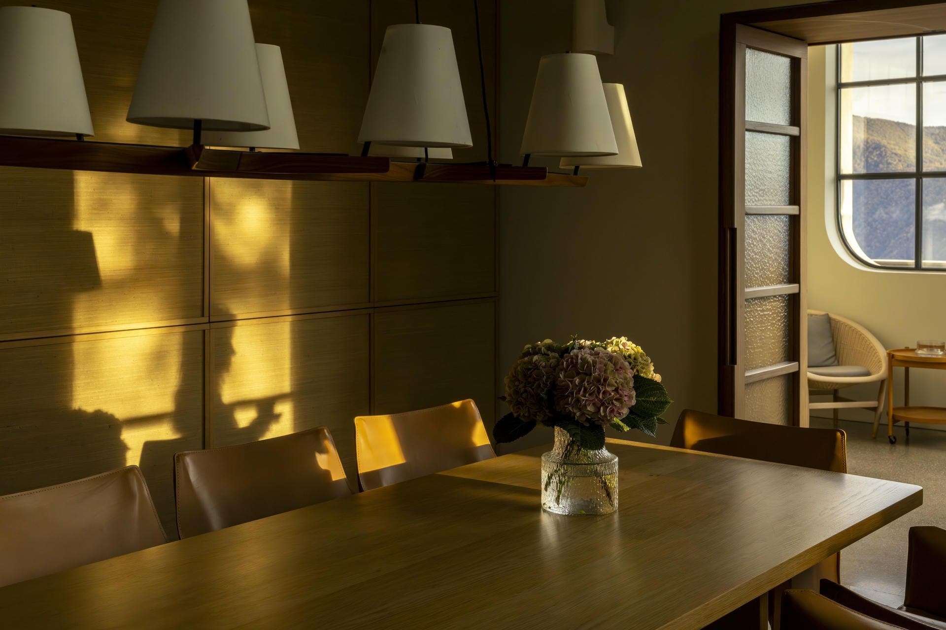 There is a yoga and fitness room carved into the cliff face, directly overlooking the mountain and lake for a workout with awe-inspiring views. The steam room will relieve tired muscles after a gym session, and there is a shower and en-suite WC for added convenience.