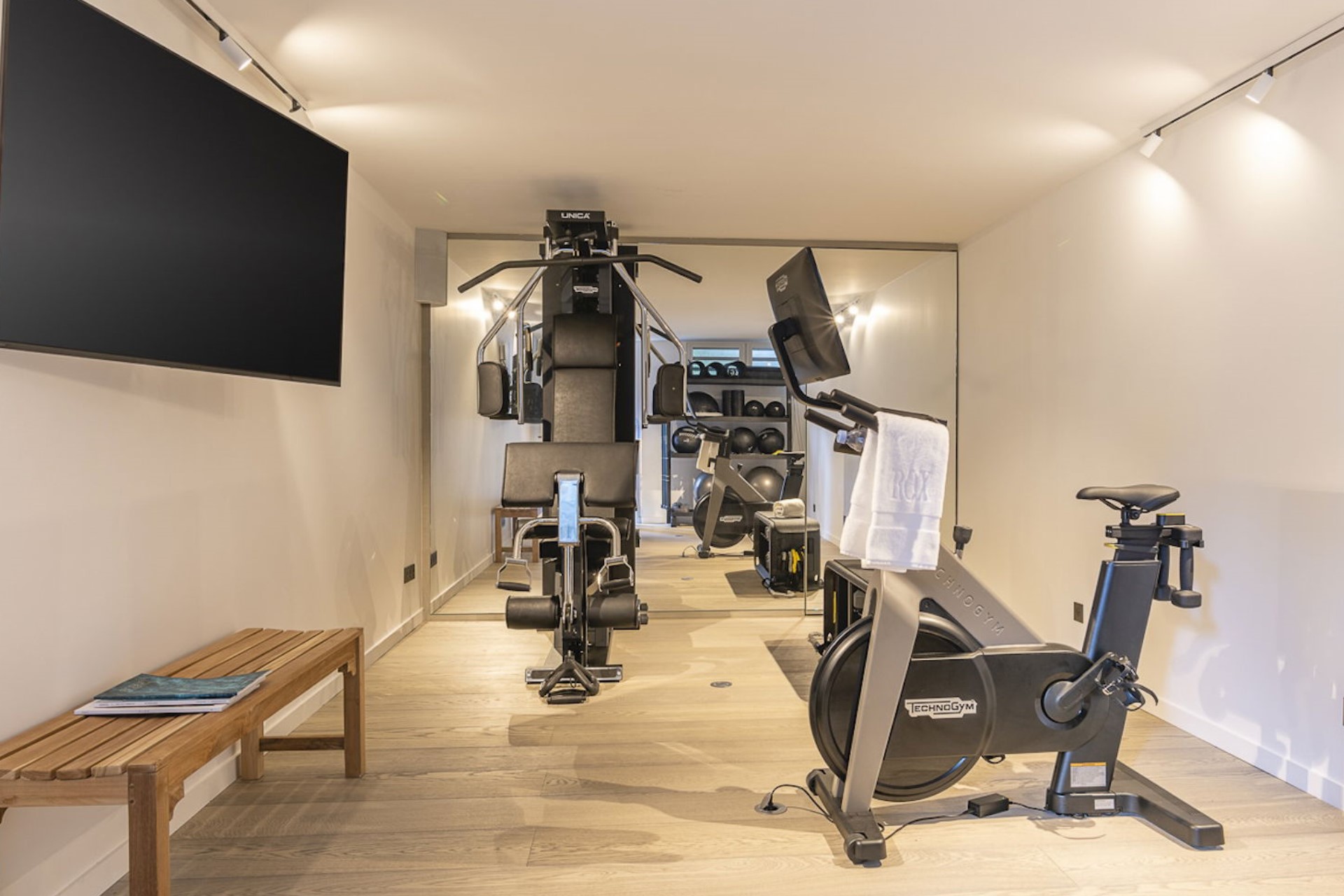 For guests who wish to maintain their fitness routine, a well-equipped fitness room is available, offering modern exercise equipment in a serene setting.