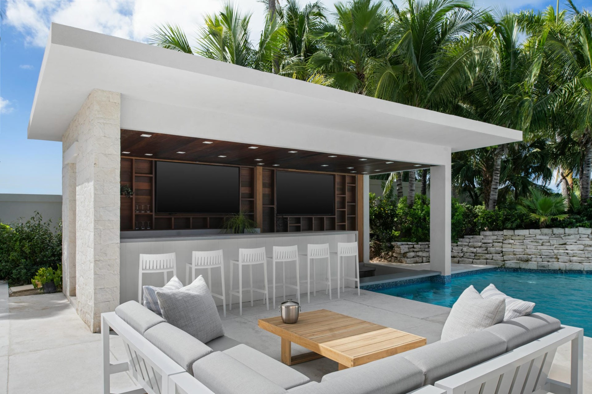 The villa’s outdoor spaces are designed to impress. A heated swimming pool is the centrepiece, complemented by a jacuzzi, a pool bar, and luxurious sun loungers. Guests can enjoy al fresco dining with a barbecue, pizza oven, and outdoor kitchen, while the terraces and roof deck offer sweeping ocean views. Active travellers will appreciate the pickleball court, basketball net, and water features, while the fire pit and day beds provide a serene setting for relaxation. With outdoor sound systems and ample lounge areas, every gathering is elevated.