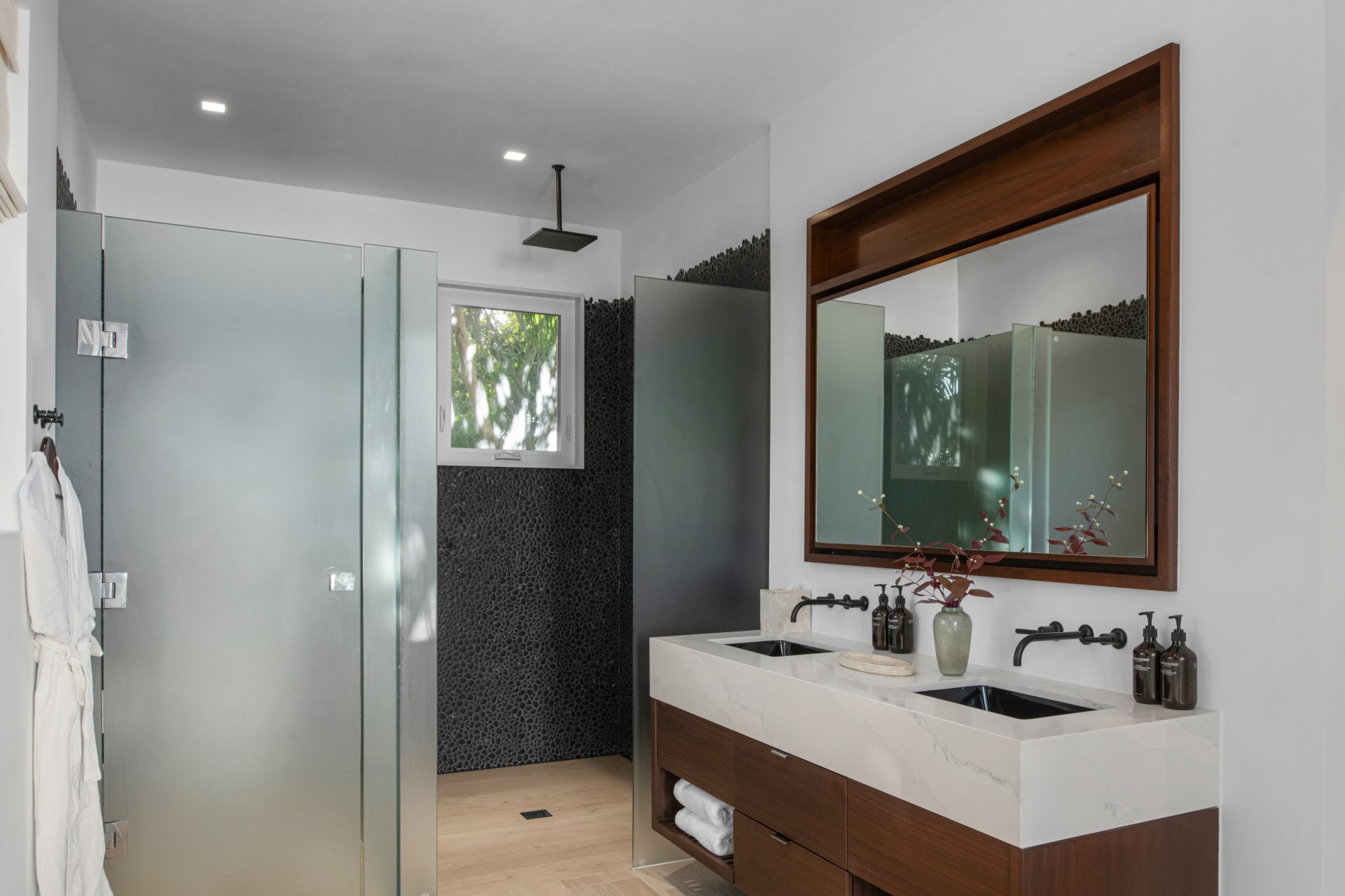 Bedroom 7 – king-size bed, en-suite bathroom with dual vanity and shower, and ocean views