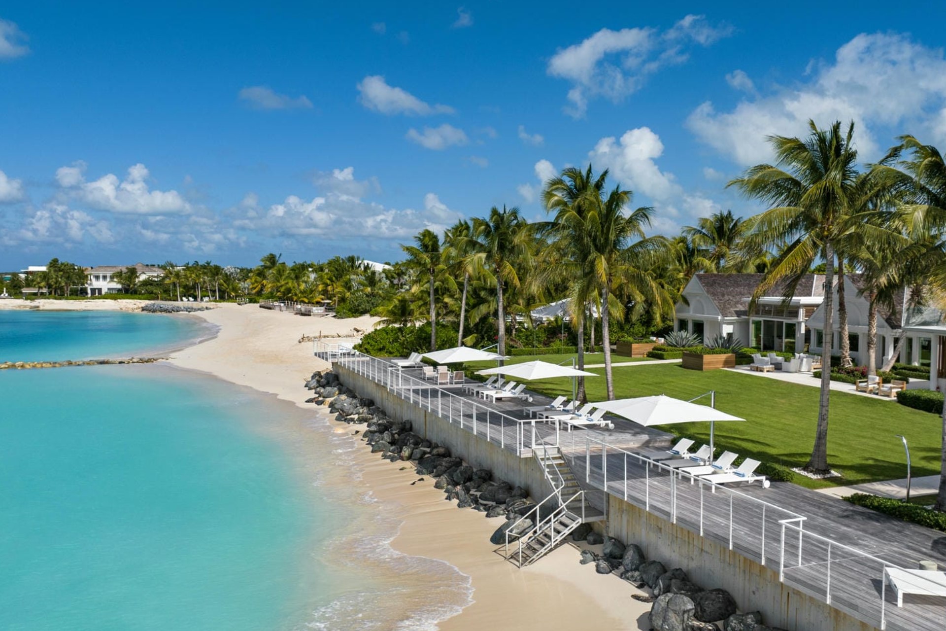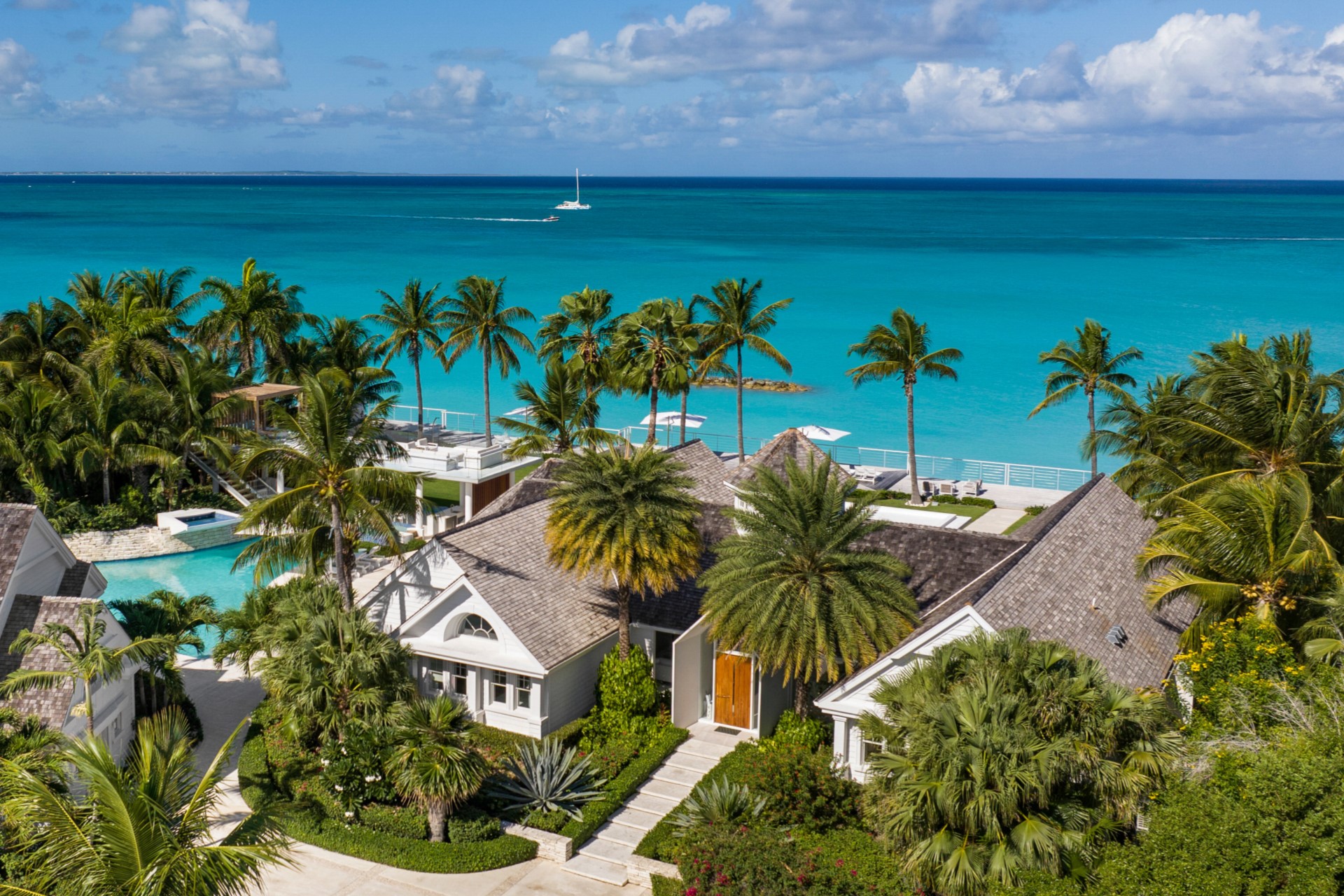 A grand beachfront villa in Turks and Caicos with 9 bedrooms, a private heated pool, and direct beach access.