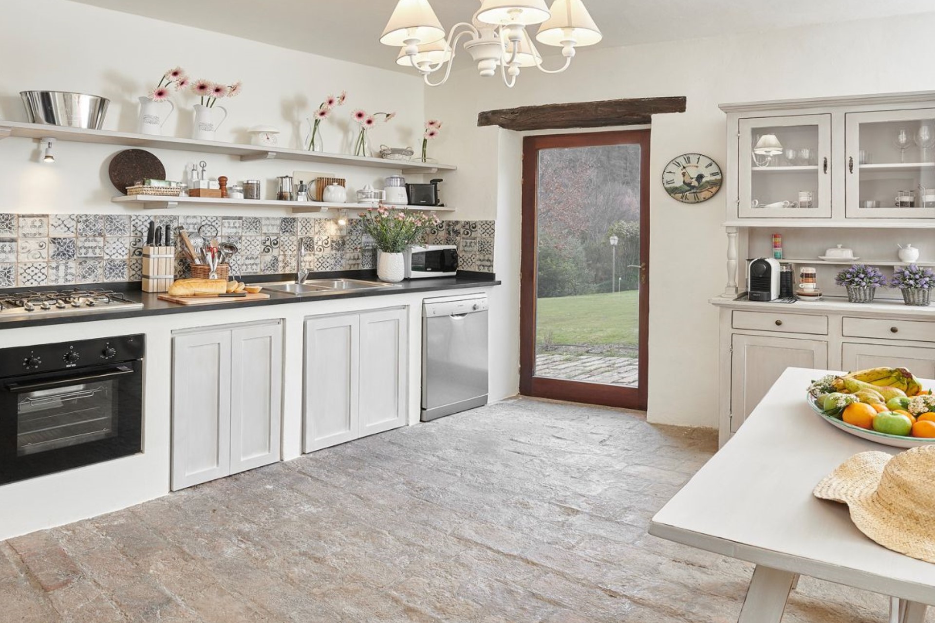 The country-style kitchen is fully-equipped with all the modern amenities needed to cook up a tasty Italian feast.