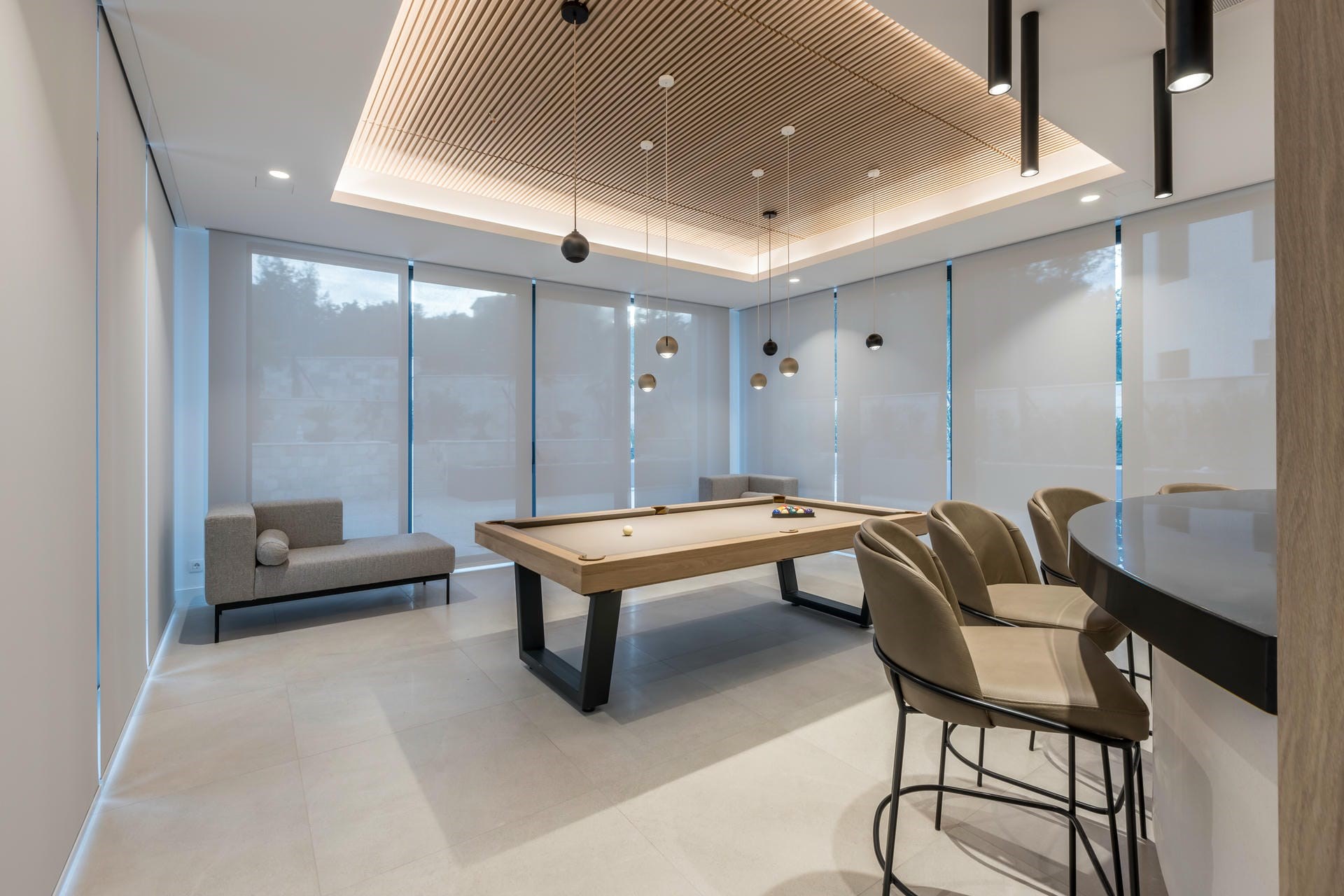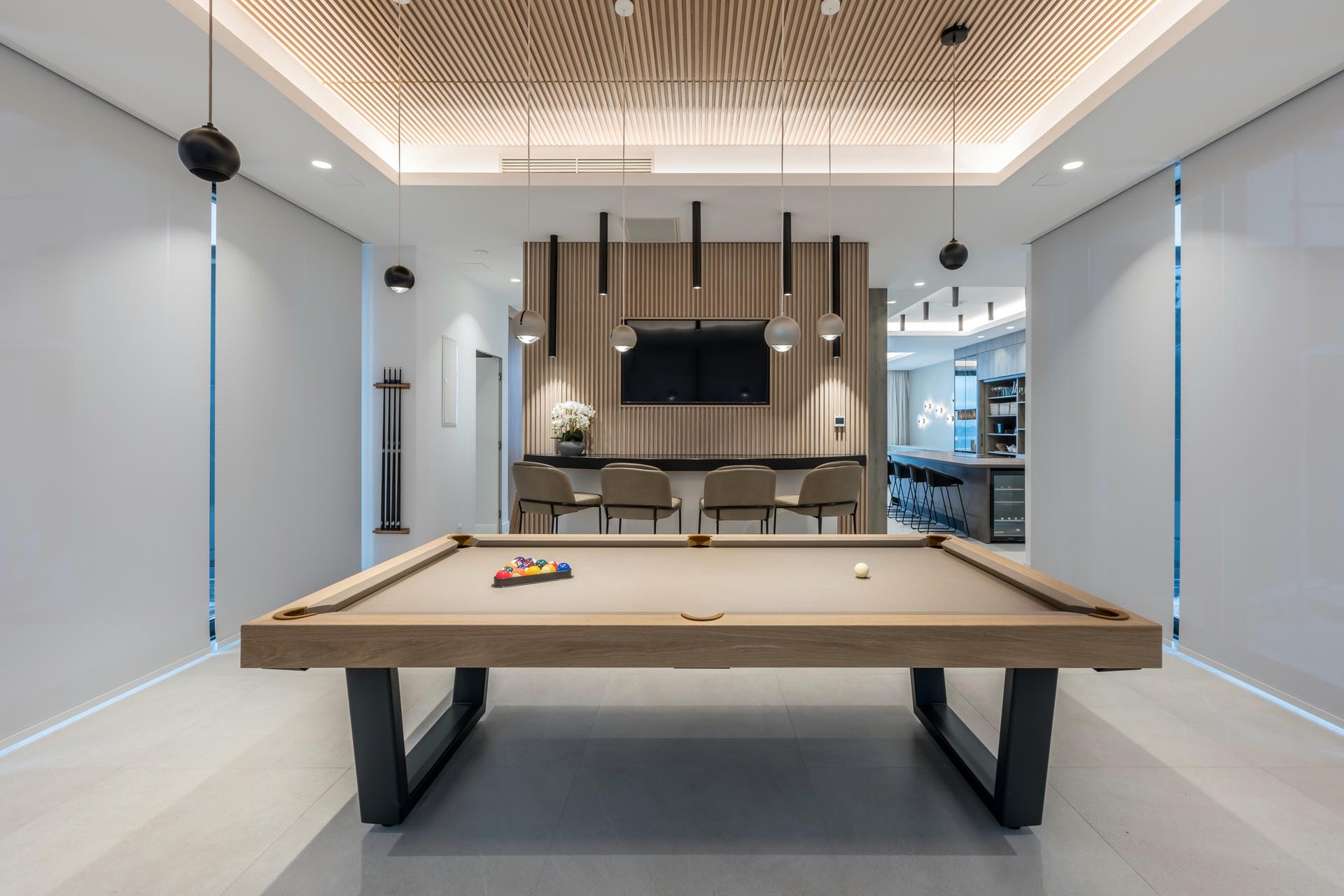 Behind the main living space is a games room with a pool table and bar, perfect for evening entertainment. Moreover, for active guests, the villa also offers a fully equipped gym.