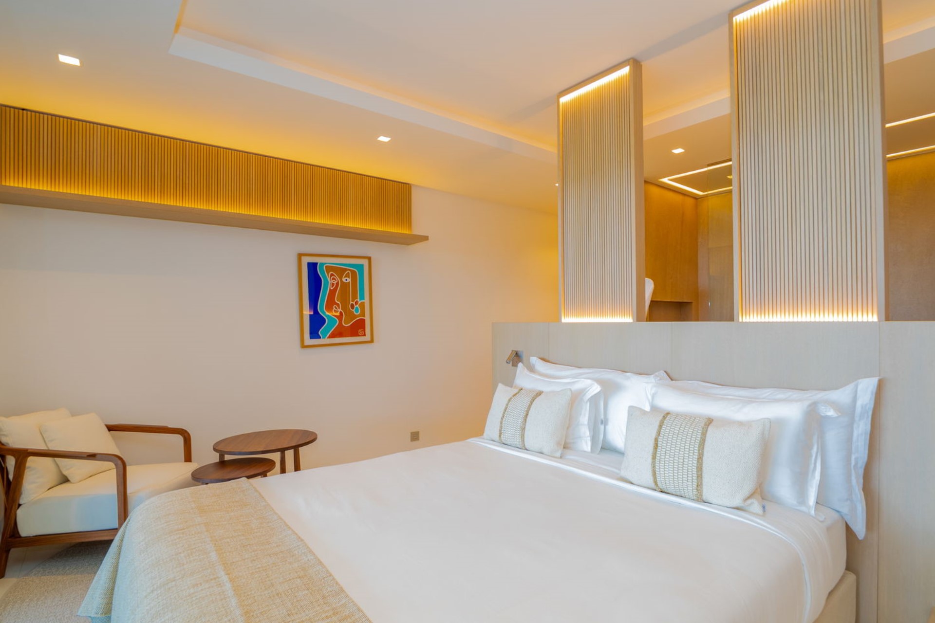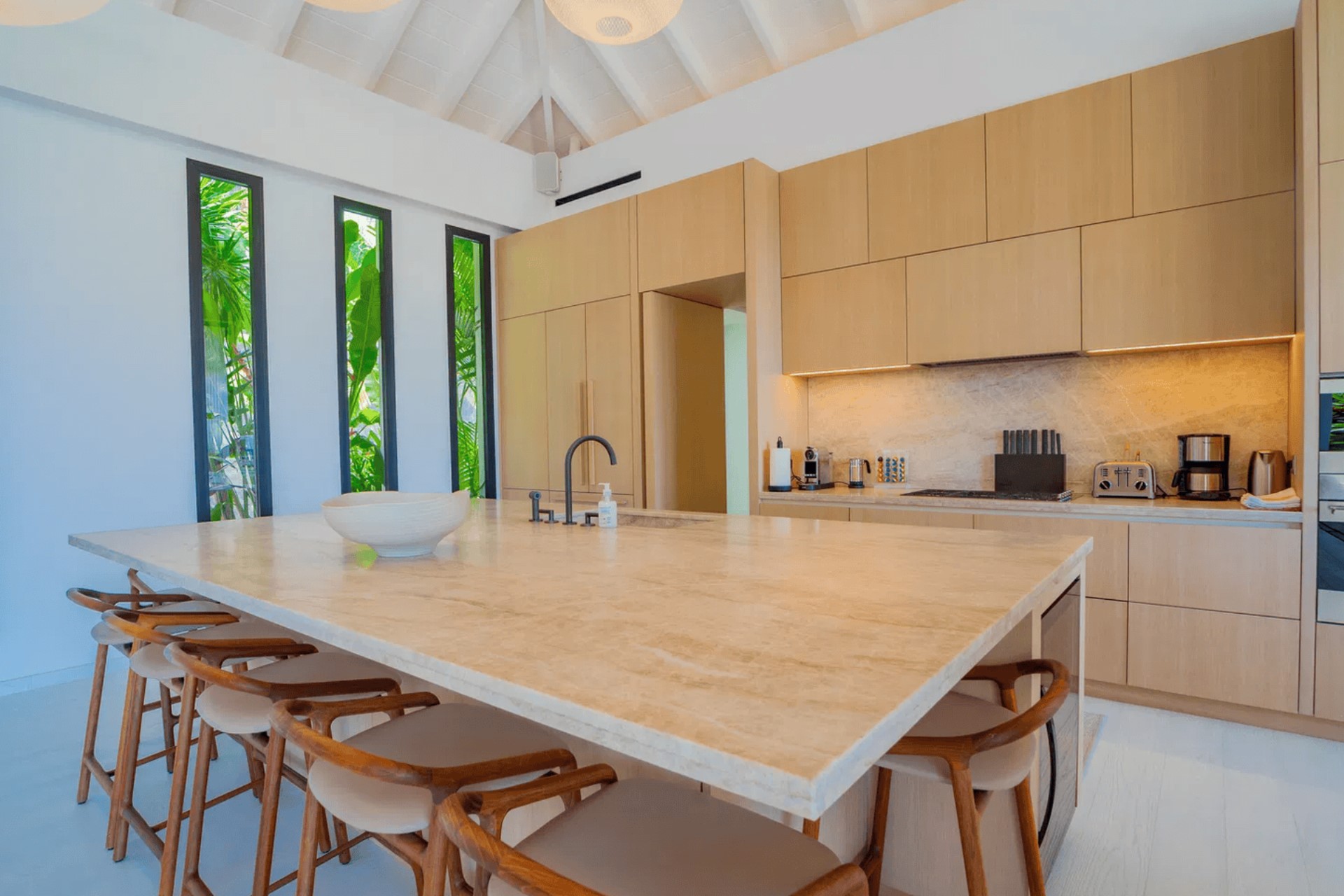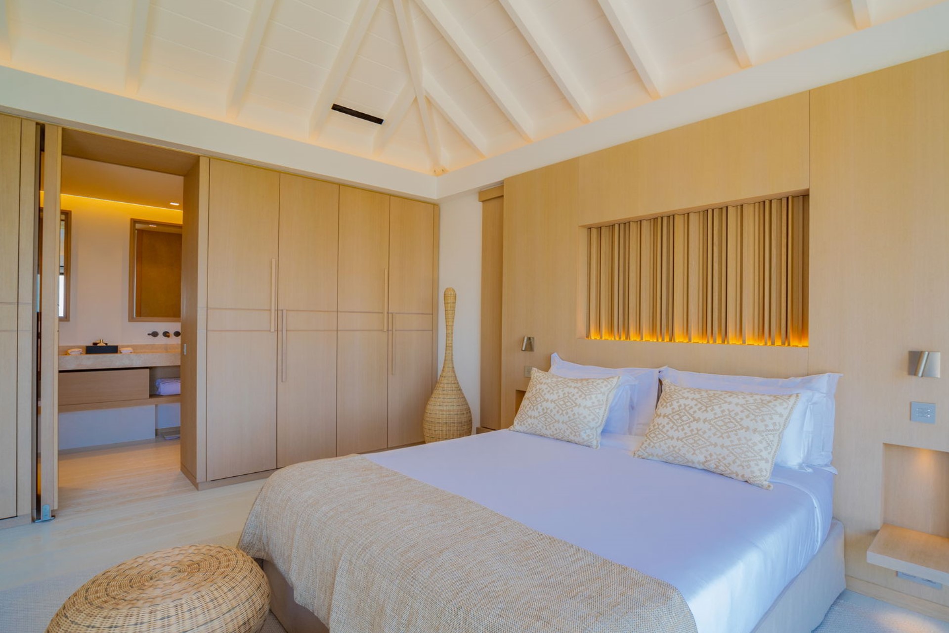 Each of the villa’s five air-conditioned bedrooms is thoughtfully designed to ensure privacy and comfort, featuring king-size beds, en-suite bathrooms, and refined decor. The bedrooms are strategically located to offer either ocean or garden views, creating a harmonious connection with the natural surroundings.